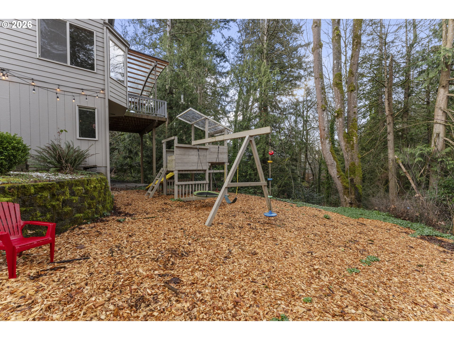 - Tucked away on a quiet cul-de-sac, this warm and welcoming home offers true treehouse vibes. It is surrounded by mature trees and the soothing sounds of chirping birds. Large windows invite in abundant natural light and frame peaceful forest views from nearly every room. You’ll feel tucked away in nature, yet you’re just minutes from amenities, shopping, and dining. A grand entry greets you upon arrival, setting the tone for the warmth and charm found throughout. At the top of the stairs, the private primary suite offers a peaceful retreat featuring a large walk-in closet and an en suite bath, providing comfort and privacy above the main living areas. The kitchen is open and inviting, flowing seamlessly into the family room and dining area. Just off the kitchen, a covered walk-out deck overlooks the trees, an ideal spot for morning coffee or evening relaxation. Designed with flexibility in mind, the home offers 3 bedrooms, with an easy option to create a 4th on the main floor with its own cozy gas fireplace. With three separate living rooms in total, the layout provides versatility for entertaining, working from home, creating a playroom, or simply giving everyone space to spread out and relax. The walk-out basement extends the treehouse feel. It opens onto a serene paver brick patio that feels wonderfully private. This level includes two bedrooms, a full bathroom, and an additional living room. It is an ideal setup for guests, multigenerational living, or a private lower-level retreat. Don't miss the nearly 450 sq ft basement workshop, it is perfect for an art studio, woodshop, or hobby area. It could also be finished to add a second kitchen or separate entrance apartment. Lovingly maintained and full of charm, this home blends natural beauty, light-filled spaces, and a highly functional floor plan. It offers the rare opportunity to live among the trees while staying close to everything you need. Check out the floor plan in the photos. Open house Sat & Sun 11-1pm. [Home Energy Score = 7. HES Report at https://rpt.greenbuildingregistry.com/hes/OR10244106]