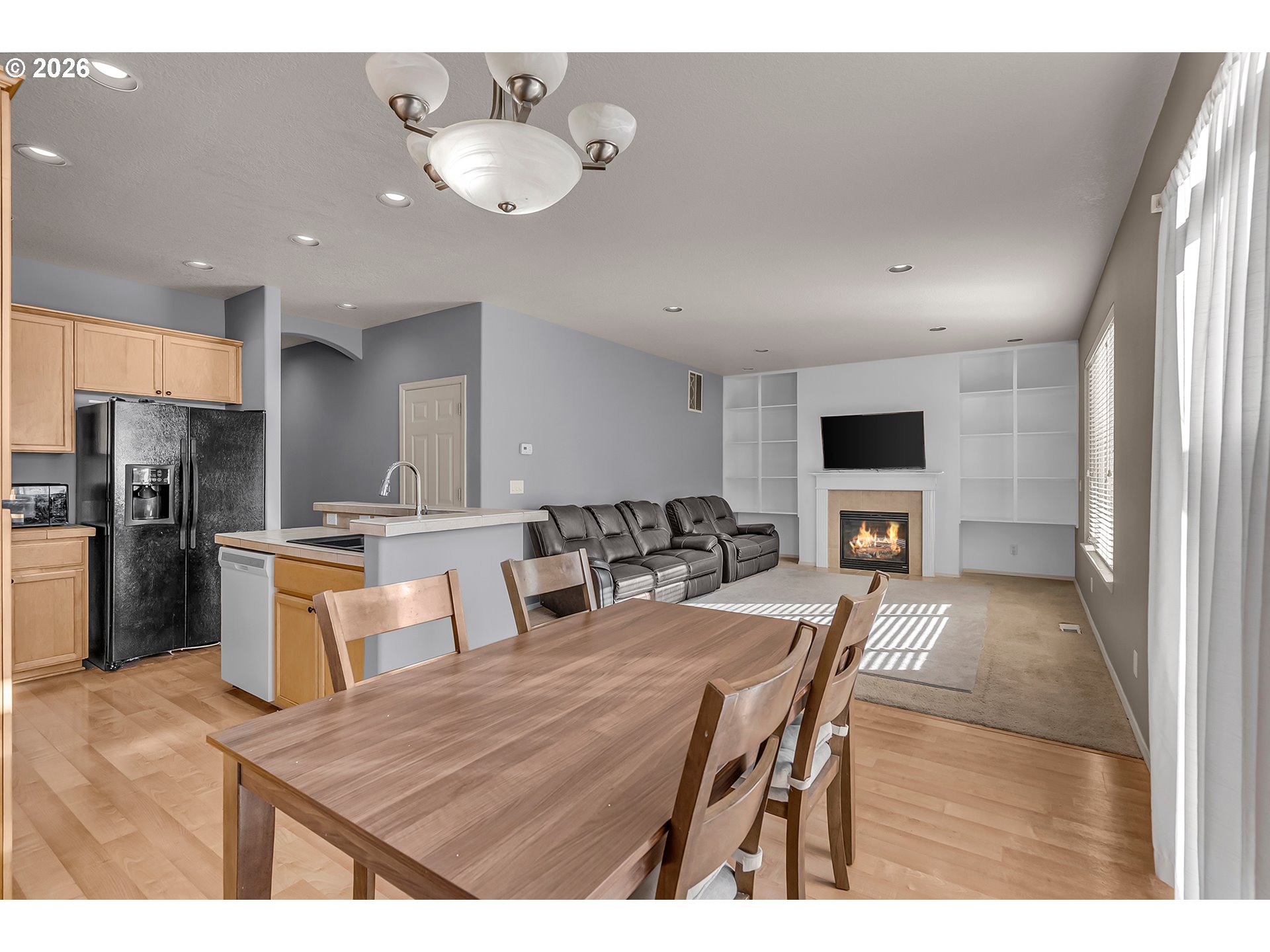 - Welcome to this 4-bedroom, 2.5-bath home with an additional office/den, nestled in desirable Hillsboro. Offering comfort and versatility, this home is ideal for both everyday living and entertaining. The inviting living room features cozy carpet and a fireplace, perfect for relaxing evenings at home. The kitchen is equipped with an island, tile countertops, and a built-in dishwasher, providing generous workspace and an easy flow into the dining area, highlighted by durable laminate flooring. All four bedrooms are located upstairs, each featuring carpet and its own closet. The primary suite includes a private bathroom with dual sinks and a spacious walk-in closet, offering plenty of room for storage and organization. The home also features a washer and dryer room for added practicality. The office/den includes its own closet, making it a flexible space ideal for remote work, guests, or additional storage. Step outside to a fully fenced backyard designed for privacy, complete with a small patio perfect for outdoor gatherings. Residents enjoy HOA amenities including a pool, party room, commons, management services, and recreation facilities. Located in Hillsboro, this home offers close proximity to parks, shopping, dining, and major employers.