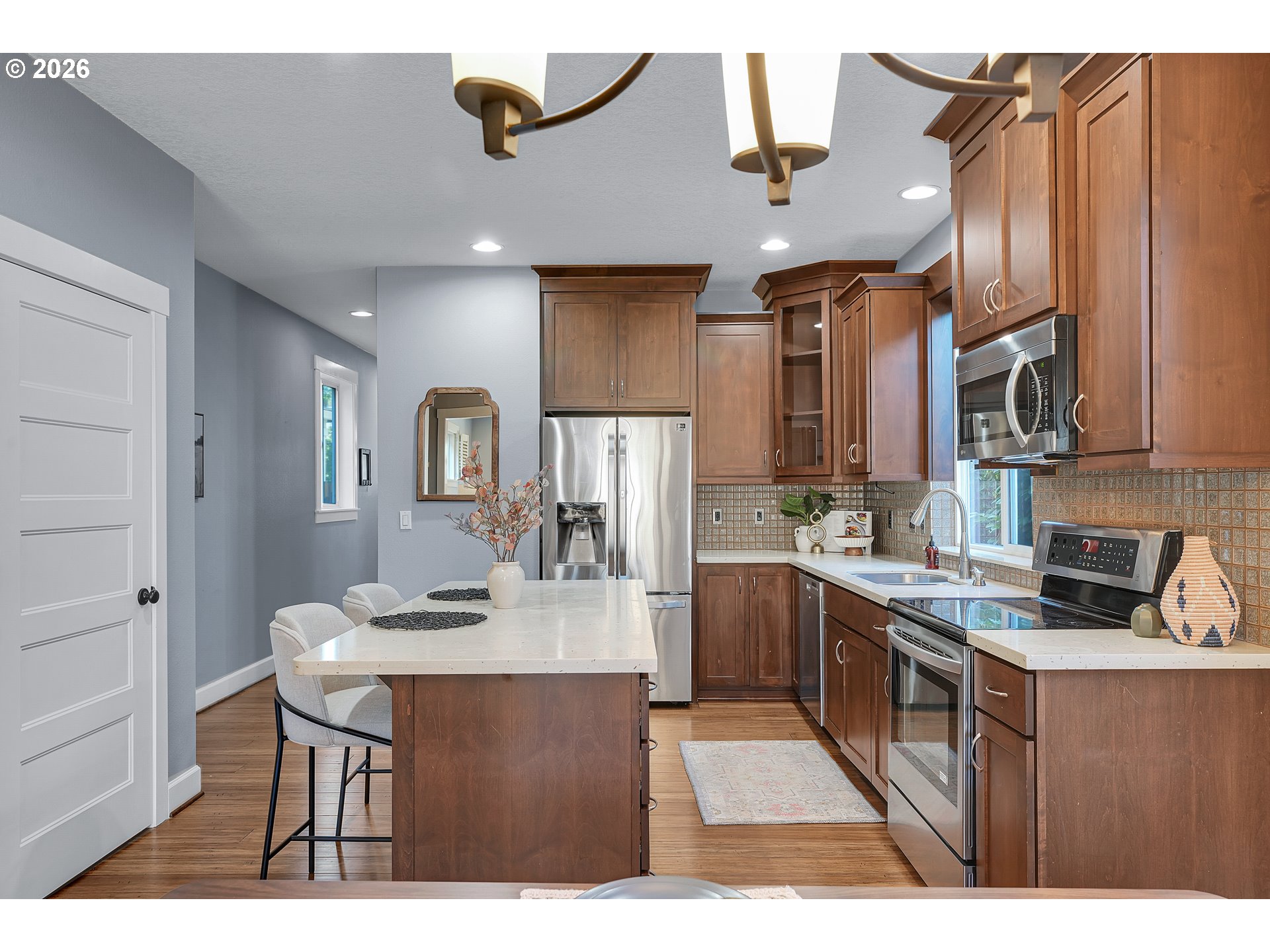 - Beautiful 2016 Craftsman on a quiet, well-kept street in desirable NE Portland offers 1,711 sq ft of light-filled living with 3 bedrooms and 2.5 baths, Air Conditioning, and new carpet throughout. The main level welcomes you with engineered wood floors, a cozy living room with built-in bookshelves, and a chef-ready kitchen featuring a large island with hardstone counters, tile backsplash, built-in microwave, electric freestanding range, and LG stainless steel appliances. Upstairs, you’ll finnd three bedrooms(one en suite) and two full baths, each with a skylight. Plus, two of the bedrooms have views of Mt St Helens. Outside, enjoy a private fenced backyard with patio, new pavers, and low-maintenance yard, plus a single-car garage with a hanging storage rack; practical comforts include a gas furnace, gas water heater, and included washer and dryer. This move-in-ready home blends modern niches with classic Craftsman charm. Close to transit, shopping, restaurants, more...This amazing house is a must see!