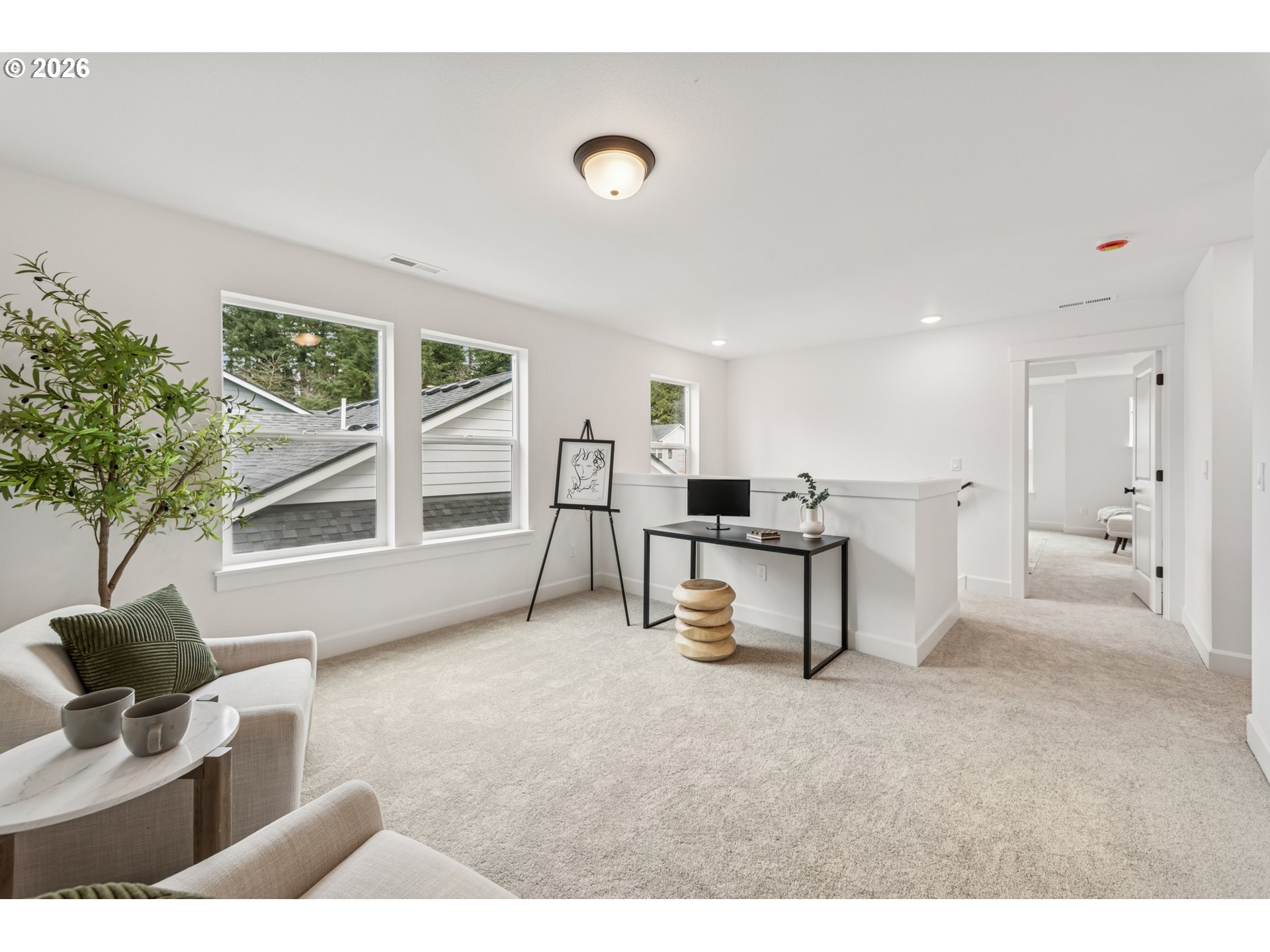 - MOVE IN READY NEW CONSTRUCTION WITH BELOW MARKET RATE INCENTIVE FOR A LIMITED TIME! Visit the charming community of Durham Heights located in close proximity to Bridgeport Village, Fanno Creek Durham City Park, access to 1-5 and more. This brand newly complete home built by award winning builder is "Double Sweet" with one suite on the upper floor and one on the main allowing for each to have their own space. In addition to a walk in shower, walk in closet and double sinks in the main level suite, there is a main level Washer/ dryer and a covered rear deck to relax and soak in the greenery. Light hard surface flooring and contemporary finishes including stone like veined quartz, built in oven, microwave, and 5 burner gas cooktop. Make this splendid Great Room the heart of the home, while still allowing the privacy of a separate recreation space in the upstairs loft. Quiet luxury resides upstairs with a dream Owner's Retreat.