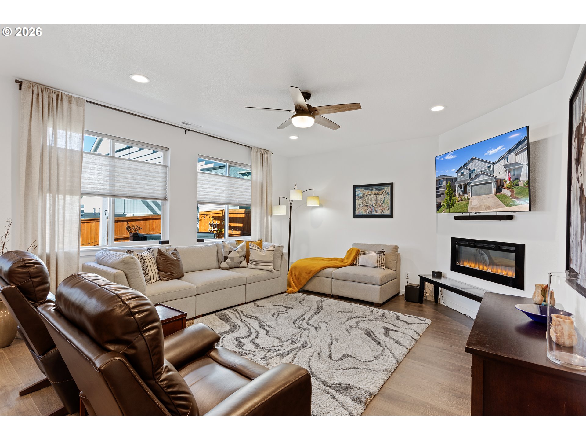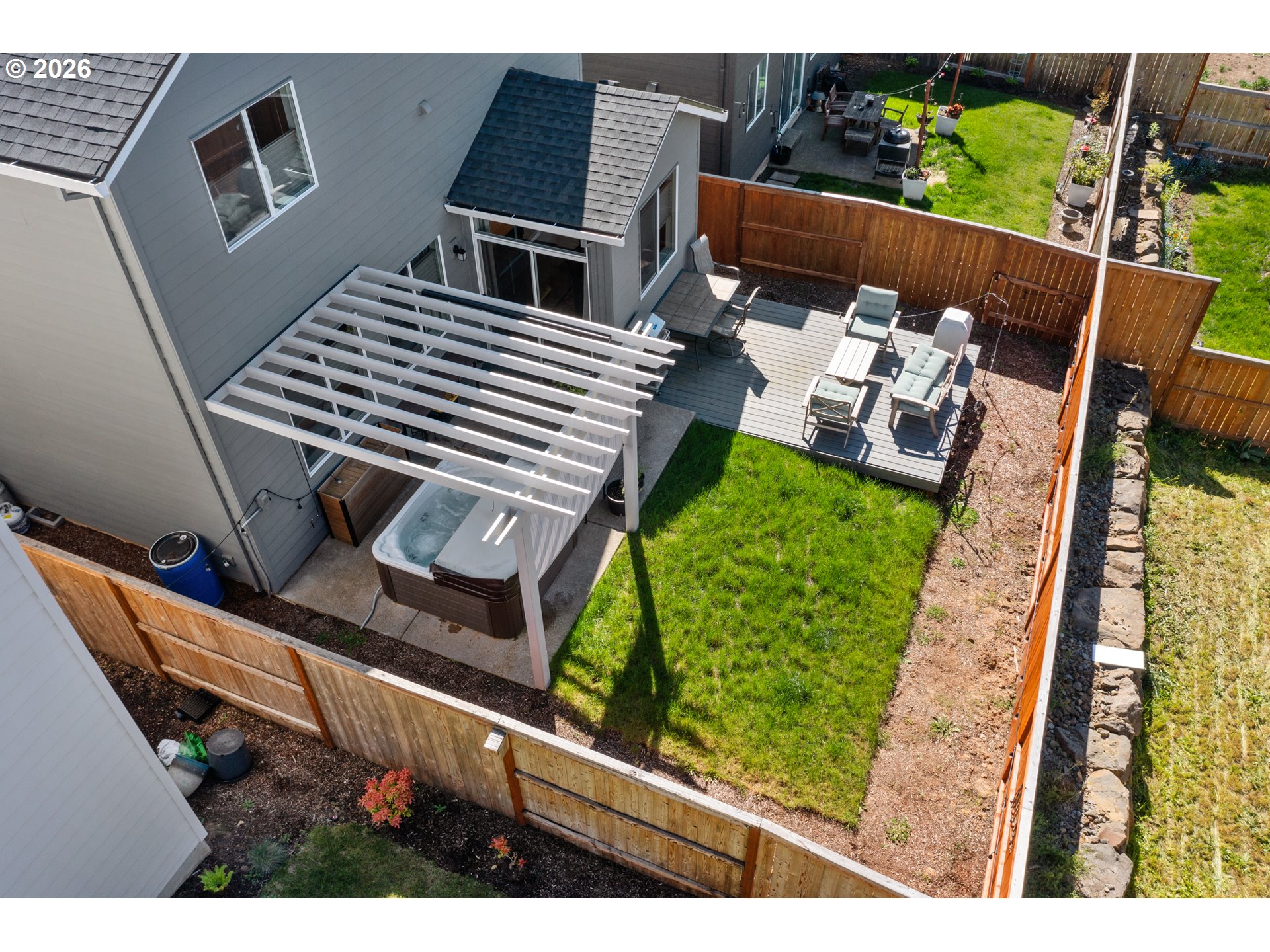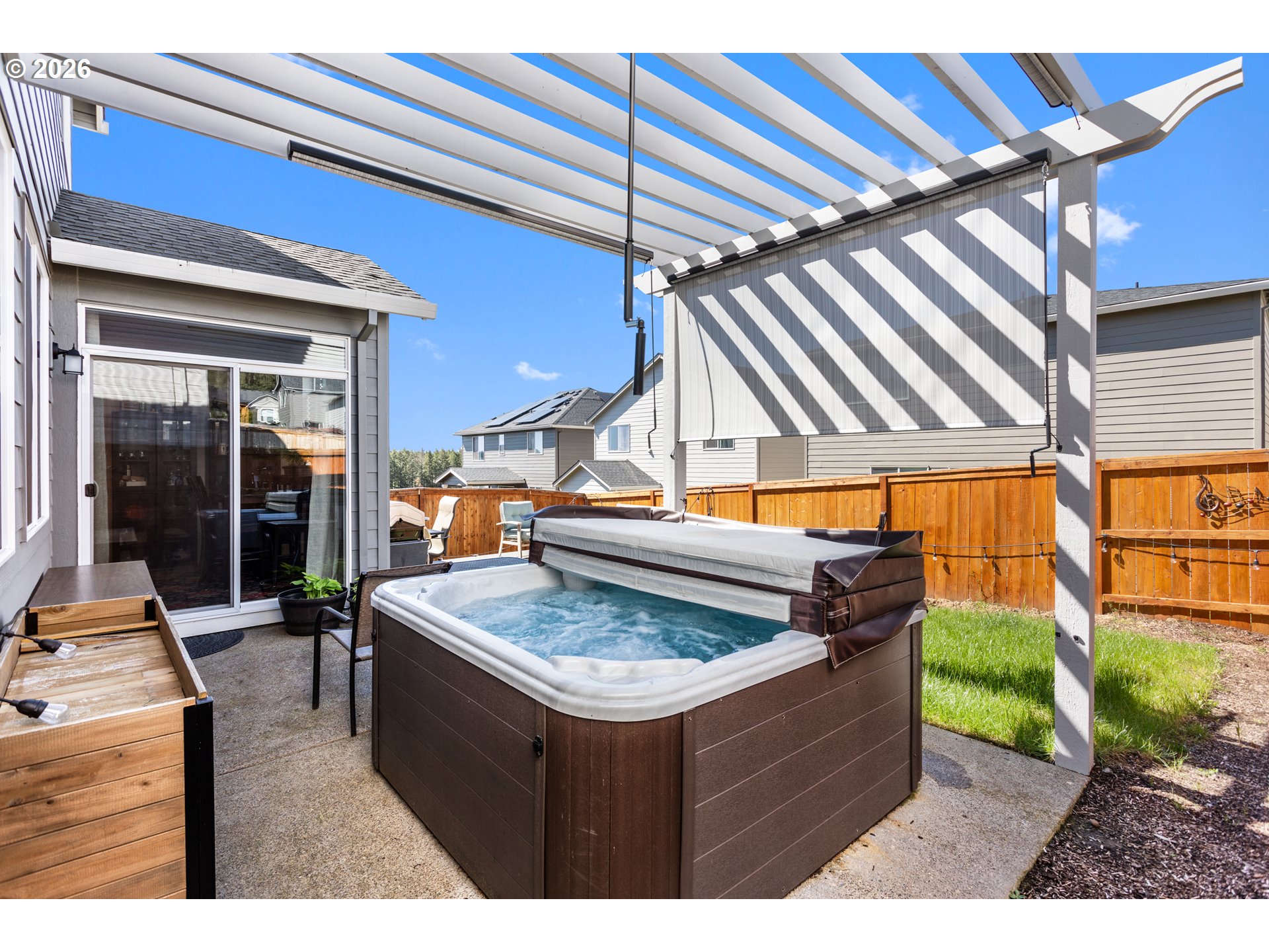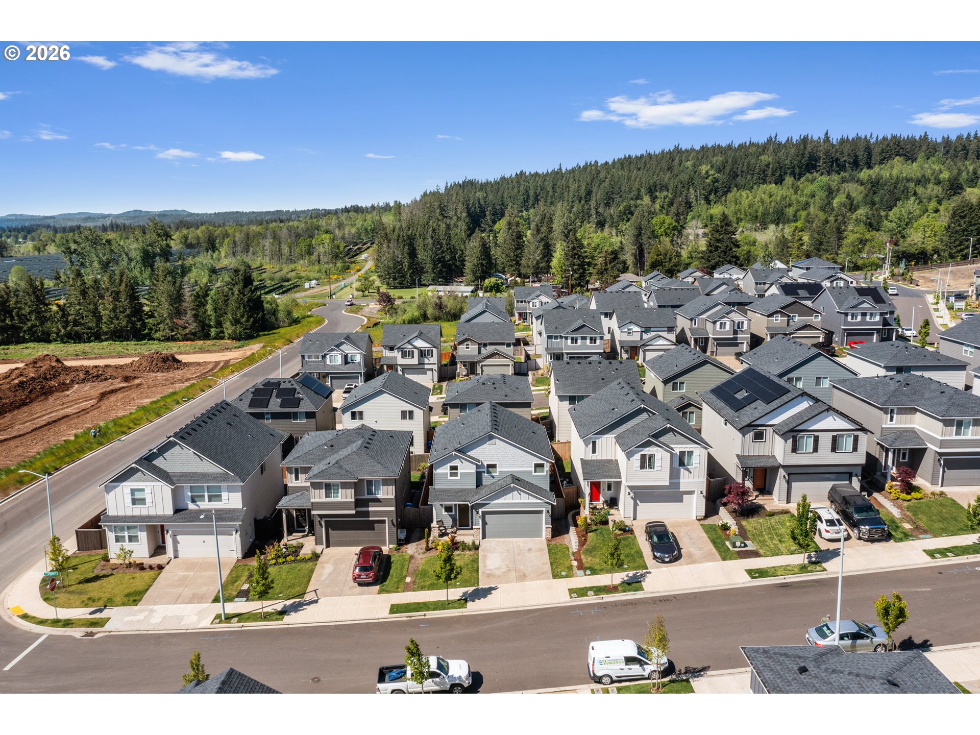 - Estacada isn't just growing — it's where people come when they're ready to stop compromising. The territorial views, the wildlife, the walking trails with sunsets that stop you mid-step — this is the lifestyle that brought you here. And this home delivers all of it, fully finished, fully upgraded, and move-in ready.If you've been touring new construction in Faraday Hills, you already know the 1609 floor plan by Holt Homes. You also know what that purchase actually looks like: no backyard, no blinds, no refrigerator, no washer and dryer — and a price tag that doesn't reflect any of that. This home was an early phase of Faraday Hills, completed in 2022, and everything that new construction leaves for you to figure out has already been done here, and done well.The gourmet kitchen features quartz countertops, under cabinet lighting, a large island, a pantry, and all appliances included. The dining nook opens through a walk-out slider to a backyard built for entertaining — extended patio, composite deck and a custom pergola built by Rick's Custom Fencing, and a 2 years new hot tub that stays with the home. The corner fireplace anchors the main living space. Custom blinds and shades, professionally measured and installed throughout, are included. The exterior includes the Christmas lighting package. Upstairs, the primary suite features a Mudset shower and a walk-in closet. Two additional well-sized bedrooms share a full bathroom with a tub-shower combo — everything a family or guests need without sharing the primary. A dedicated laundry room with its own door — because laundry shouldn't be a common area — rounds out the upper level. A half bath downstairs means guests never need to go upstairs. The garage is prewired for solar.Holt Homes is still building the 1609 throughout Faraday Hills. When you compare those listings to this one, run the full number — what you'd spend to get to this point. This home is already there.