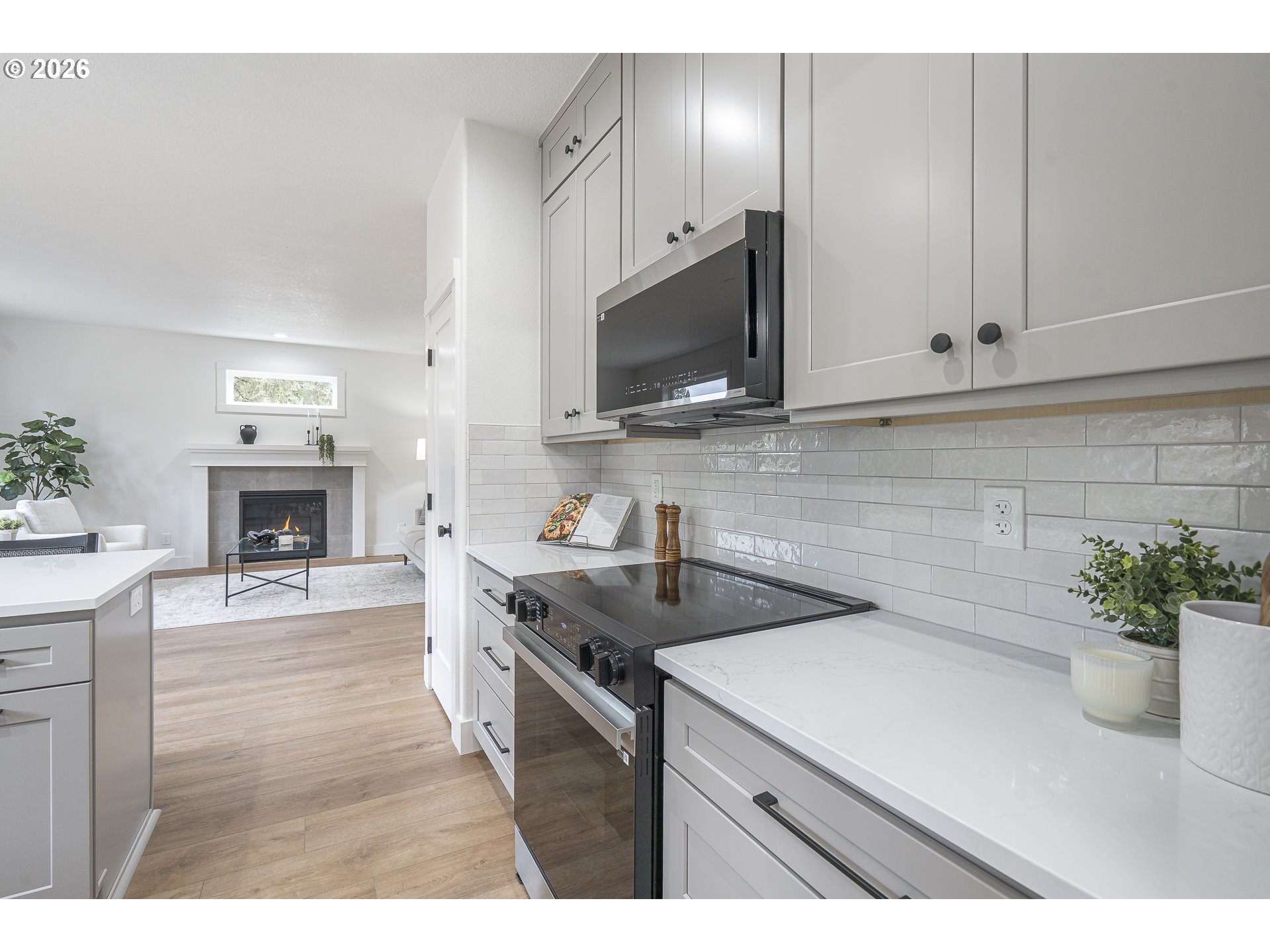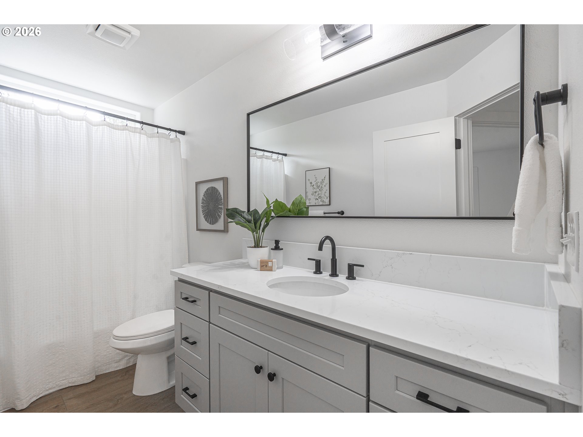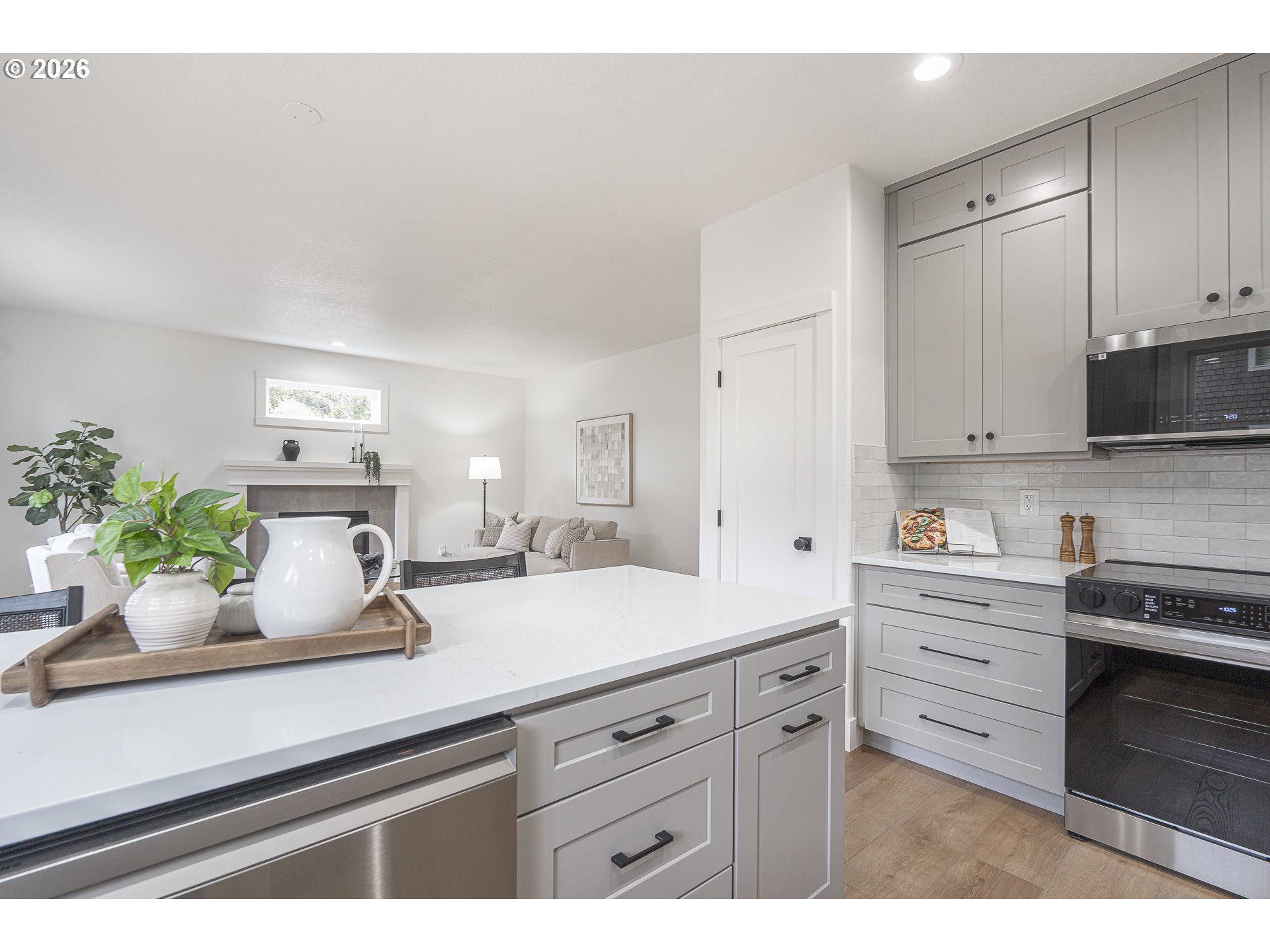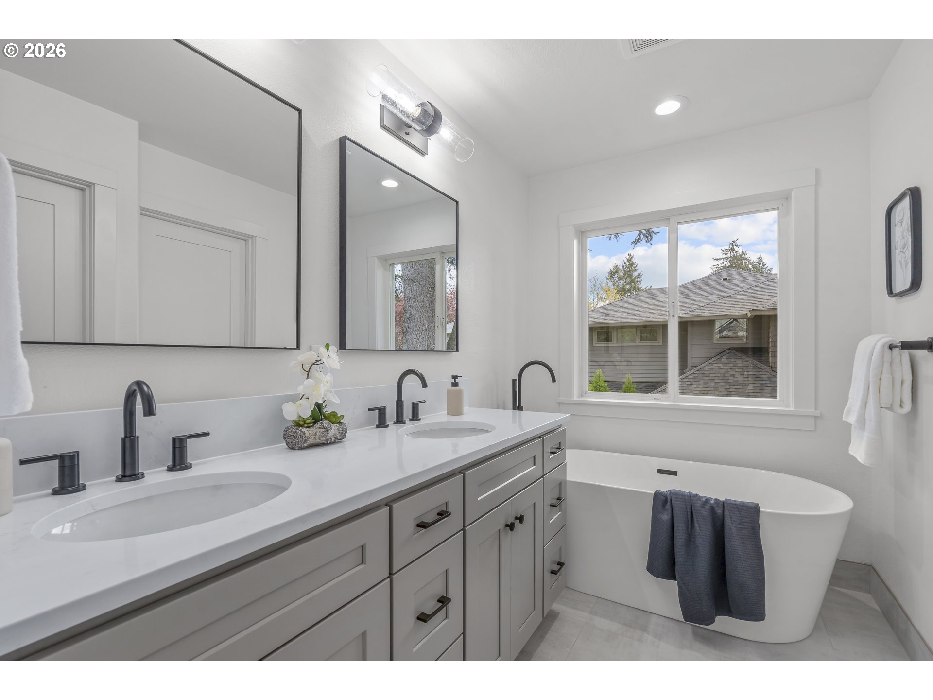 - Discover this fully renovated Lake Oswego gem in the Bryant neighborhood! Step into the grand entry with elevated ceilings and an immaculate, sun-filled interior showcasing fresh paint, luxury vinyl plank flooring, quartz countertops, and high-end finishes throughout the 2025–2026 remodel. The main floor offers a seamless layout with a family room, dining room, and a living room featuring a brand-new gas fireplace and direct access to the backyard through the slider. The kitchen shines with new cabinetry, tilework, stainless steel appliances, and quartz surfaces. A laundry room and half bath complete the main level. Upstairs, the spacious primary suite impresses with a double-sink vanity, soaking tub, walk-in shower, and a generous walk-in closet. You’ll also find two additional bedrooms, a den/office with a closet that could serve as a fourth bedroom, a full bathroom, and a massive bonus room perfect for entertainment or flexible living. The extensive renovation continues outside with a new roof, exterior paint, refreshed landscaping, a fenced backyard, and a brand-new deck ideal for outdoor enjoyment. Notable New Features: Interior & exterior paint, roof, central air conditioner, millwork, tilework, stainless steel appliances, cabinetry, luxury vinyl plank & carpet, quartz counters, mirrors, toilets, soaking tub, walk-in shower, sinks, gas fireplace and light fixtures. All of this is conveniently located near Bridgeport Village, shops, parks, restaurants, major highways, and highly rated schools. Don’t miss this like-new treasure!