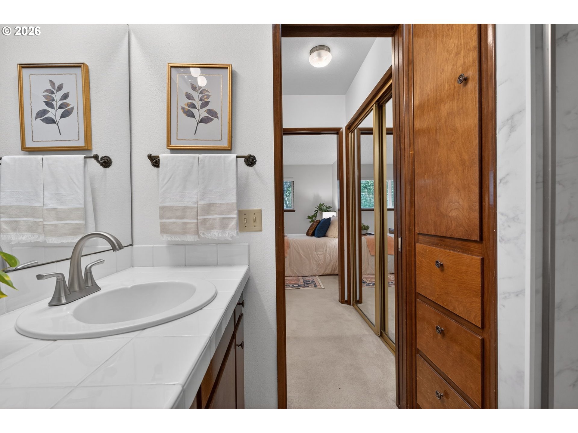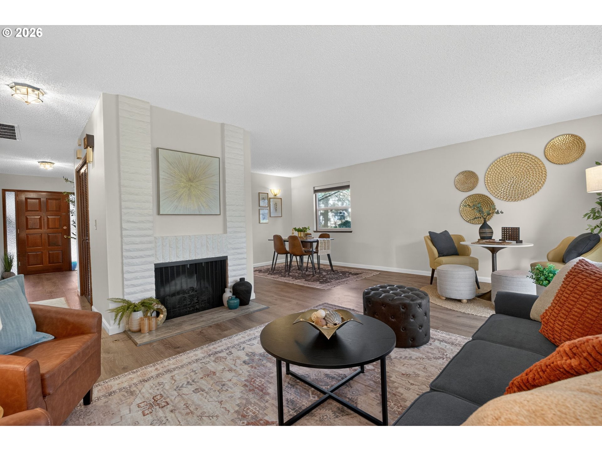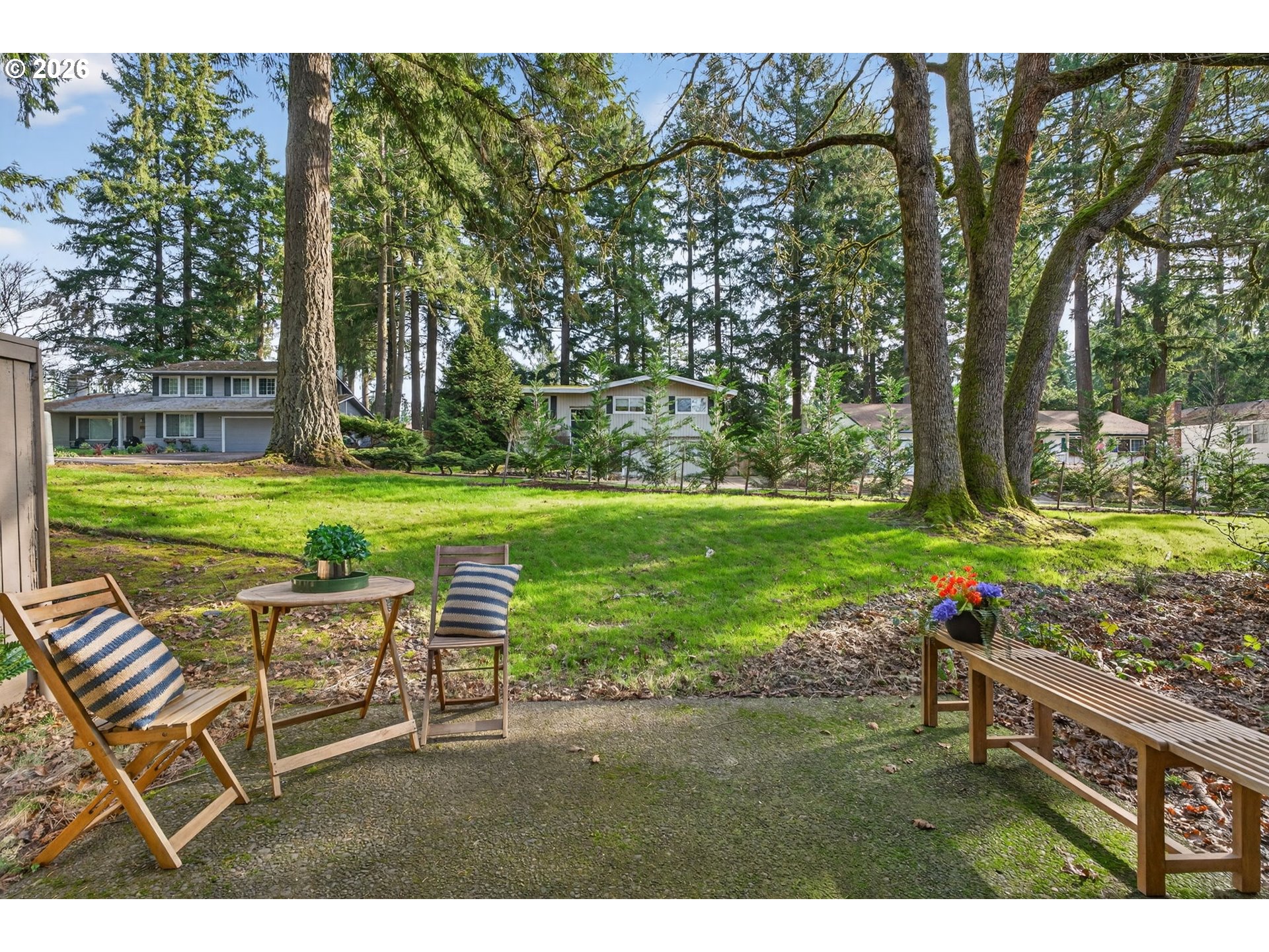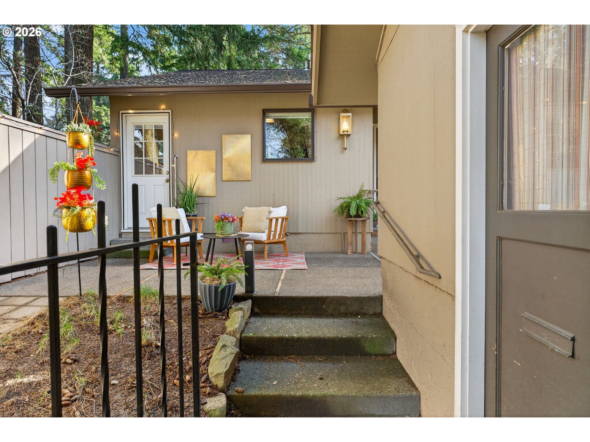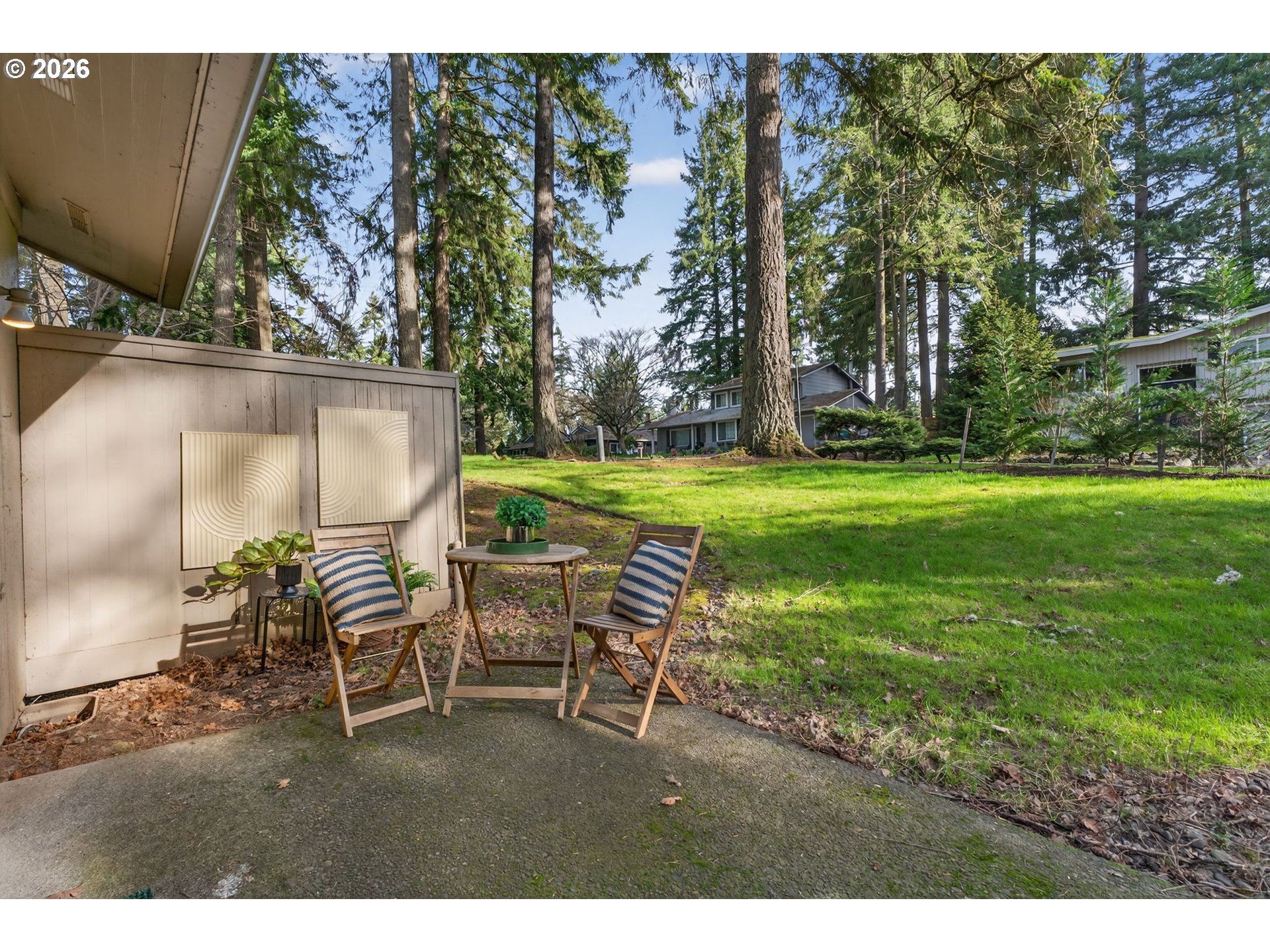 - Open Sunday 2/22, 11a-2p! Enjoy low-maintenance, one-level living in Beaverton’s coveted Hyland Hills Townhome Estates. This delightful end unit is tucked among park-like grounds, instantly taking you from daily bustle to peaceful retreat. Enter through a private, gated courtyard that sets a welcoming tone before arriving at the carved wooden front door with original textured-glass sidelights- one of many vintage details that give this home its character. The entry introduces a smart, spacious floor plan that balances openness with definition, allowing each space to naturally connect while remaining distinct. The well-equipped kitchen offers ample storage, a pantry, a laundry closet, and space for an eating nook. The dedicated dining room includes a wet bar that's perfect for entertaining, a nightly unwind, or setting up a dedicated coffee station. Flowing from there, the living room is anchored by a cozy gas fireplace and a wall of windows with a double-sliding door to the back patio and green space. Down the hall, two generous bedrooms are thoughtfully separated for privacy. The primary suite features a dual walk-thru closet area and an ensuite with a newer walk-in shower, while a full hall bathroom serves guests and the large secondary bedroom that's perfect for guest space or a home office. Across the courtyard, the oversized two-car garage adds exceptional versatility with a built-in workstation and abundant storage. Hyland Hills residents enjoy a community pool, athletic court, and private clubhouse, along with tree-lined walking paths throughout the neighborhood. Conveniently located minutes from Murrayhill, Nike, trails, parks, shops, restaurants, major commuter routes, and the nearby Hyland Woods Forest Park for outdoor escapes.