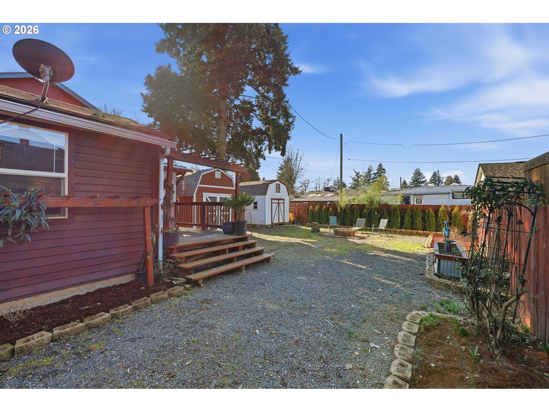 - Covered Deck, Fenced, Fire Pit, Garden, RV Parking, Yard