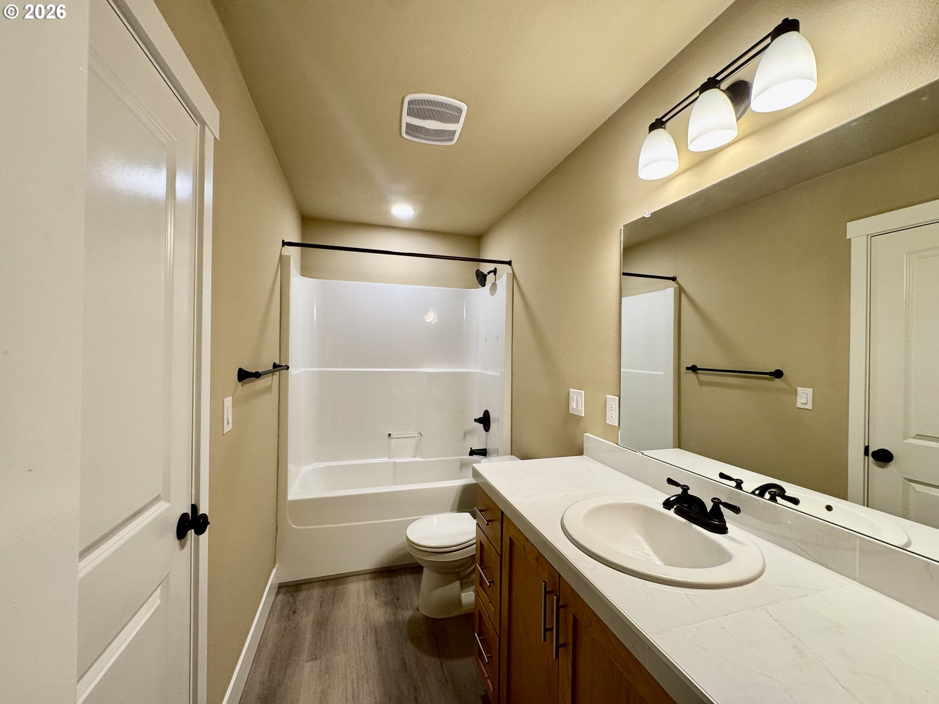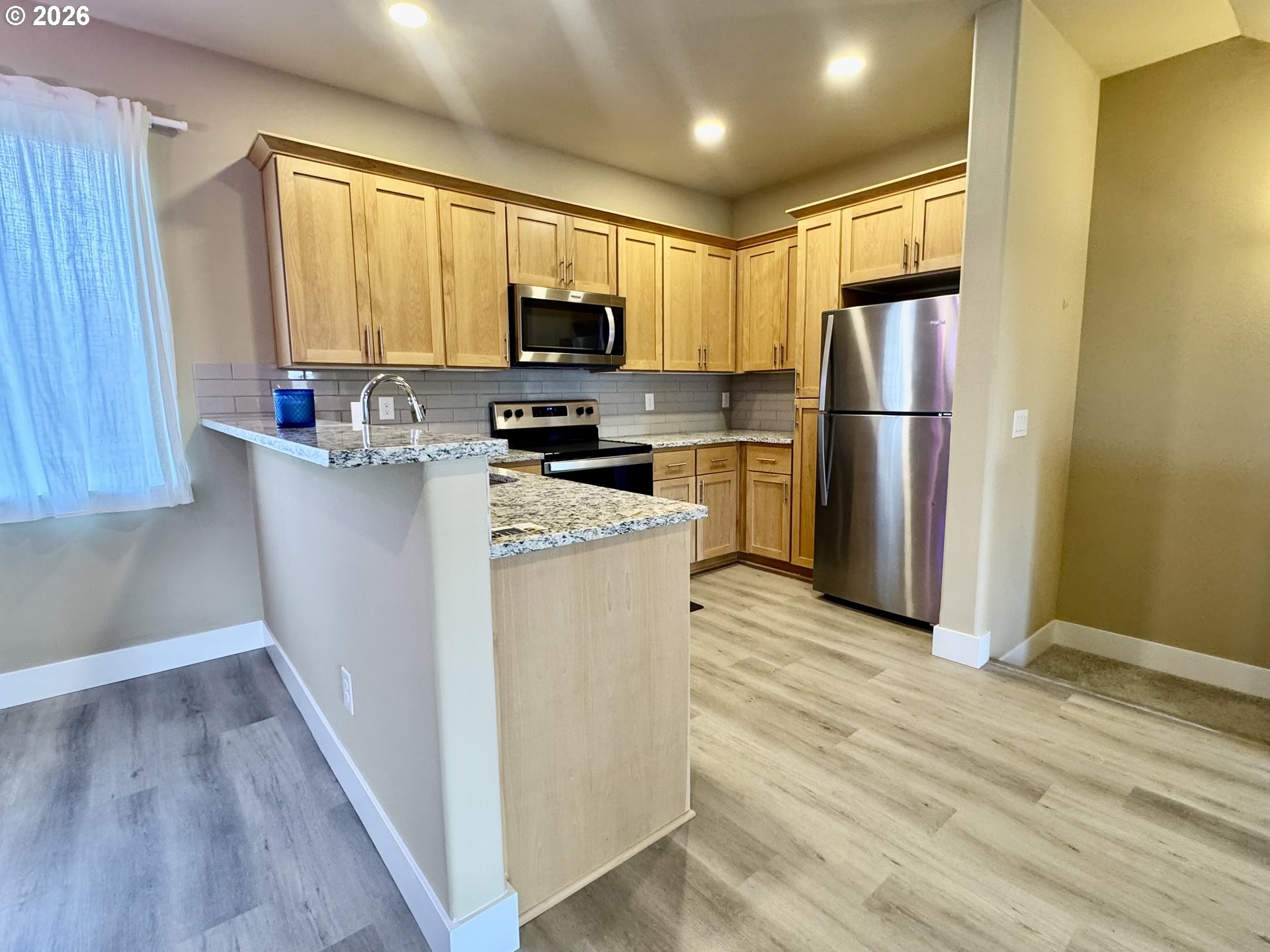 - Open house Sunday from 1-3pm.Experience contemporary comfort in this beautifully designed townhome. The open-concept great room flows seamlessly to a private deck — perfect for relaxing or entertaining. The kitchen showcases sleek quartz countertops, custom cabinetry, stainless steel appliances, and durable water-resistant laminate flooring throughout. Stay comfortable in every season with an energy-efficient heat pump. The spacious primary suite offers a walk-in closet, while the bathrooms are finished with stylish tiled countertops.The entry-level flex space with a full bath is ideal for a home office, guest suite, or potential short-term rental. Includes covered parking plus an interior garage/storage space with a standard garage door, large enough for a compact vehicle. Built by a respected award-winning builder. HOA dues cover water and sewer.