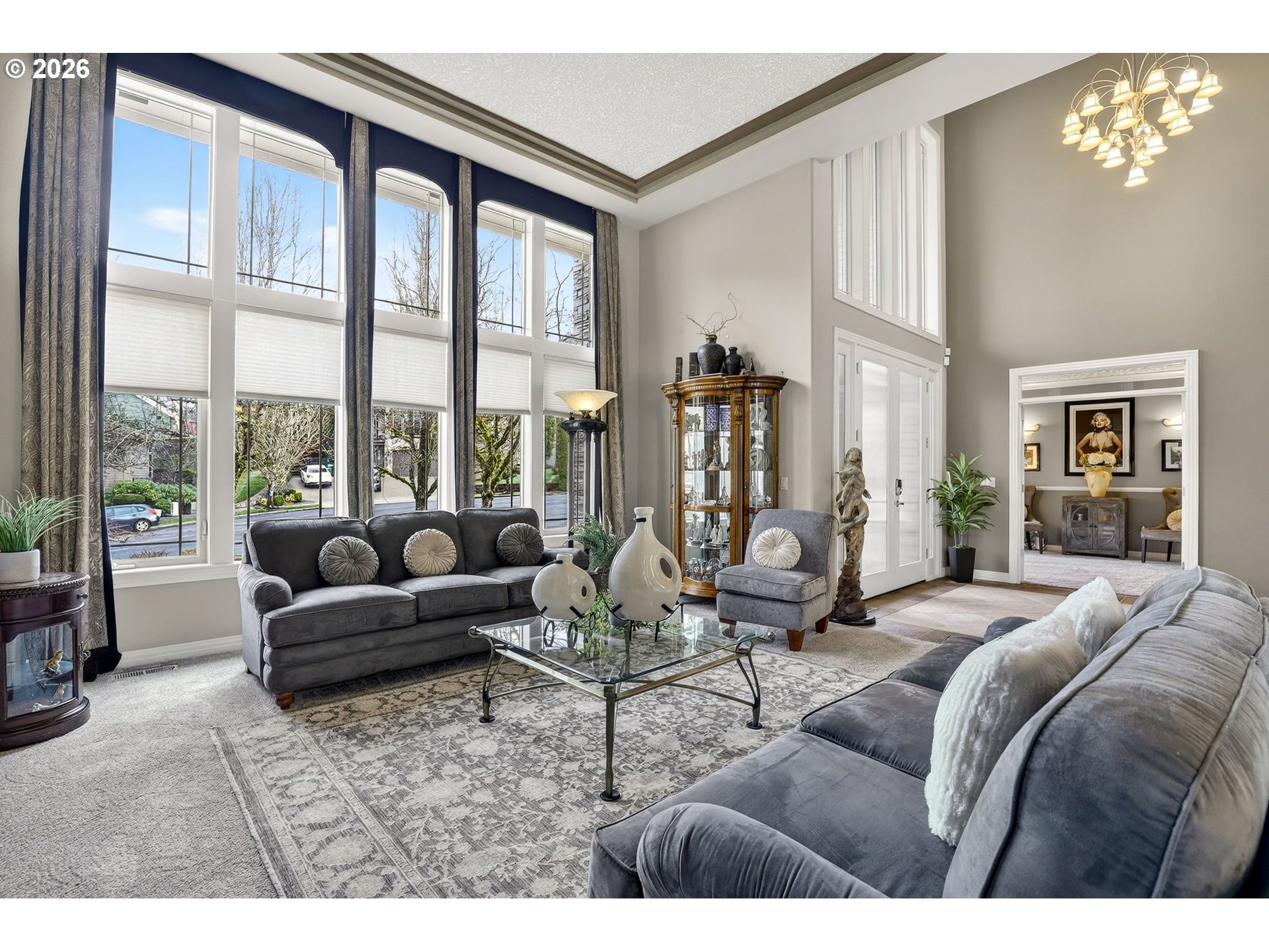 - Gorgeous luxury custom-built contemporary home in sought-after Happy Valley, backing to a wooded green space for exceptional privacy and serenity. Enter the impressive foyer and be immediately awed by the soaring coffered ceilings in the formal living room, highlighted by a gas fireplace, elegant columns, and an adjoining formal dining room. A butler’s pantry leads to the stunning kitchen featuring high-end stainless steel appliances, an oversized island, and a spacious walk-in pantry. The adjacent great room is ideal for gatherings, showcasing custom built-ins and coffered ceilings that enhance the home’s stately feel. A large main-level room with a closet and access to a full bath offers flexibility as a potential main-level primary or guest suite. The utility room provides abundant storage, washer and dryer, and a convenient hideaway ironing board. Enjoy outdoor living on the expansive custom built trex back deck, perfect for entertaining and BBQs, with peaceful views of the trees and green space beyond. Upstairs, the luxurious primary suite offers a gas fireplace for ambience, dual sinks, a water closet, jetted tub, large walk-in shower, and an impressive walk-in closet. Two additional oversized bedrooms share a well-appointed hall bath with dual sinks and a private shower/water closet. A spacious bonus room and an office/den with closet space provide excellent versatility for work, play, or additional bedrooms. An exceptional home combining luxury, function, and a tranquil setting. This home has two AC/Furnace units and ample storage under the main level!