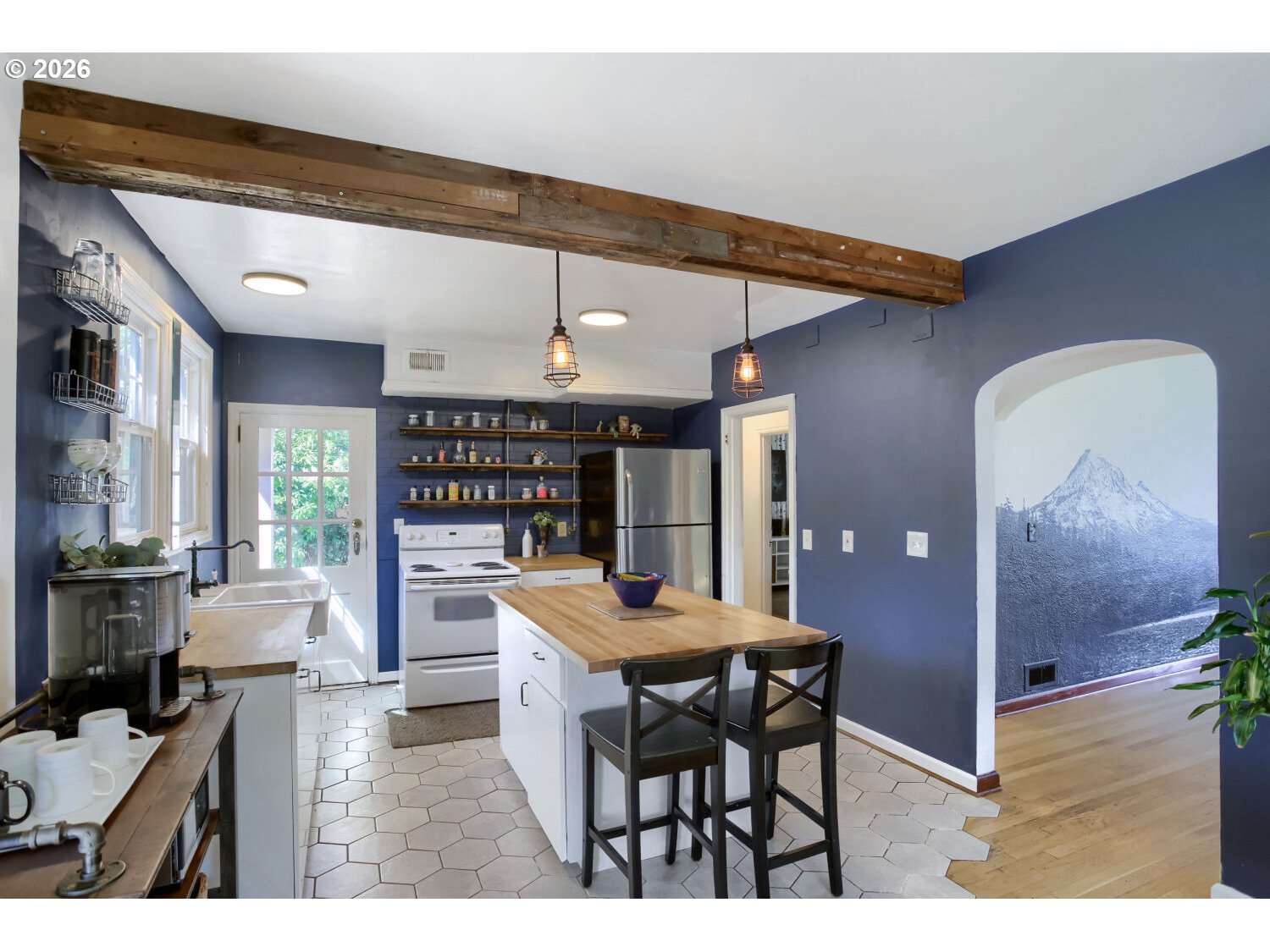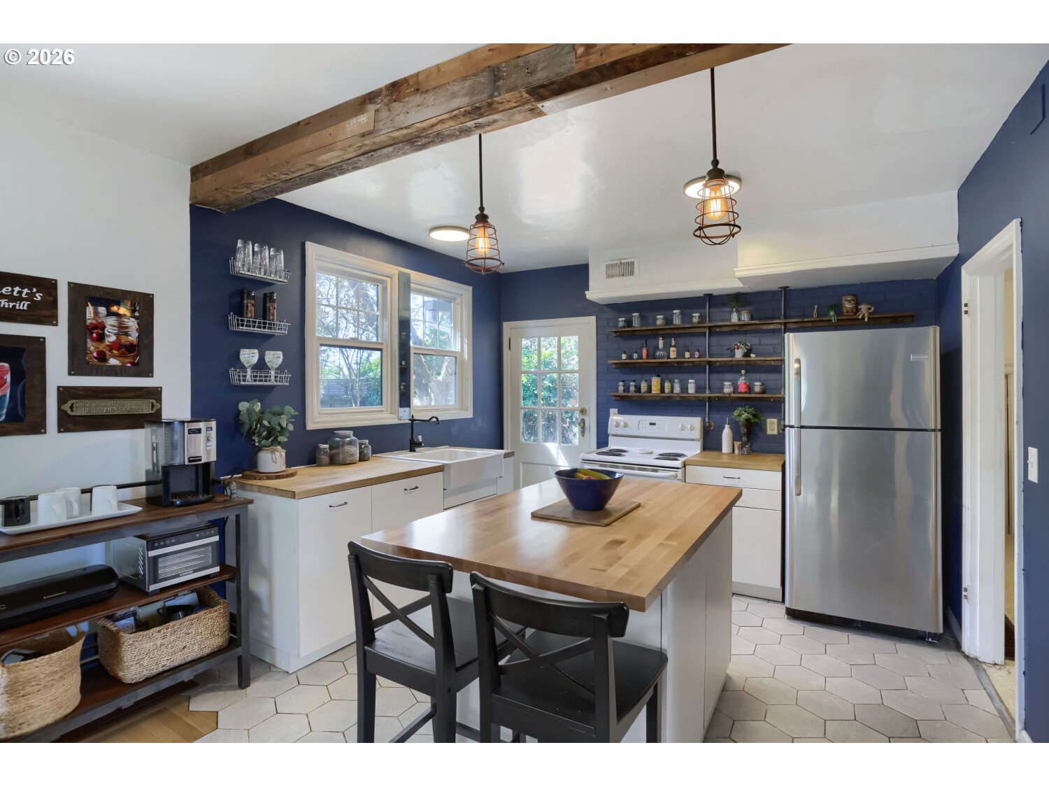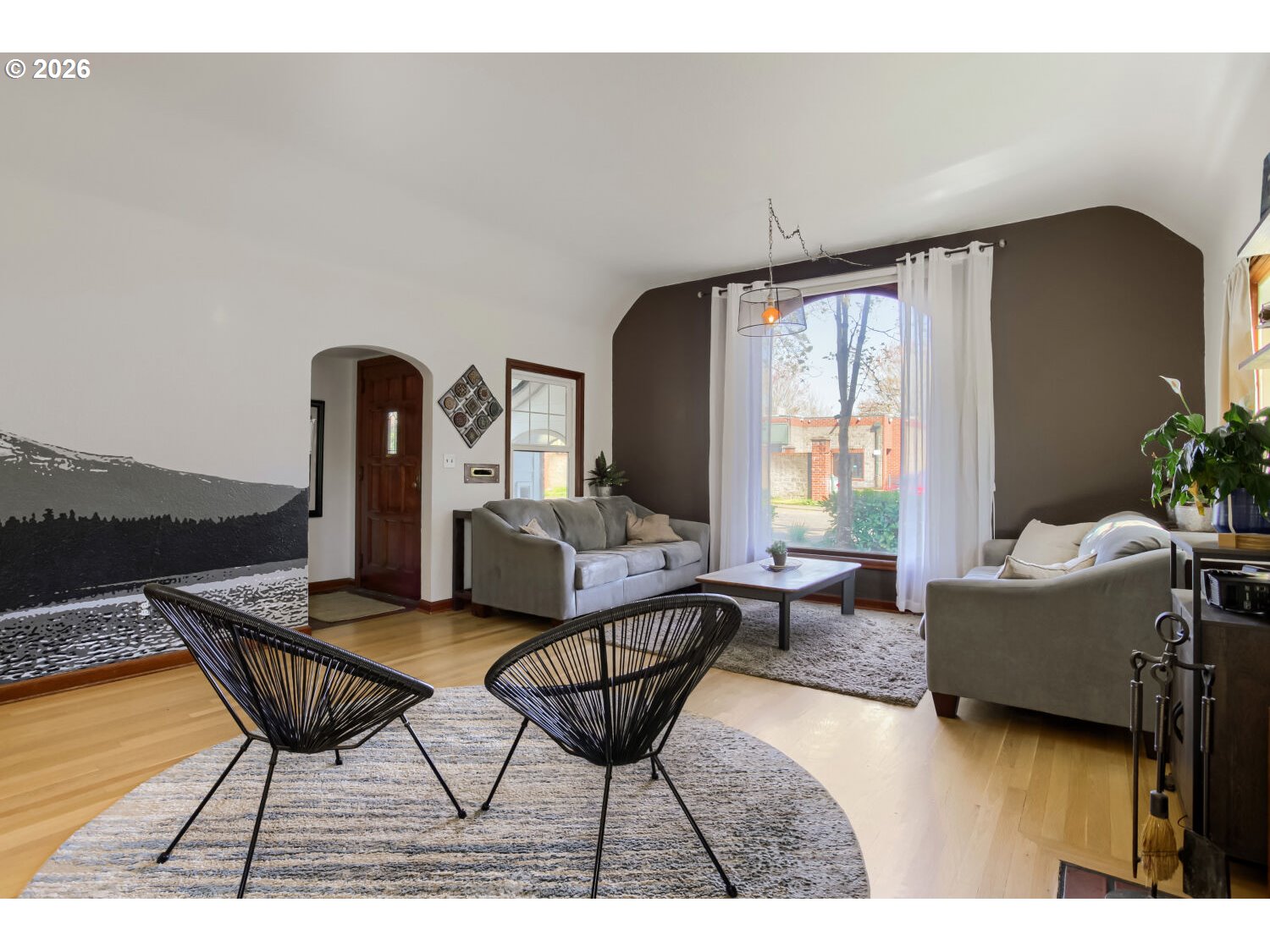 - Step into this beautifully updated 1936 Tudor style home that perfectly balances historic soul with modern living. This 2,248-square-foot residence has been thoughtfully improved from the inside out, offering a rare blend of timeless character and contemporary peace of mind. The heart of the home has been redesigned with an open concept kitchen, featuring custom cabinetry, sleek countertops, and a center island. The main level features warm refinished wood floors leading you past a cozy wood-burning fireplace and built-in shelving that adds functional elegance to the living and dining rooms. Every window and screen in the house has been replaced with modern double-pane vinyl, filling the interior with natural light while ensuring energy efficiency. The versatile floor plan offers three bedrooms and three full bathrooms across three levels. The upper level hosts a secondary family room and a third bedroom perfect for a separate living area with it's own outdoor entrance. The partially finished basement provides additional living space, a second bedroom, and dedicated storage. The home's exterior has been restored with all-new T-111 siding and carefully repaired flashing which provides a fresh, protected facade. Situated on a spacious 0.19-acre corner lot, the grounds are primed for your very own private oasis featuring a fully enclosed yard, a patio for entertaining, a fire pit, and raised garden beds for the urban gardener in you. Recent structural updates include new roofing over the front porch archway and reinforced rear porch posts, ensuring this classic Portland gem is ready for its next chapter. Located with easy access to grocery stores, restaurants, shops, parks, I-205 and so much more. Just a short distance to Essex Park with a Walk Score of 88, a Transit Score of 85 and a Bike Score of 92! Don't wait to make this house your very own perfect piece of Portland!
