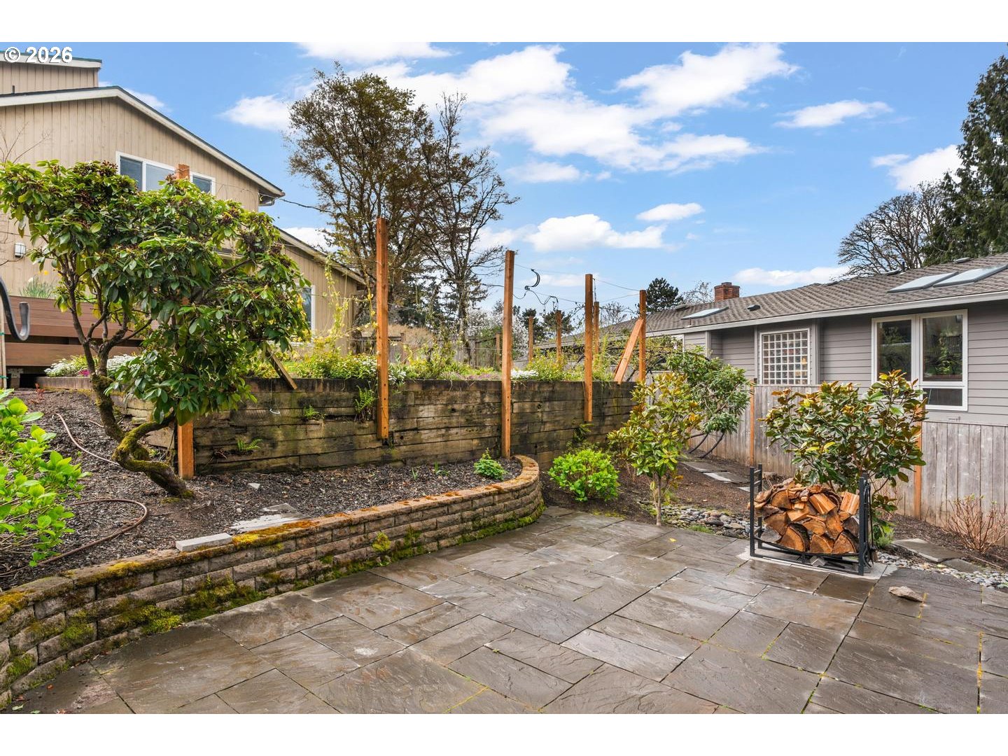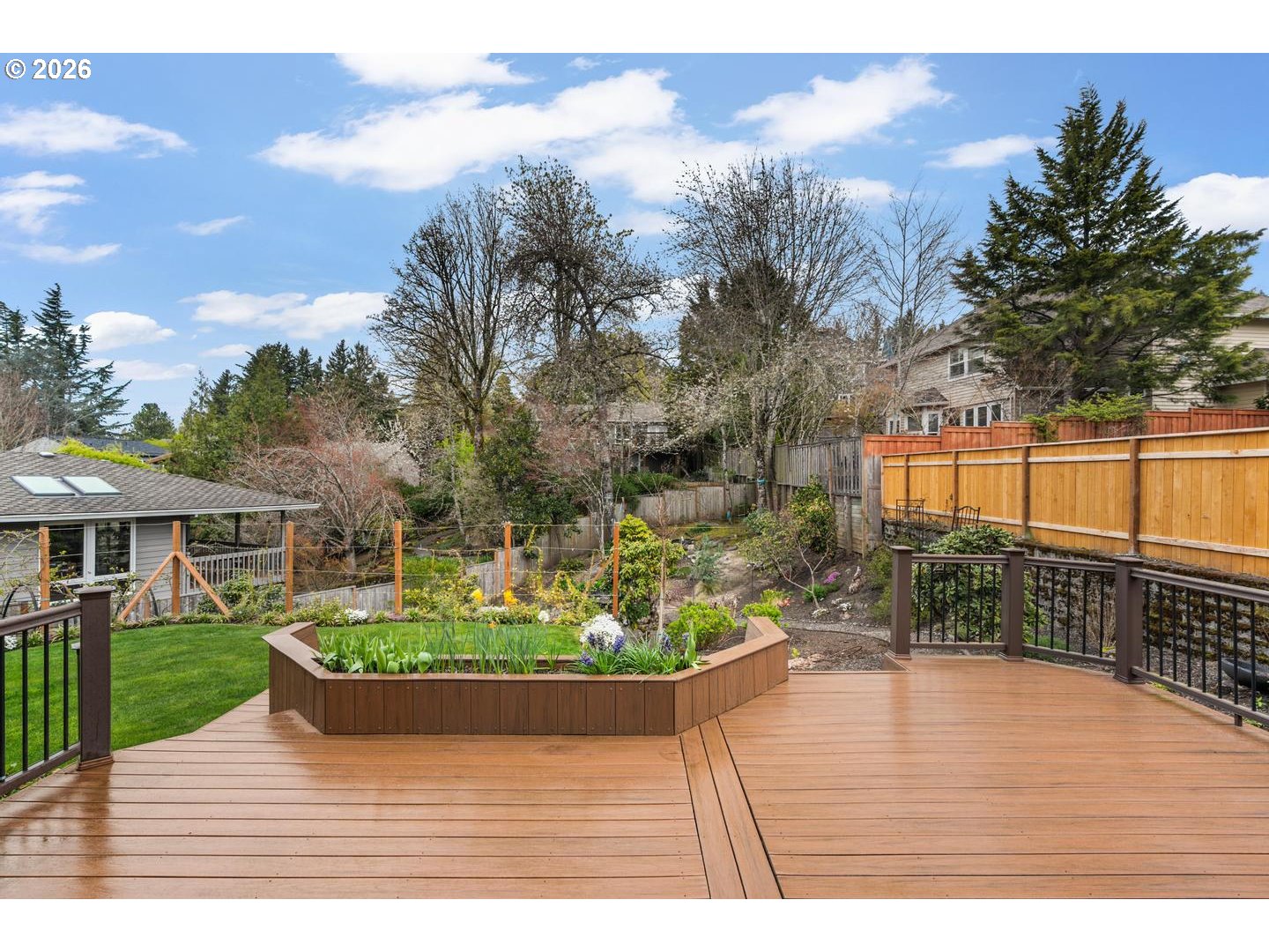- Deck, Fenced, Garden, Patio, Raised Beds, Sprinkler, Tool Shed, Yard