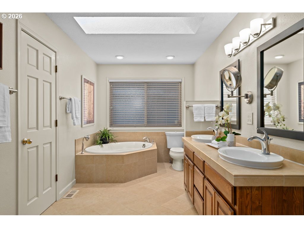 - This exceptionally well-kept home in desirable Fox Hill neighborhood has been upgraded to perfection.Move over Agreeable Grey, this warm, welcoming and inviting home has everything you need.You’ll love the stunning hardwoods throughout and high ceilings that steal the show. Find your retreat in the huge primary suite- 2 walk-in closets, a large soaking tub and huge shower. Upstairs you’ll find 2 additional large bedrooms and a full bathroom. Downstairs you’ll find a cozy family room featuring a fireplace with a remote controlled gas insert, an additional bedroom or amazing home office and a third full bathroom with a Kholer walk-in jetted bathtub. The main level features a living room and dining room along with the large kitchen with an eat-in dining nook with built in benches with extra hidden storage.The kitchen is equipped with lots of cabinets, stainless steel appliances, and an eat-in island with an exterior door with direct access to the deck.The oversized garage is really a second retreat complete with epoxy floors, exterior irrigation system, a security system and custom shelving for all of your tools and toys. Presidential roof and paid off solar, earthquake retrofitting, Milgard windows, MasterShield Leafless gutters and crawlspace professionally encapsulated by TerraFirma with a transferable service agreement provide long-term confidence. Additional improvements include updated AC 2021, new High Efficiency furnace 2025. Paid-in-full solar panels offer long-term energy savings with electric bills that rival an iced coffee run in the sunny months.The backyard is designed for both beauty and function with a large covered awning, sun screen, Timbertech deck, a storage shed and a beautifully landscaped English garden that is about to really show off when spring is in full bloom.Ideally located with quick access to I-5 and I-205, blocks to Meridian Park Hospital and just minutes to Bridgeport Village shopping, dining, and entertainment. A must see!