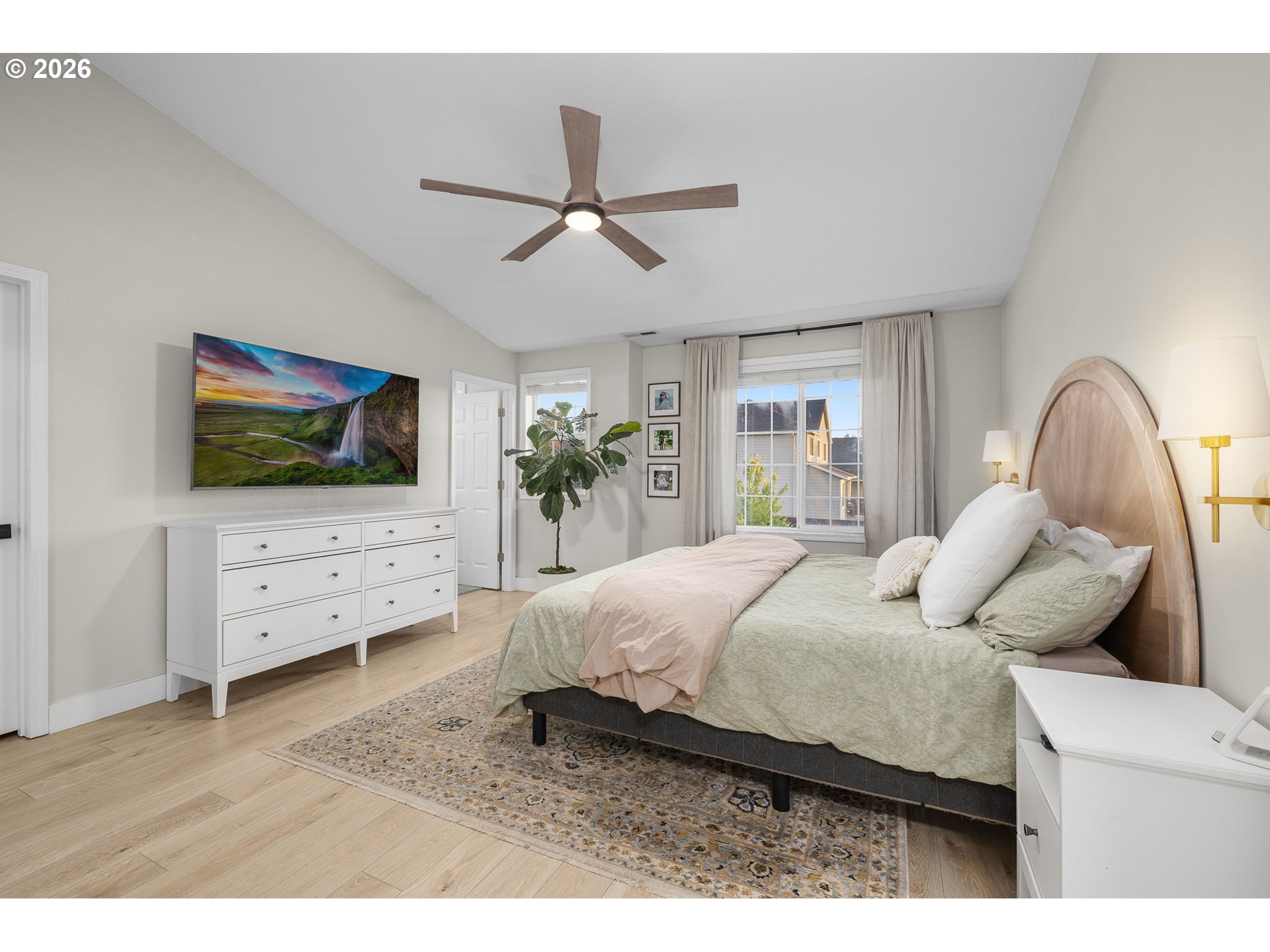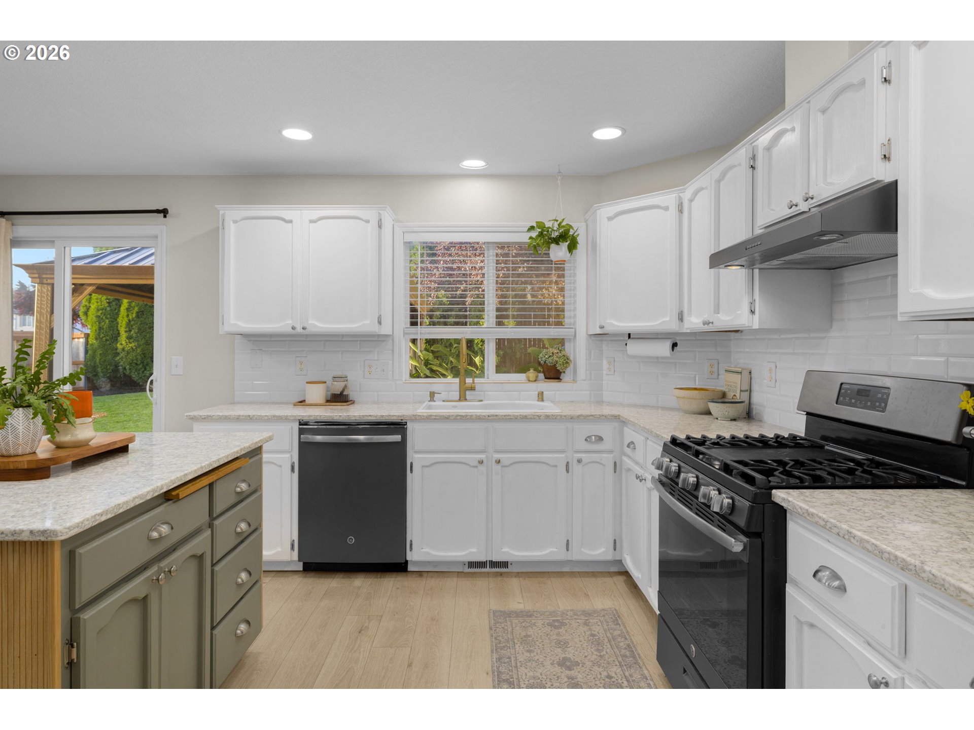 - Beautifully refreshed 4-bedroom home on a desirable corner lot! With new flooring and fresh interior paint throughout, this home feels bright, clean, and truly move-in ready. The main level offers a comfortable and functional living space with a cozy gas fireplace and an updated kitchen featuring quartz countertops, island seating, gas range, and generous cabinet storage. The dining area opens directly to the backyard, creating an easy flow for everyday living and gatherings.Upstairs, the vaulted primary suite includes a walk-in closet and private bath, along with three additional bedrooms. Step outside to a fully fenced backyard designed for making memories, complete with a lush lawn, mature landscaping, and a patio that provides space to relax, entertain, and play. Central A/C, gas heat, sprinkler system, and a 2-car garage. No HOA! Potential for RV parking. Ideally located near schools, parks, and everyday amenities.