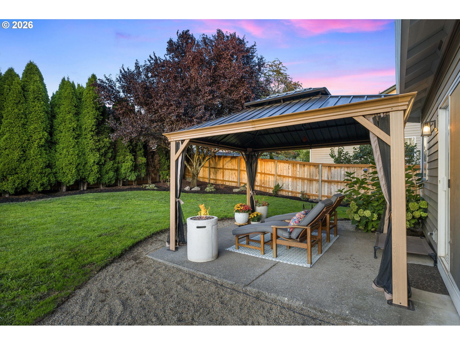 - Fenced, Gazebo, Patio, Porch, Sprinkler, Yard