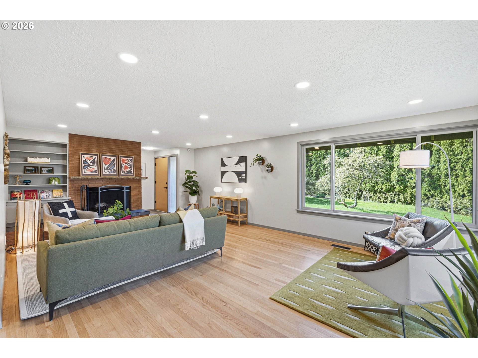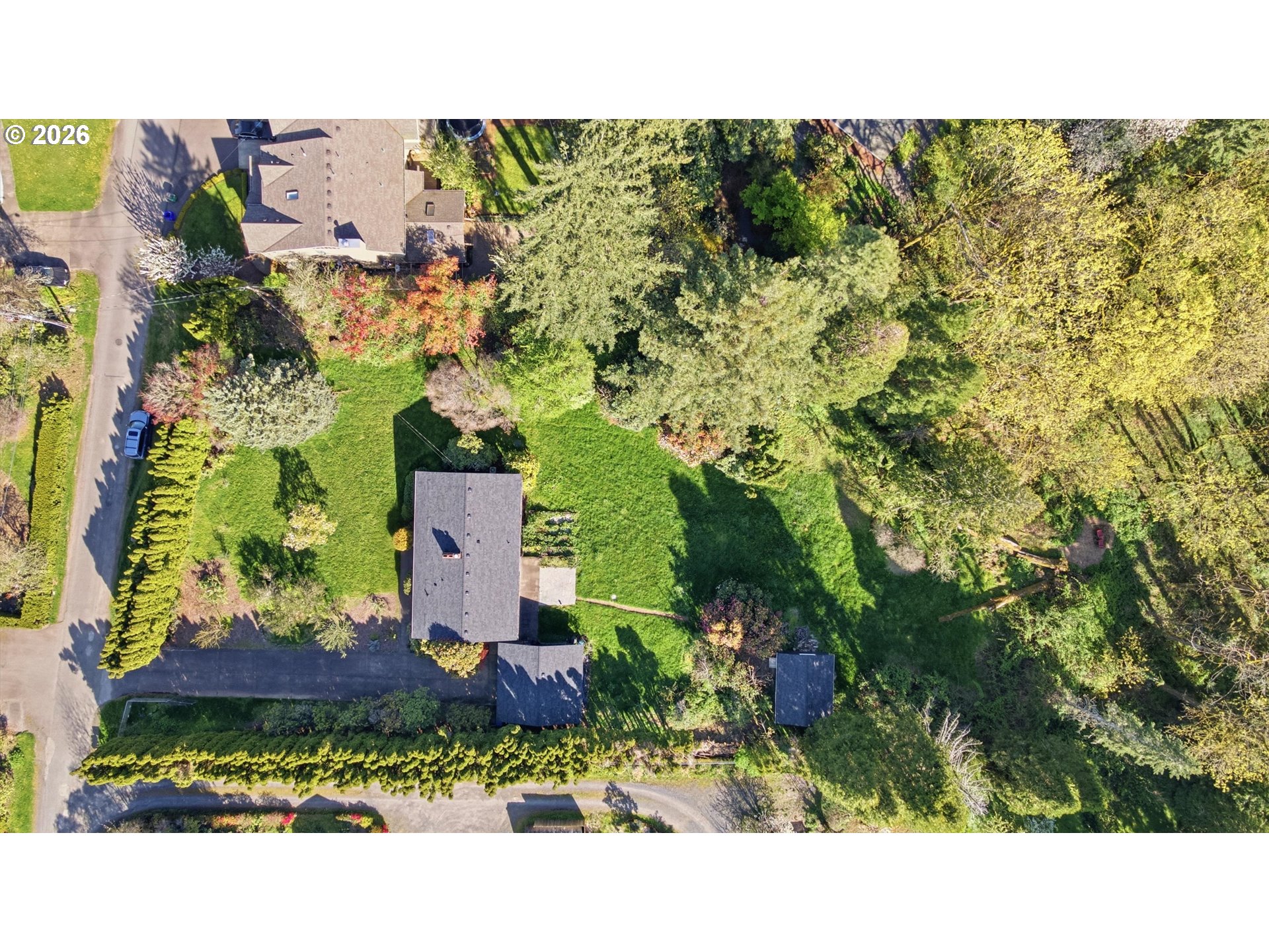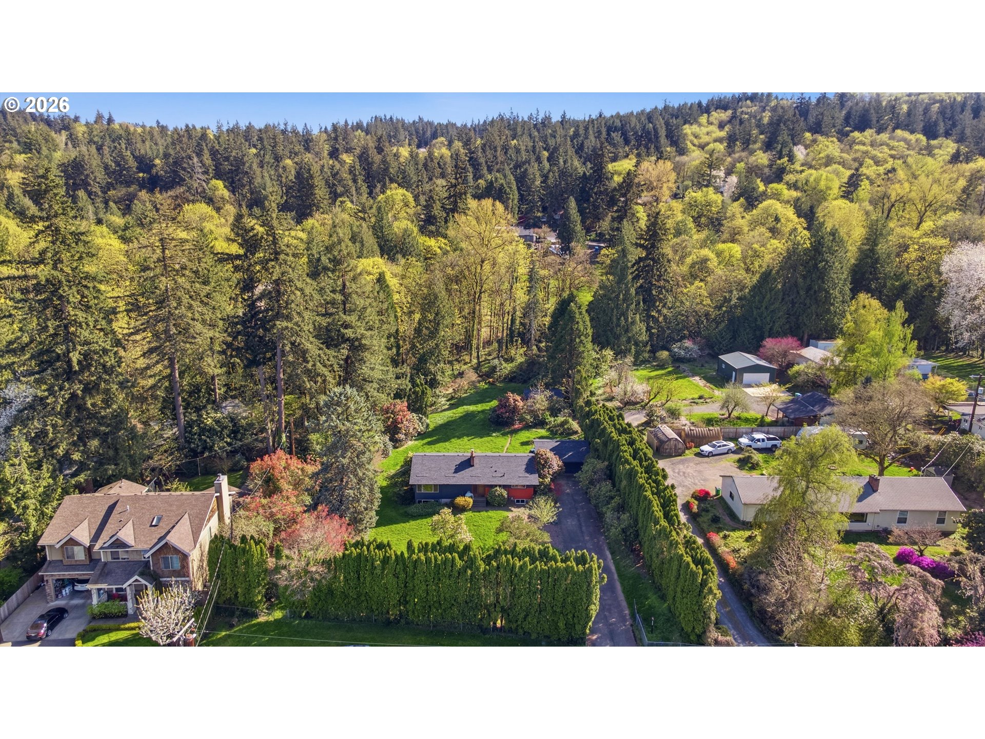 - Hidden at the end of a quiet lane where the world seems to slow down, this 1.4 acre sanctuary is a true dream property. Towering redwoods stand watch over curated heritage gardens, while fruit trees and ever-changing blooms paint the landscape in every season. At the far end, a peaceful maple grove overlooking the creek and lush ferns creates a setting that feels worlds away... serene, secluded, and deeply restorative. The home itself is designed for both connection and flexibility. With 4 bedrooms and 2 bathrooms, the layout adapts effortlessly to your needs. A gorgeous Roman brick fireplace anchors the expansive open living space with pristine white oak floors. Massive windows frame the landscape like living artwork on every wall. The kitchen is a true chef's kiss, with quartz counters, warm wood cabinetry and custom tile work. Filled with live-edge and custom wood built-ins, it's perfect blend of mid-century design with an artistic nod to the Pacific NW. The finished lower level with its own 2 bedroom, 1 bath configuration offers the perfect setup for multi-generational living, extended stays, or creative separation of space. Step outside and you’ll find even more possibilities. A detached studio invites inspiration, ideal for a home office, art space, or private guest retreat, while terraced garden beds offer room to expand, cultivate, and create. Every detail has been thoughtfully renewed, making this home truly turnkey. Behind the scenes, major upgrades to electrical, plumbing, lighting, and septic/storm systems ensure peace of mind for years to come. Brand-new 50-year roofs (2025) across all structures, with a transferable warranty, complete the picture. A long, private driveway welcomes you home with ample space for guests, gatherings, or simply room to breathe. This is more than a home...it’s a retreat, a canvas, and a rare opportunity to live surrounded by privacy and possibility.