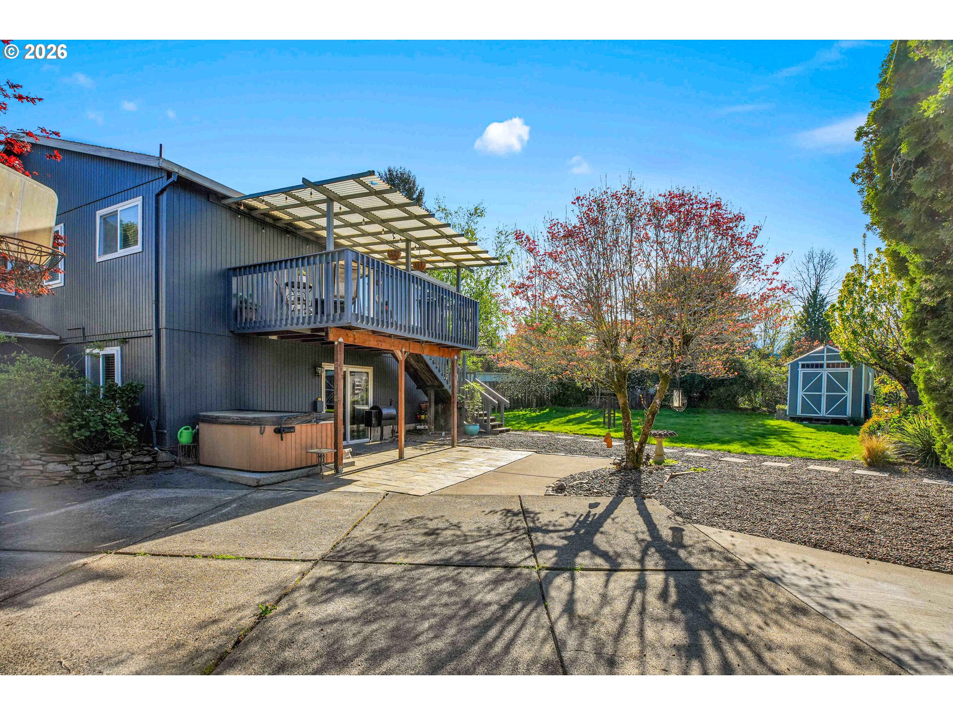 - Spacious and beautifully updated 4-bedroom, 3-bath home with room for everything! This home features durable LVP and tile flooring, fresh interior and exterior paint, and elegant touches like wainscoting and oak-stained entry stairs. The kitchen offers granite countertops, a gas cooktop and oven, and opens to inviting living spaces with a cozy gas fireplace. The large primary suite is filled with natural light and includes LVP flooring and attached bathroom, while the hall bath showcases a tile shower and tile flooring. A separate living space adds flexibility for entertaining, relaxing, or multi-generational living. Enjoy incredible storage with a wraparound under-stair storage area—perfect for luggage, holiday décor, and more. Step outside to a massive backyard designed for fun and functionality, complete with a fire pit area, basketball court, green space, and two storage sheds. The garden are offers raspberry, blueberry, and huckleberry bushes, along with apple, cherry, and plum trees. There’s also ample room for a possible adu, plus three gated access points. Unwind year-round in the hot tub with recently updated filter and pump. The HOA includes dedicated RV/boat/motorhome storage. This property truly offers space, versatility, and lifestyle all in one!