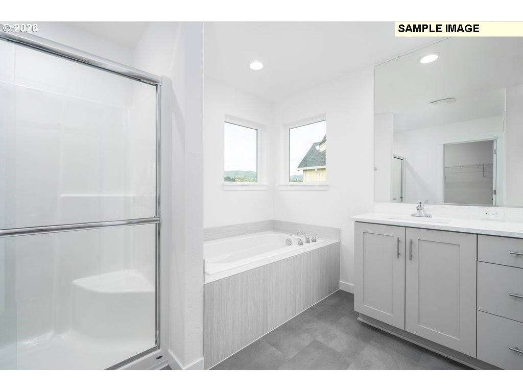 - Welcome to the beautiful new community of Heartwood! This stunning 2414 plan is designed for modern living, offering an open-concept space that blends the living and dining areas seamlessly with a large island and a walk-in pantry that’s perfect for prepping and storage. The unique tandem-style 2+ car garage adds extra versatility with a roll up door leading to the backyard! On the main floor, you'll find a convenient bedroom with a full bath. Upstairs, the luxurious primary suite boasts a soaking tub, walk in shower and a spacious walk-in closet, while the two additional bedrooms also feature walk-in closets. Enjoy the extra space with a bright loft and a large utility room. The Community HOA provides hassle-free living by covering front yard landscaping maintenance. Built by a highly respected builder with over 40 years of experience in the PNW, each home exemplifies quality craftsmanship and modern design. Pictures are sample only. Still time to pick your finishes making this home uniquely yours. Estimated completion date