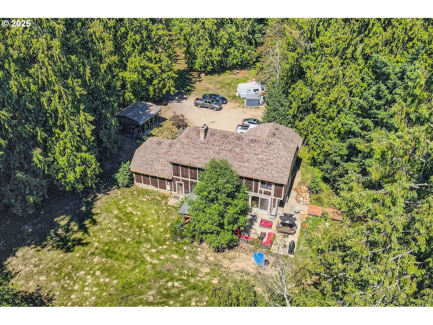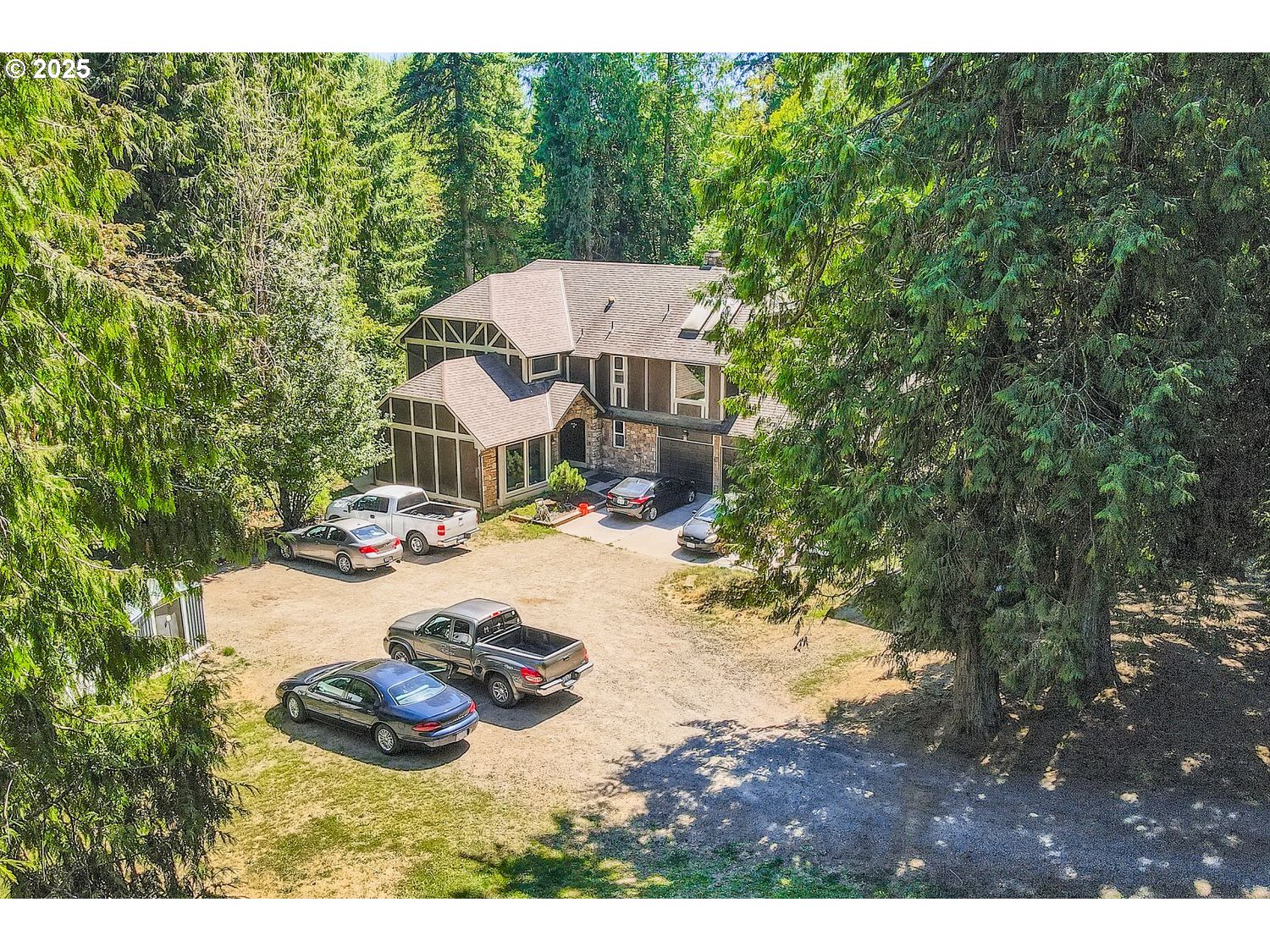 - Discover a rare blend of location, space, and privacy in this 1979 built classic English Tudor, ideally situated at the end of a quiet dead end street on 2.32 acres. Conveniently located near major freeways, shopping, and services, this property offers mature trees, park like grounds, and a natural seasonal creek. The home features five bedrooms, two and a half bathrooms, generous living spaces, and a bonus room. The primary suite includes a wood burning fireplace, walk in closet, and jetted tub. The kitchen has been updated with granite countertops and opens to a spacious deck suited for entertaining. Outdoor features include a hot tub, swim spa, gazebo, and fenced yard. Additional highlights include a three car garage with RV or boat parking, ample storage, and a private well and septic system. Buyers to perform due diligence regarding zoning and future use.