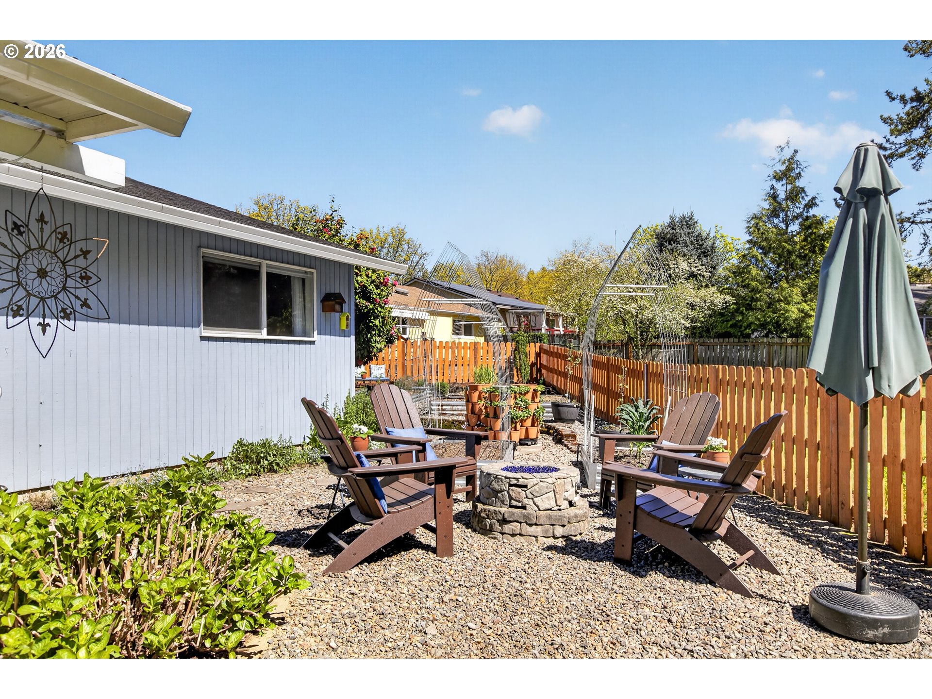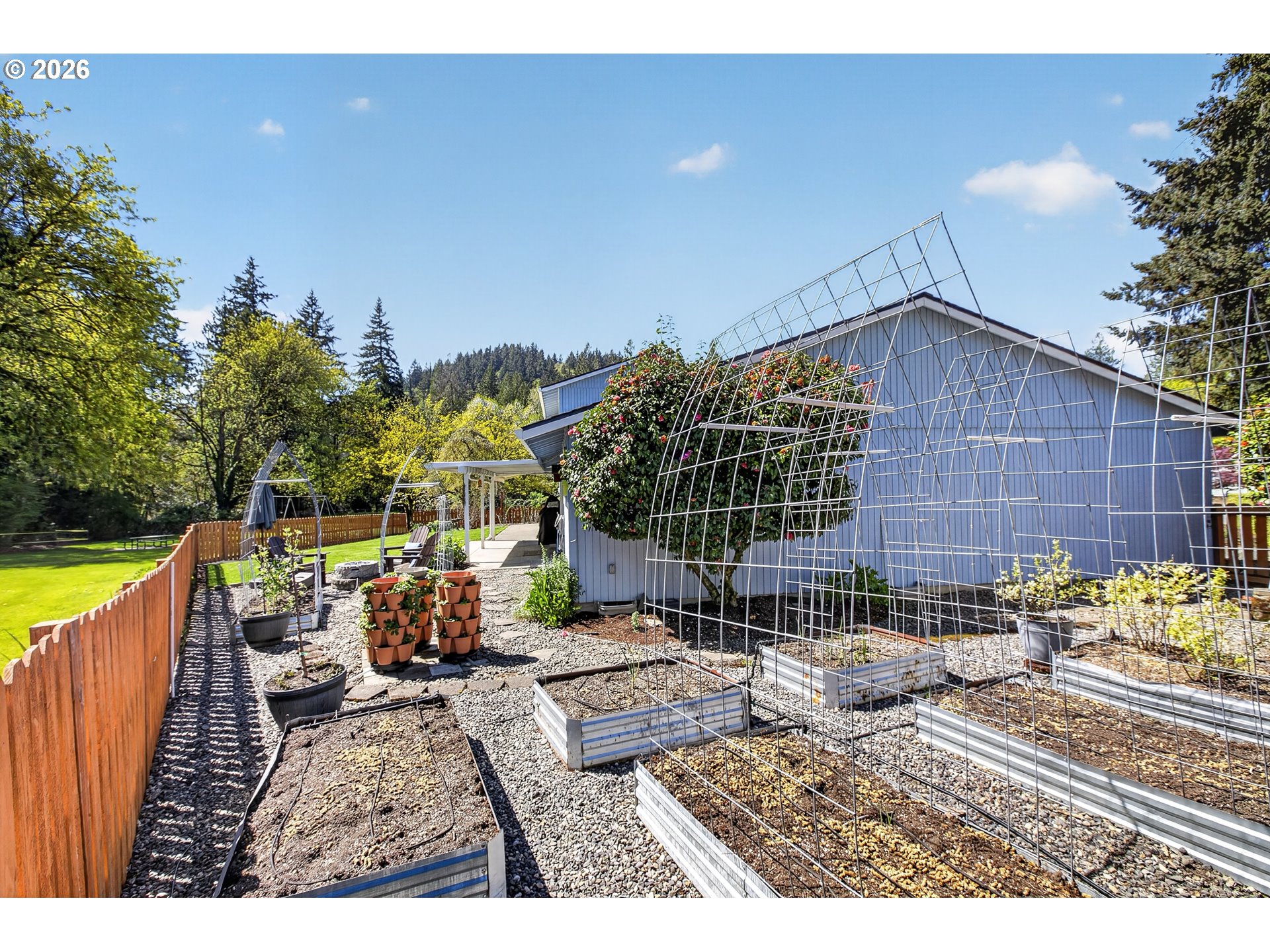 - Covered Patio, Fenced, Fire Pit, Garden, Patio, Porch, Raised Beds, Tool Shed, Yard