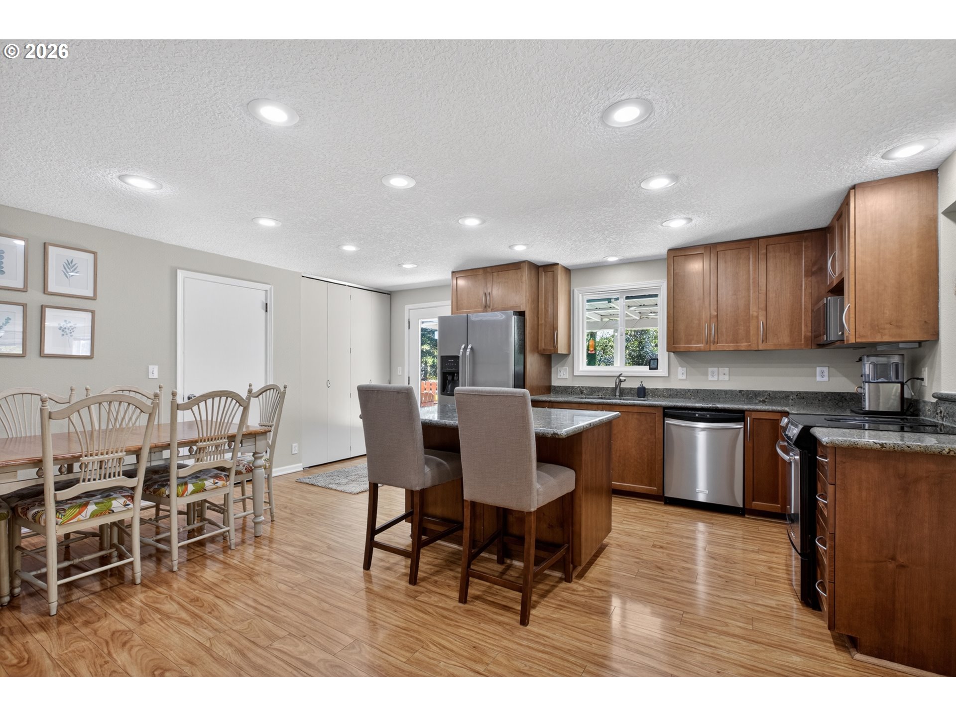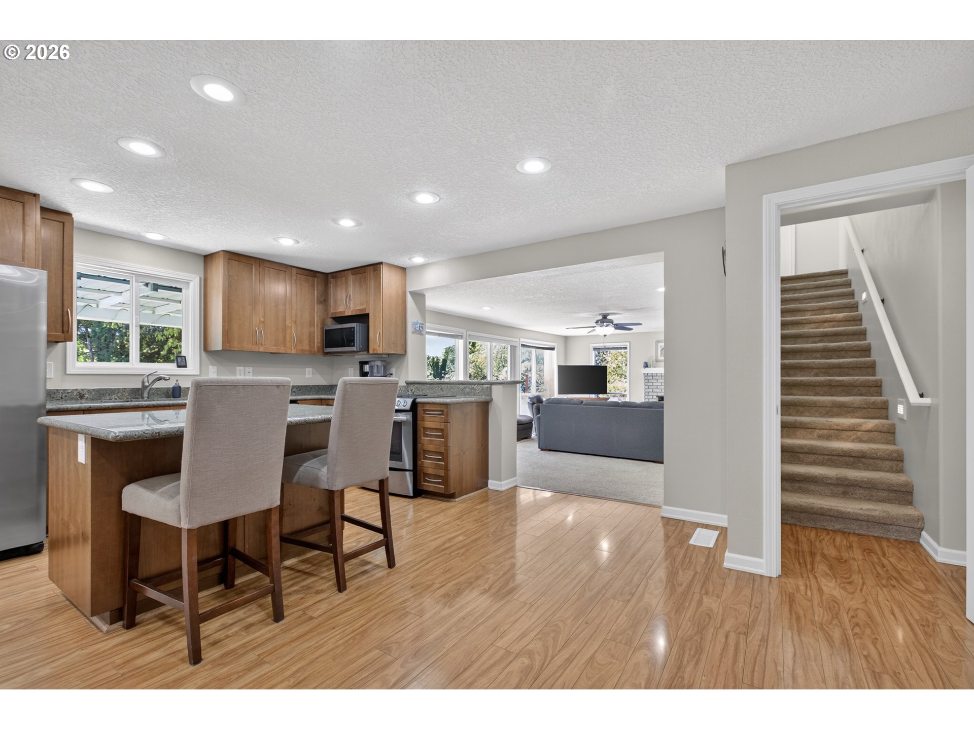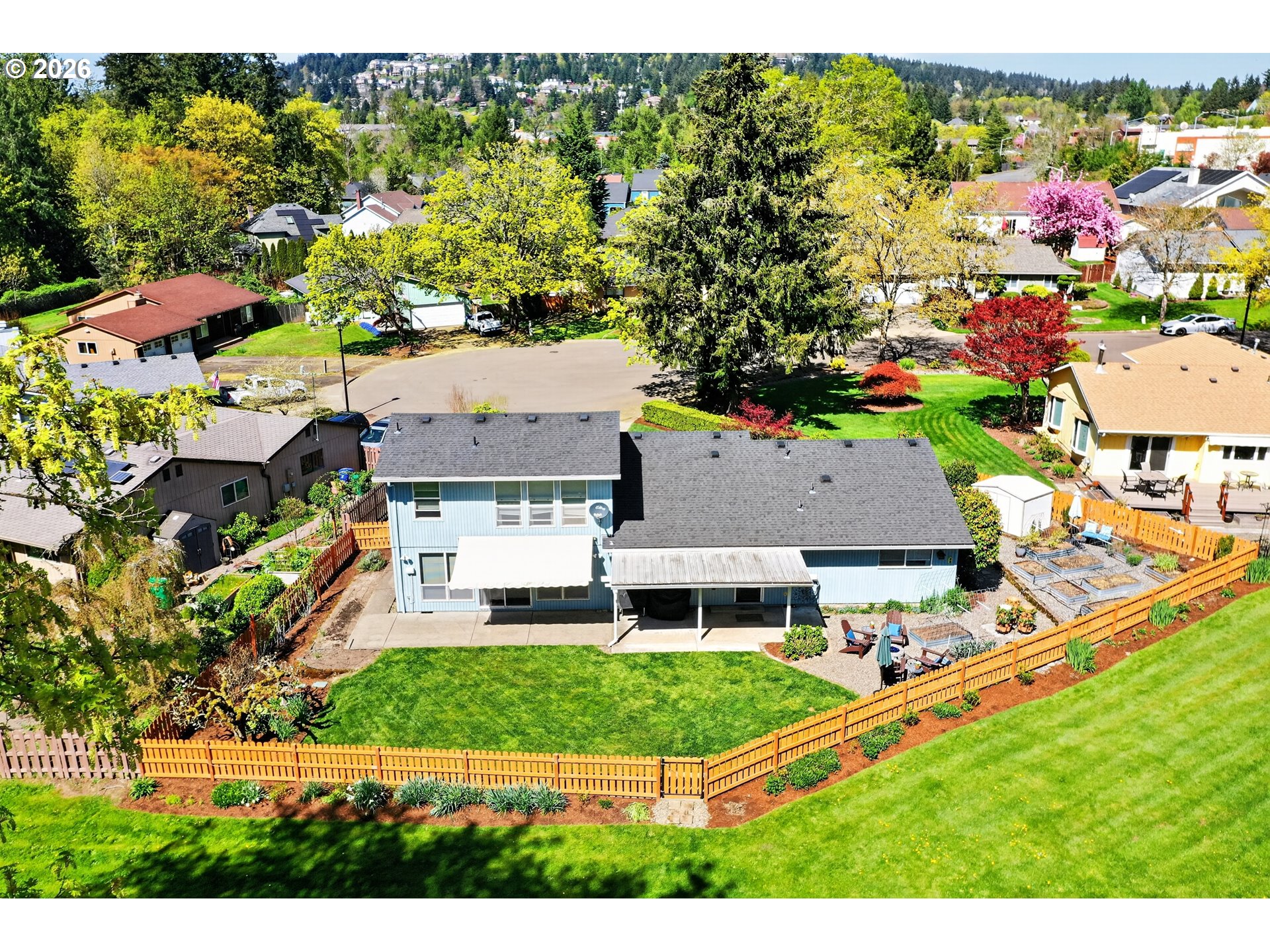 - OPEN HOUSE: Saturday, 4/11, 12pm-2pm and Sunday, 4/12, 1pm to 3pm.Wonderfully updated 4-bedroom, 3-bath home featuring two primary suites—one on the main level and a stunning upper-level retreat with vaulted ceilings overlooking the backyard. Tucked away at the end of a quiet cul-de-sac, this home sits in a hidden oasis of a neighborhood complete with its own private park, which the property backs directly to for added privacy and serene views. The spacious family room offers a cozy and inviting atmosphere with an efficient pellet stove and a slider leading directly to the patio, creating a seamless indoor-outdoor living experience. The backyard is designed for both relaxation and productivity, offering a raised bed garden, tool shed, covered patio, and an additional retractable awning for year-round enjoyment. The remodeled kitchen is a standout with granite countertops, an island, built-ins, and included stainless steel appliances, while all three bathrooms have been tastefully updated. Ideally located near shopping, schools, and miles of trails at Mount Talbert Nature Park, this home combines comfort, convenience, and charm in a truly special setting.