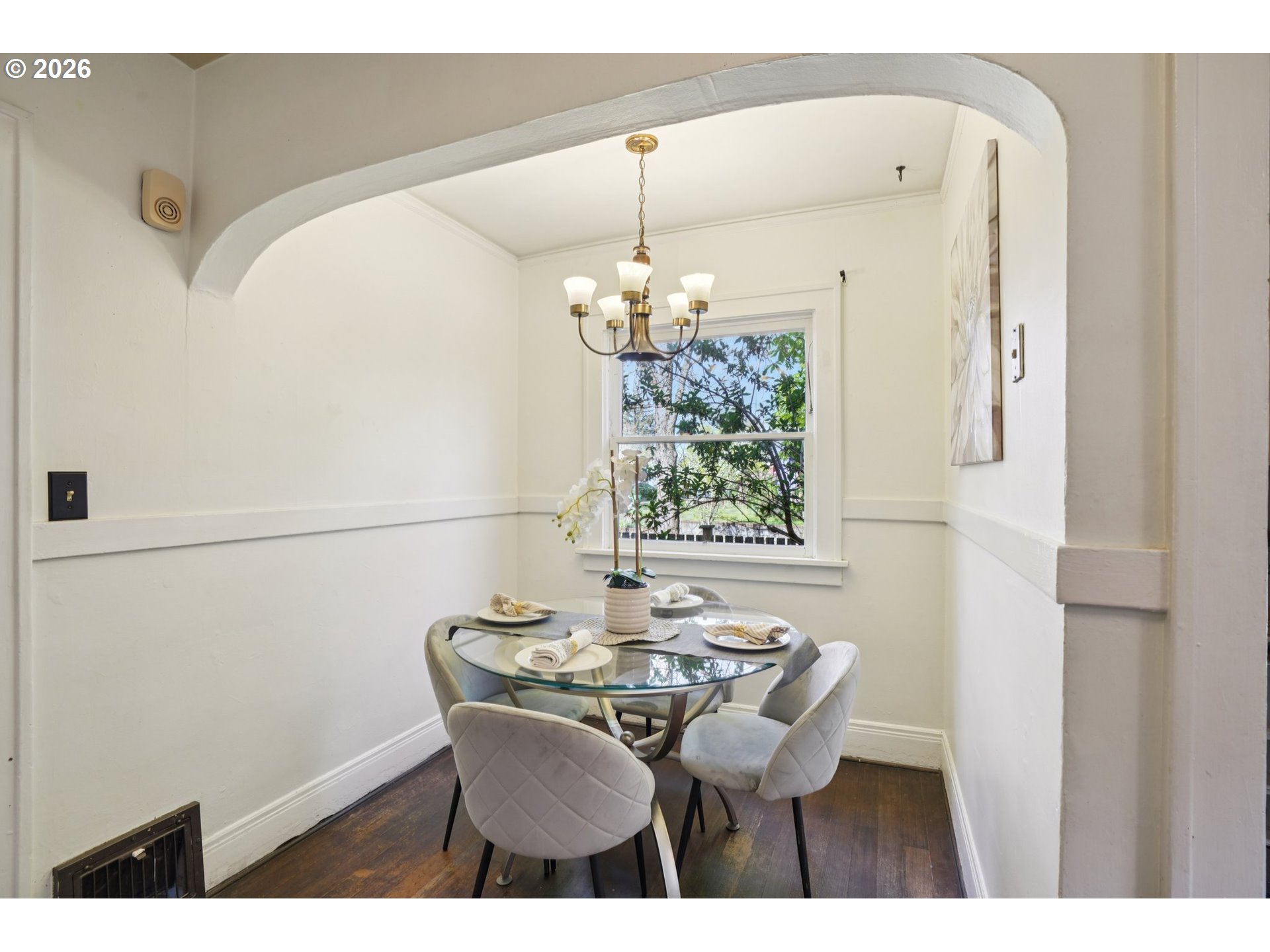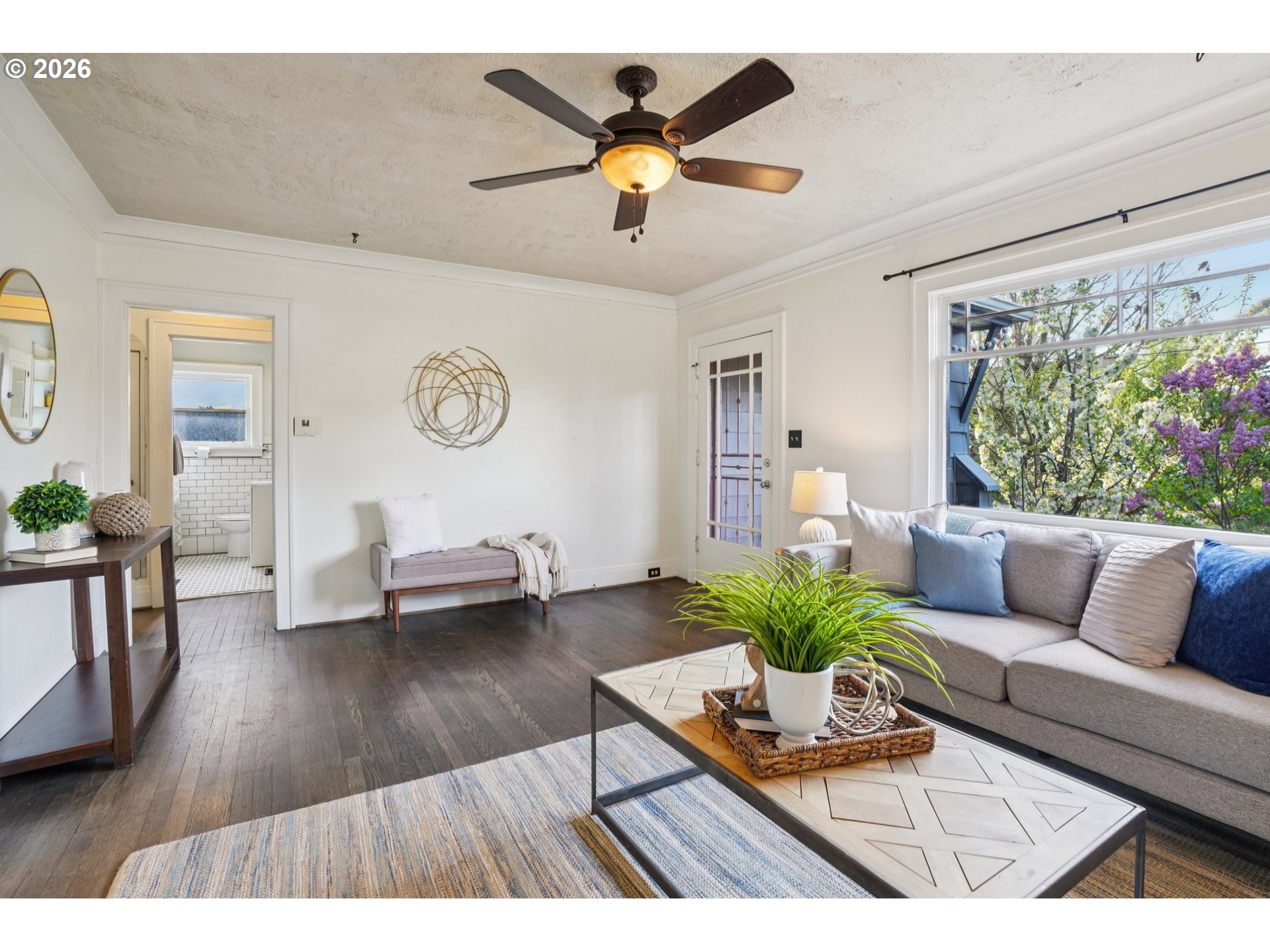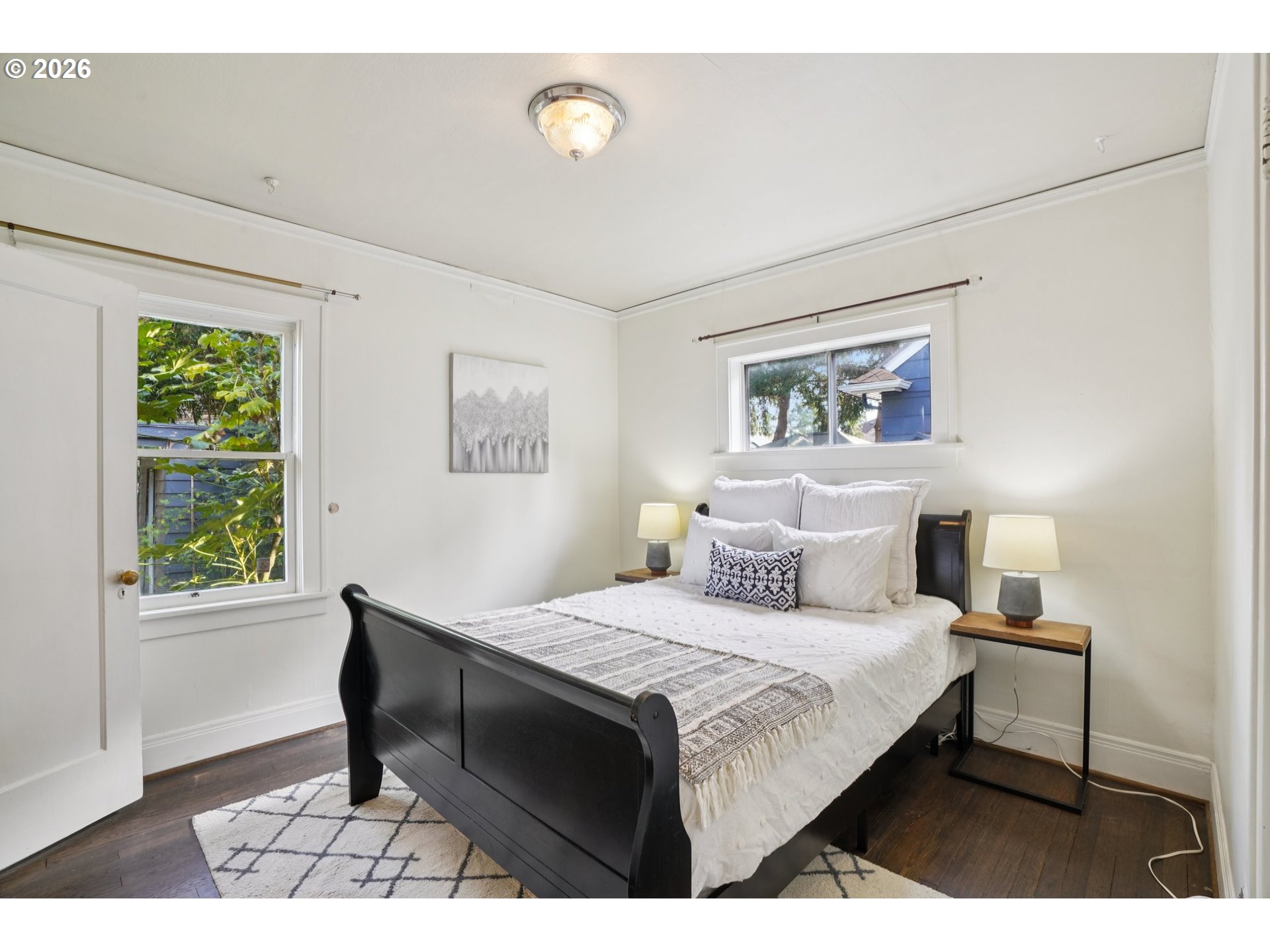 - Step inside this quintessential Portland home and fall in love! This home has been deeply loved over the past 27 years. Chosen by her owners as their forever home for her original charm and timeless details such as beautiful wood floors, picture rail and a grand fireplace with its original mantle, as well as her convenient locale. Its amazing location is close to Alberta Park, Alberta Arts, and blocks from several area restaurants and bars in either direction! This classic home is ready for her next owners to call her their forever home. The living room is warm and welcoming with hardwood floors, picture railing, original fireplace mantle and a large picture window overlooking the front garden. Speaking of gardens, these gardens tell their own story. Thoughtfully built over time to take advantage of this spacious corner lot, the gardens include native plantings with ties to Portland’s history, the quince from the Miller mansion in the Alameda neighborhood and daphne from the Schnitzer estate. Salvaged materials were repurposed into retaining walls and a patio with a fire pit, creating outdoor spaces that feel established and lasting. The kitchen blends function and period charm with butcher block counters, a subway tile backsplash, fir floors, gas stove and a farmhouse style apron sink looking out to the backyard, plus an inviting breakfast nook perfect for slow mornings. The bathroom in the home was lovingly restored to include period details including hexagon tile floor, subway tile walls and surround, and a cast iron bathtub. There are two spacious bedrooms on the main level (also with original picture railing) and two more spacious bedrooms upstairs, offering plenty of room for life to evolve or for working from home. This was meant to be their forever home. While life led them elsewhere, the love they gave this home remains and as she nears her 100th birthday, she’s ready for her next chapter—ready for someone new to fall in love.