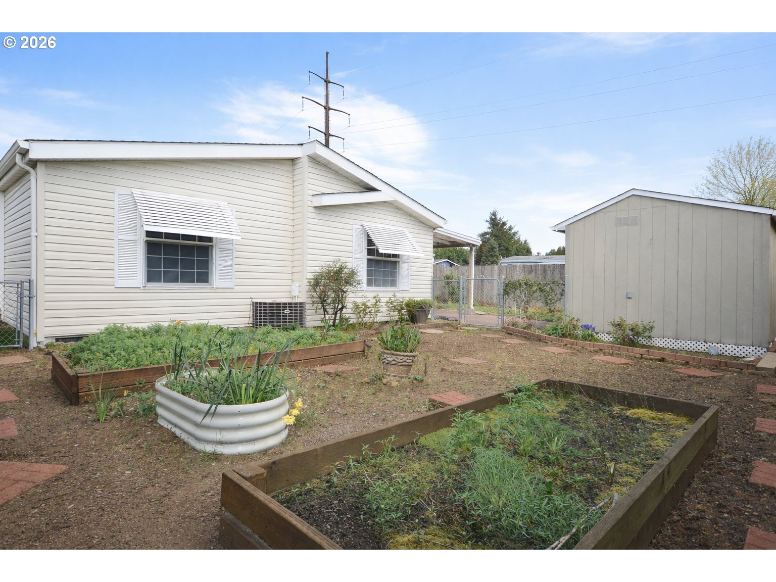 - Secure, gated 55+ park. This 3 bed, 2 bath home features an open-concept layout that flows from the living room to the dining area and kitchen, creating a spacious feel. The kitchen has a cabinet style pantry, ample counter space, and matching appliances. Additional features include vaulted ceilings, LVP flooring, and built-in display shelves. The split-bedroom layout offers privacy, with the primary suite separate from the two additional bedrooms. The primary includes a walk-in closet, tub, shower, large vanity, and extra storage. Private, fenced backyard with raised garden beds, plus shed(s) with electricity for storage or hobbies. Schedule a showing today!