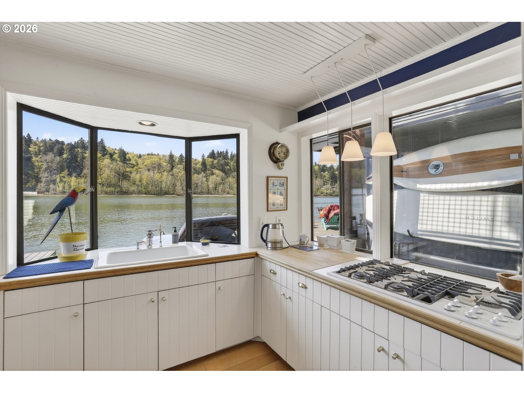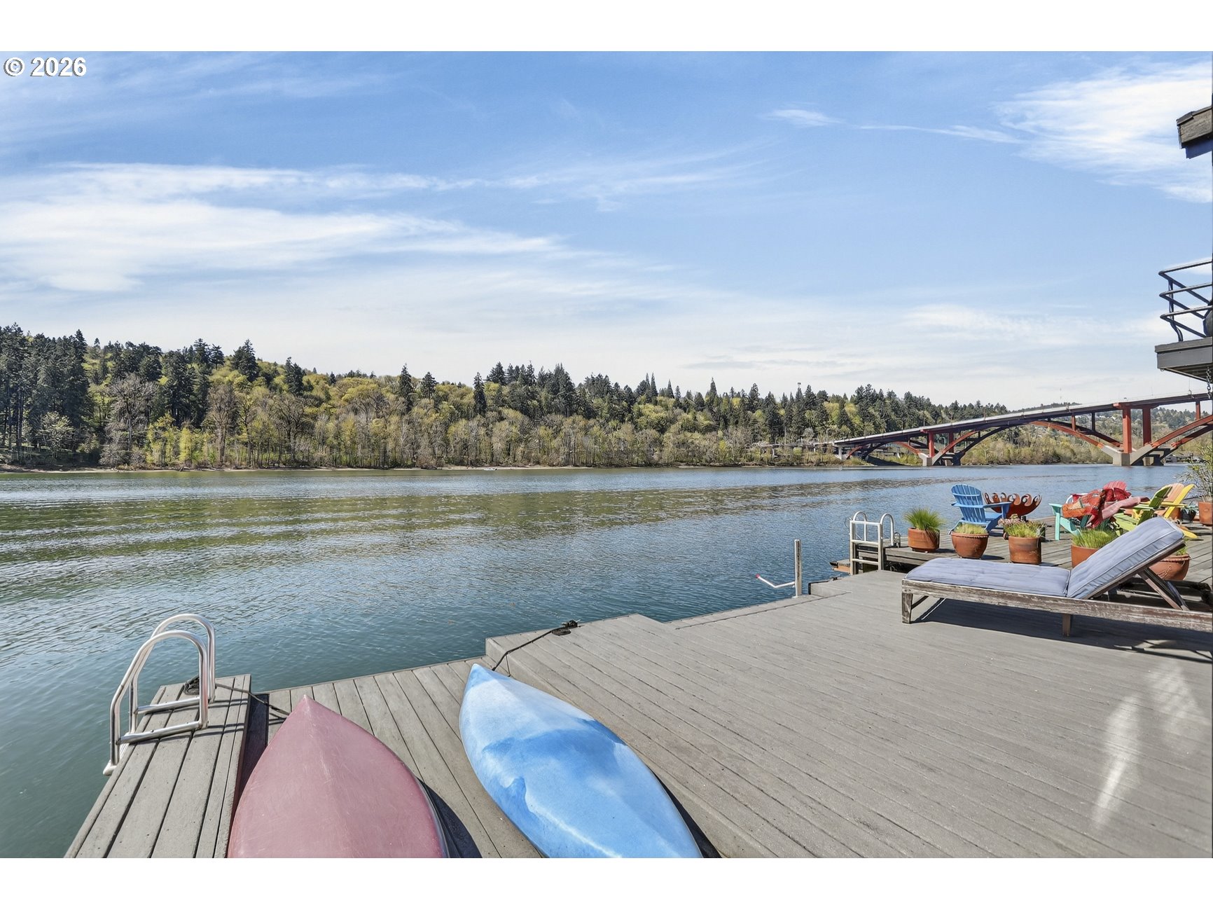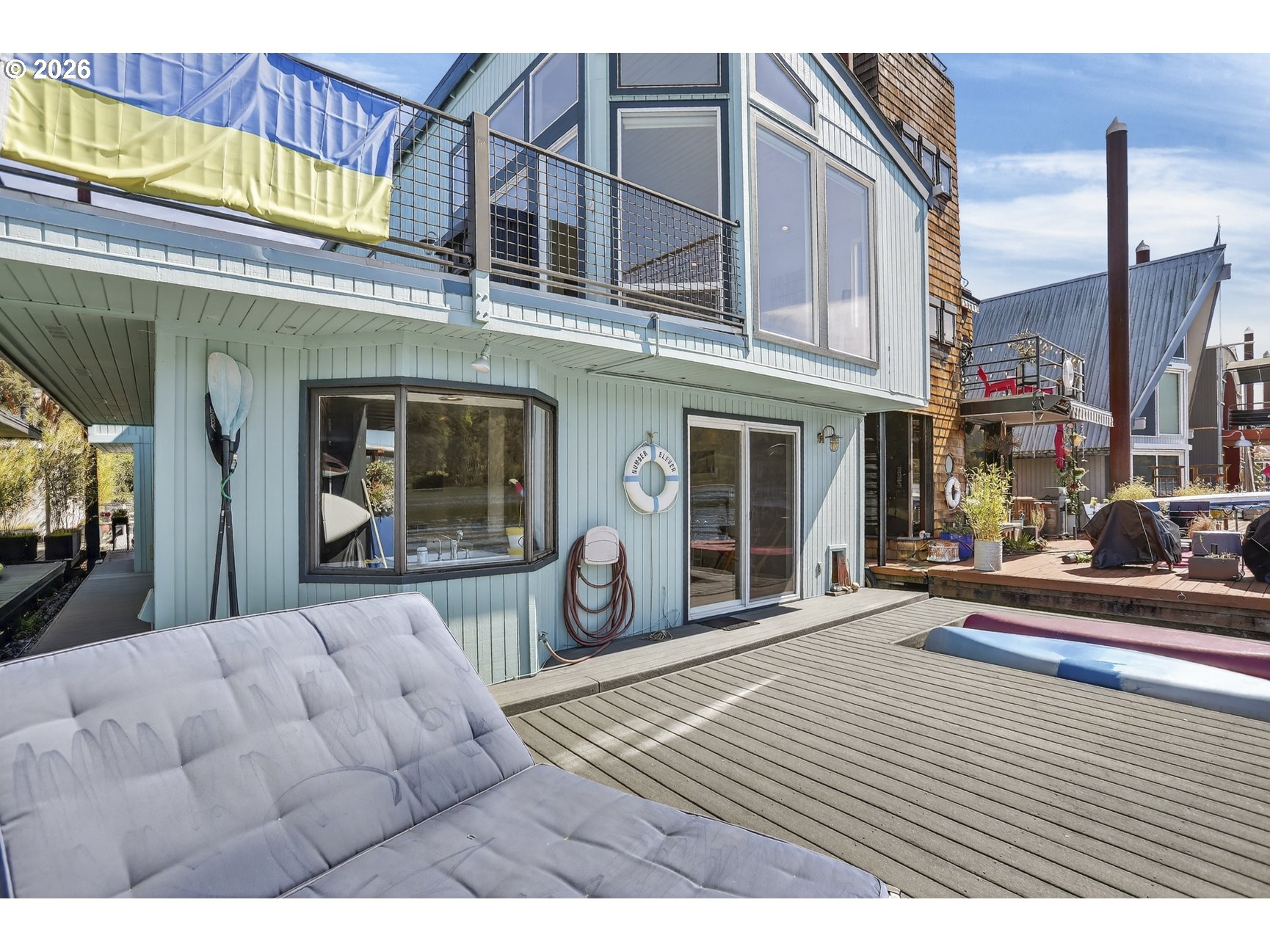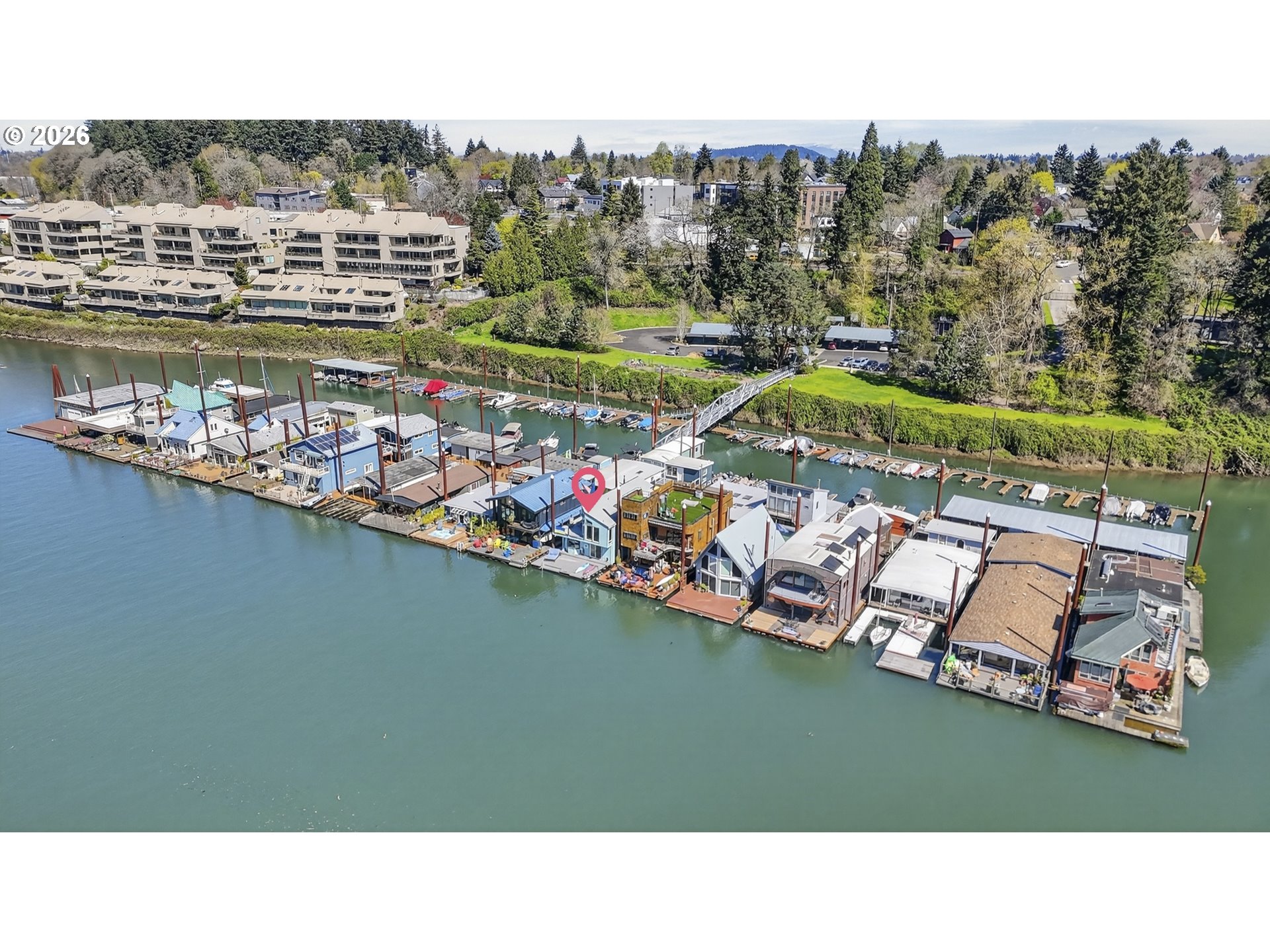 - Tucked along a picturesque stretch of the Willamette River at the historic Portland Rowing Club, this one-of-a-kind floating property delivers the full river lifestyle—complete with three separate floating structures: a beautifully updated main home, a charming ADU tender, & a separate storage shed. The main home features 2 bedrooms & 2 bathrooms, blending comfort with a relaxed coastal feel. The main level showcases wood flooring and a tongue & groove wood ceiling, creating a warm, inviting space. The sunken kitchen is a standout feature, with a charming bay window that frames river views & a gas cooktop that makes cooking a joy. The living room offers recessed lighting, a gas fireplace, & sliding doors that open to the main deck — perfect for taking in the fresh air & scenic views. Upstairs, vaulted ceilings elevate the space, where a light-filled primary bedroom takes center stage. Large windows showcase sweeping river views, while an indoor/outdoor gas fireplace adds a touch of magic year-round. A wet bar and built ins are tucked into the hallway for easy access! Also on the upper level; 3rd bedroom with a mini split & closet, a full bathroom, & access to the upper deck — an ideal spot to unwind, entertain, & take in the ever-changing scenery of the Willamette River. The outdoor spaces are dialed in for river living, with plenty of room to host, a kayak ramp, & a step-down for easy water access. Storage is abundant throughout, & the separate storage structure (complete with electricity) adds even more flexibility. The ADU tender is a true bonus, offering its own kitchen, living area, & bathroom on the main level, plus a loft-style bedroom & upper deck with views of the River! Whether used for guests or rental income, it’s a rare & valuable addition. Located next to Springwater Trail & just a few short blocks from Sellwood proper, this home offers not just a place to live — but a lifestyle rooted in community, nature, & the timeless charm of life on the river.