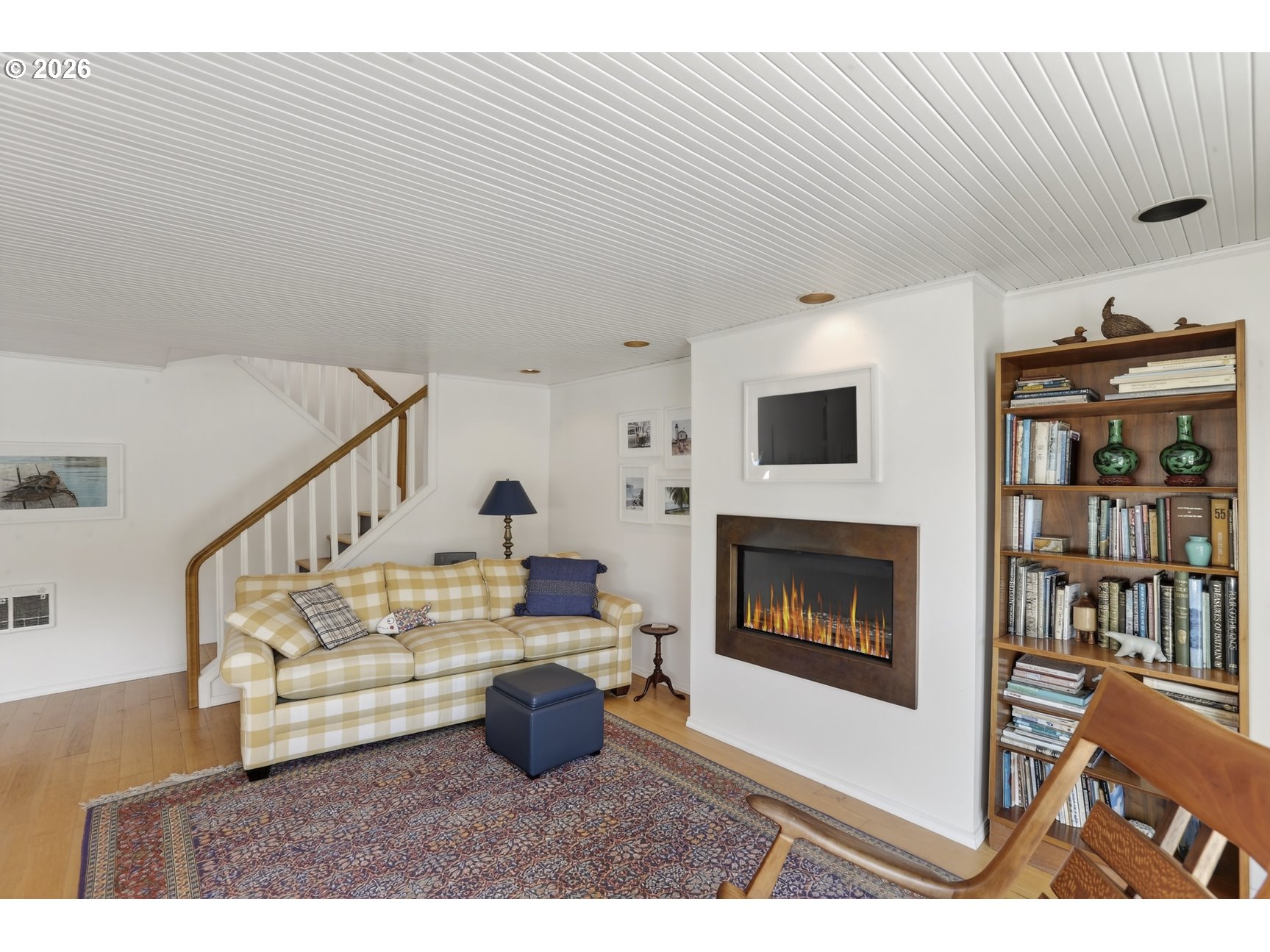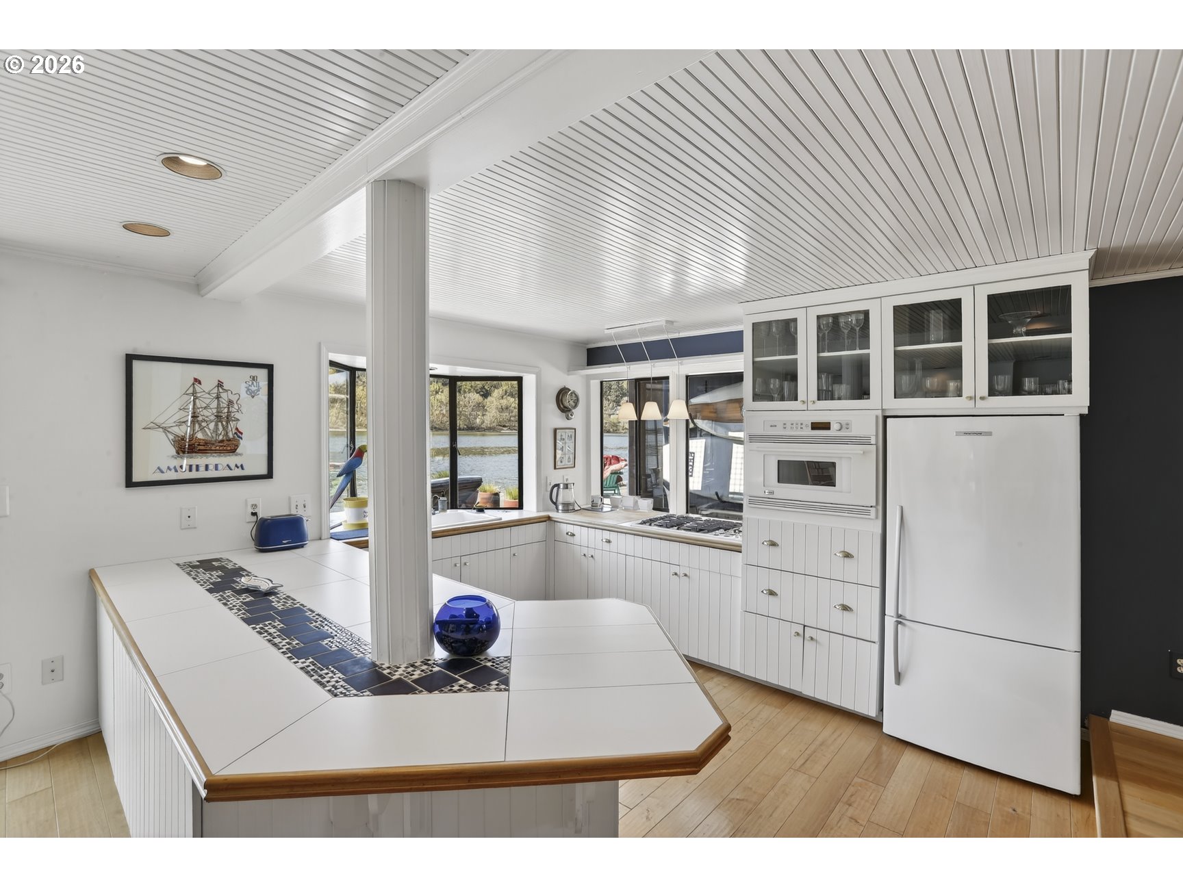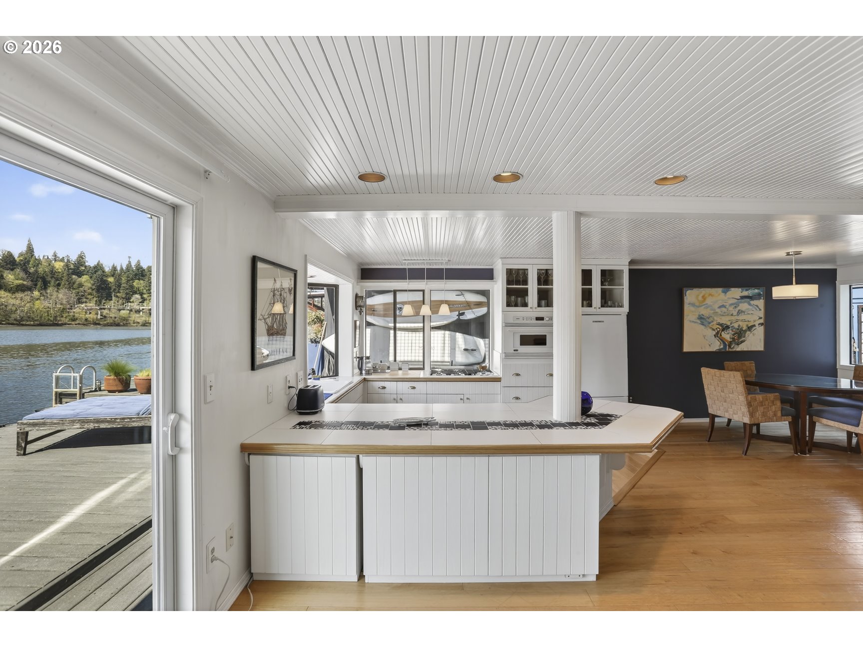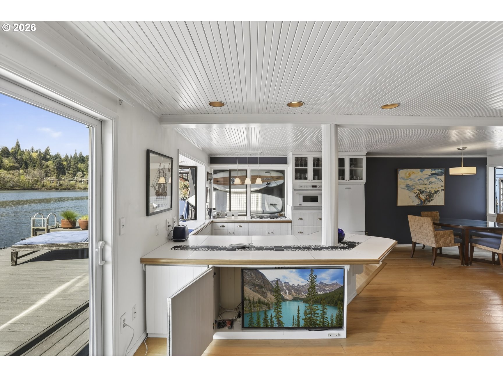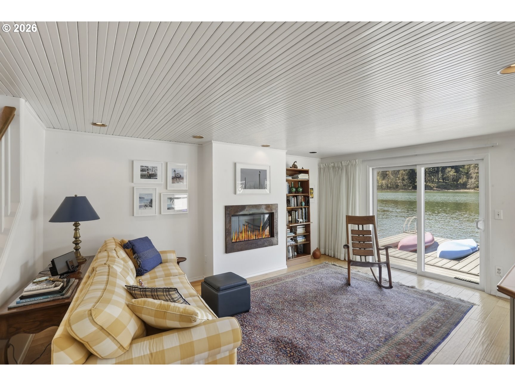 - Tucked along a picturesque stretch of the Willamette River at the historic Portland Rowing Club, this one-of-a-kind floating property delivers the full river lifestyle—complete with three separate floating structures: a beautifully updated main home, a charming ADU tender, & a separate storage shed. The main home features 2 bedrooms & 2 bathrooms, blending comfort with a relaxed coastal feel. The main level showcases wood flooring and a tongue & groove wood ceiling, creating a warm, inviting space. The sunken kitchen is a standout feature, with a charming bay window that frames river views & a gas cooktop that makes cooking a joy. The living room offers recessed lighting, a gas fireplace, & sliding doors that open to the main deck — perfect for taking in the fresh air & scenic views. Upstairs, vaulted ceilings elevate the space, where a light-filled primary bedroom takes center stage. Large windows showcase sweeping river views, while an indoor/outdoor gas fireplace adds a touch of magic year-round. A wet bar and built ins are tucked into the hallway for easy access! Also on the upper level; 3rd bedroom with a mini split & closet, a full bathroom, & access to the upper deck — an ideal spot to unwind, entertain, & take in the ever-changing scenery of the Willamette River. The outdoor spaces are dialed in for river living, with plenty of room to host, a kayak ramp, & a step-down for easy water access. Storage is abundant throughout, & the separate storage structure (complete with electricity) adds even more flexibility. The ADU tender is a true bonus, offering its own kitchen, living area, & bathroom on the main level, plus a loft-style bedroom & upper deck with views of the River! Whether used for guests or rental income, it’s a rare & valuable addition. Located next to Springwater Trail & just a few short blocks from Sellwood proper, this home offers not just a place to live — but a lifestyle rooted in community, nature, & the timeless charm of life on the river.