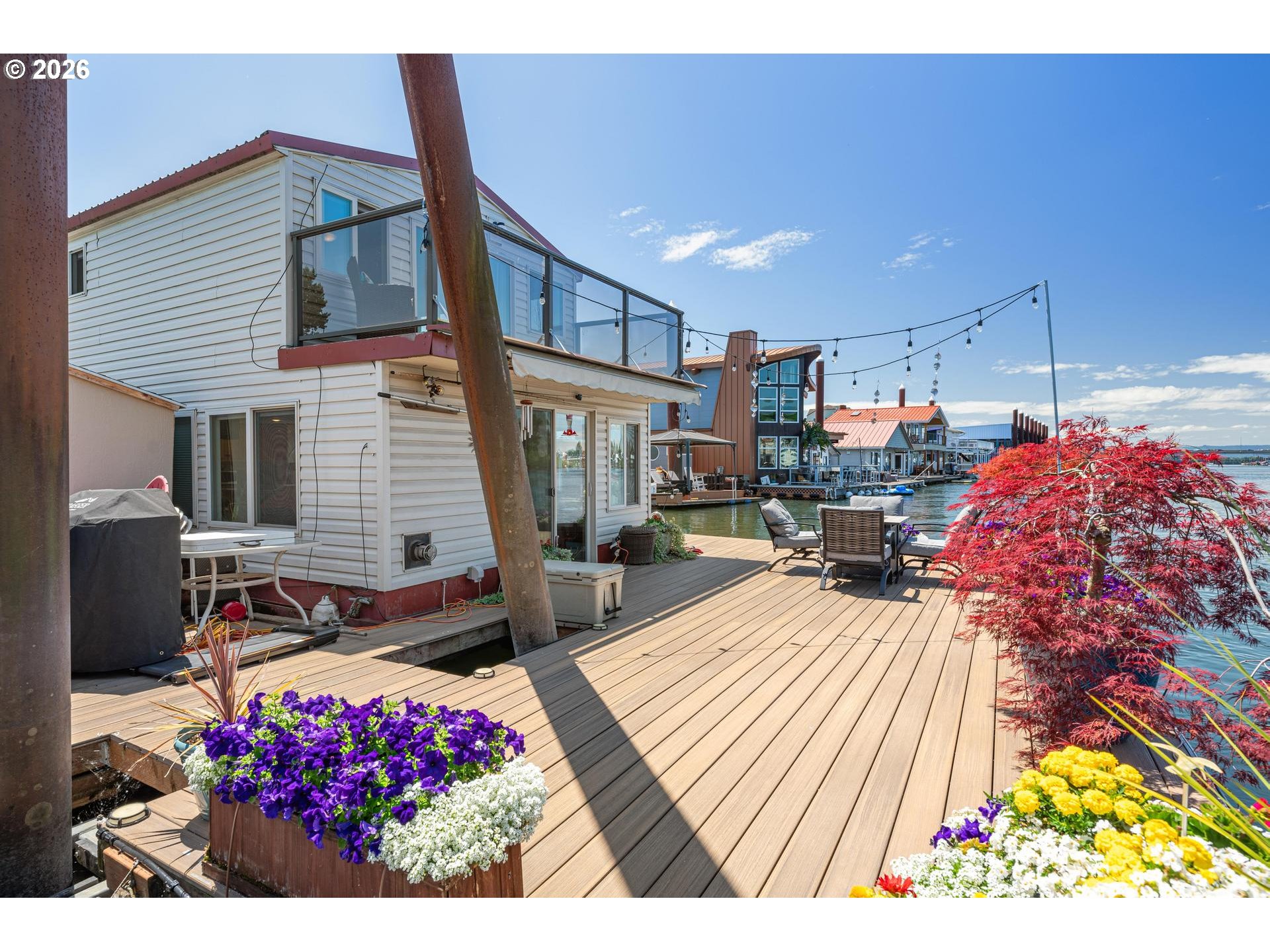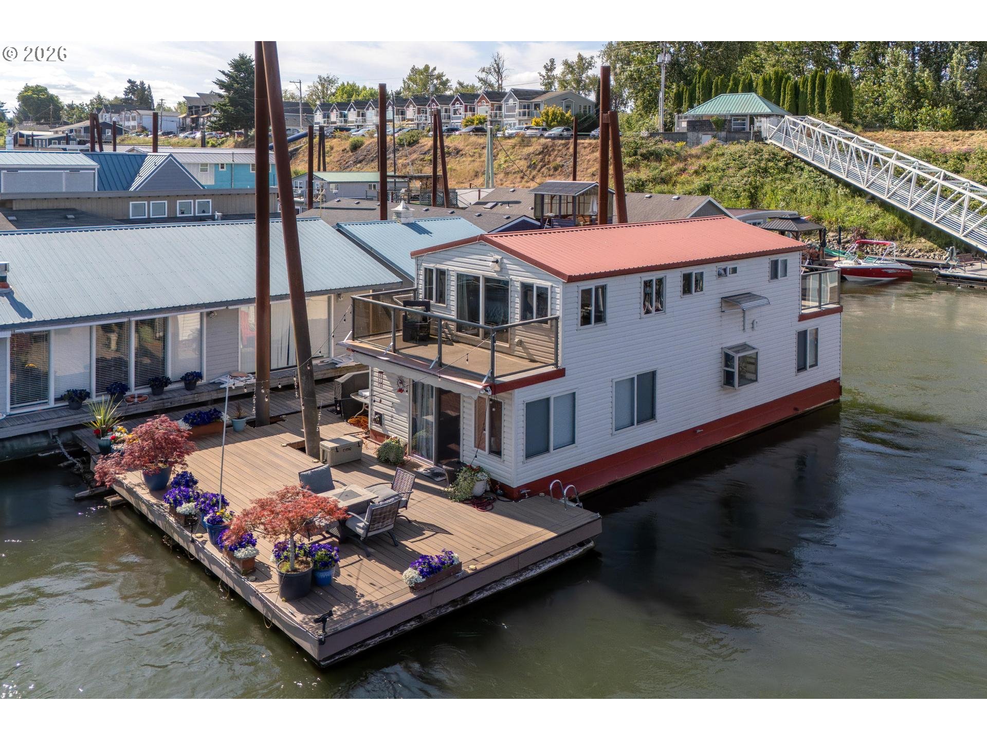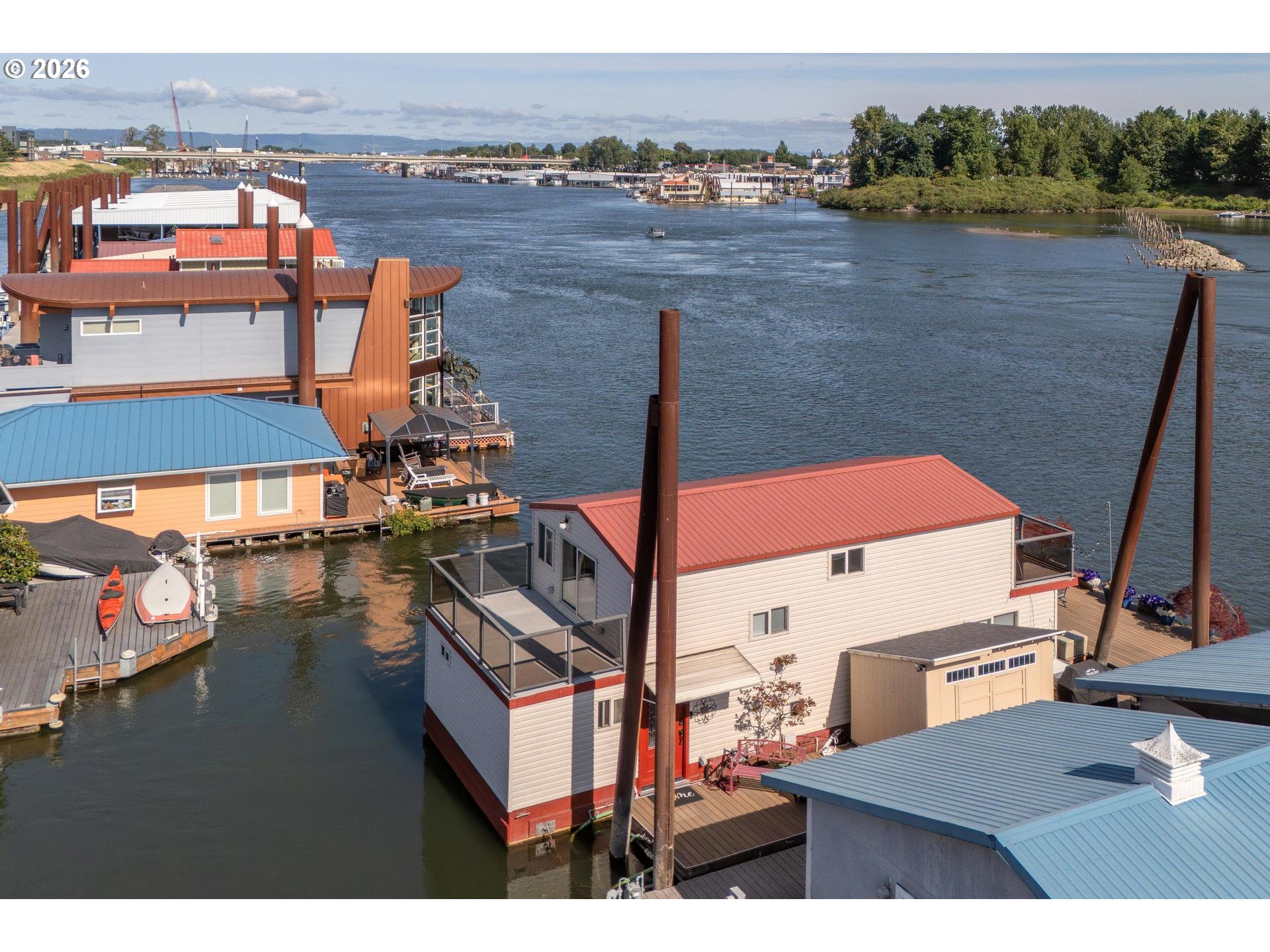 - Exceptional Riverfront Living with Panoramic Views!Experience the magic of the river in this adorable, move-in-ready floating home. Designed for an indoor-outdoor lifestyle, the open-concept great room and kitchen are bathed in natural light, offering stunning water views from every angle. Outdoor Oasis: The expansive main deck features two dedicated boat slips—perfect for summer BBQs and easy access to river adventures. In the winter, enjoy a front-row seat to the iconic Christmas Ship Parade from the comfort of your home!Flexible Living: The primary suite offers a private deck for peaceful retreats, while a versatile bonus room/office provides an inspiring workspace with its own outdoor access. Additional main level bedroom and bath adds room for guests.Prime Location: Just moments from Island Cafe and local amenities. Bring your sense of adventure and start living the dream on the water!