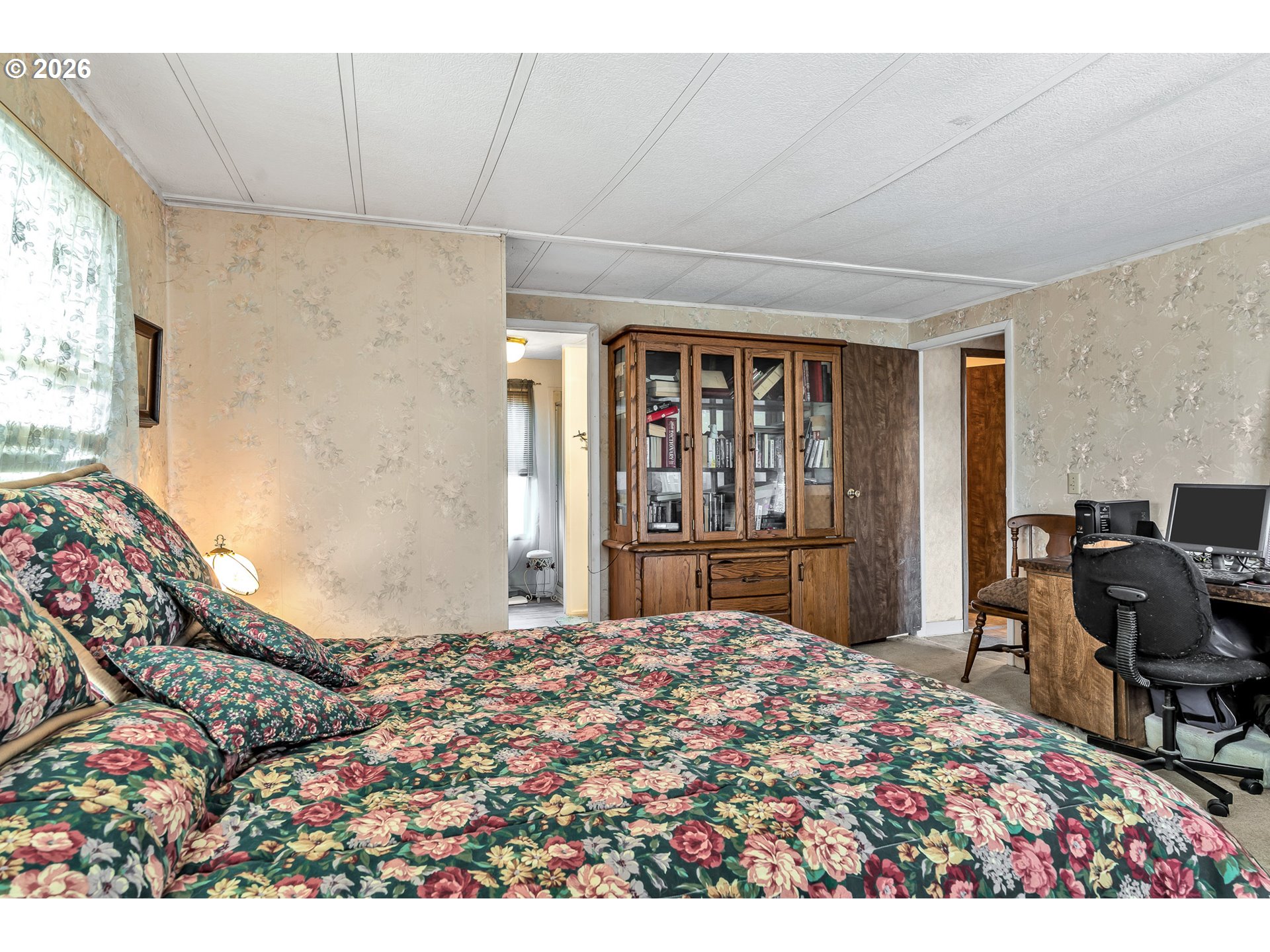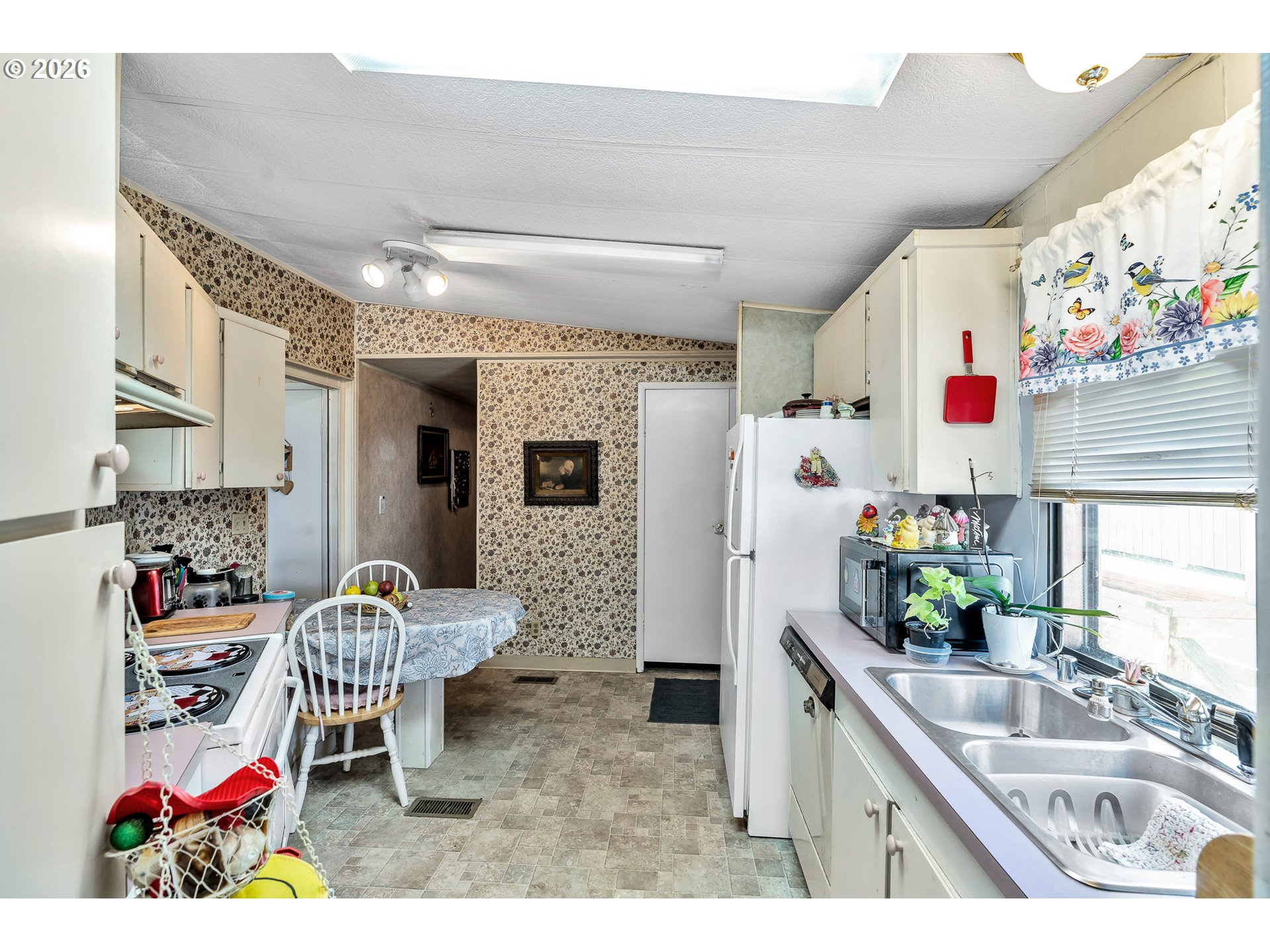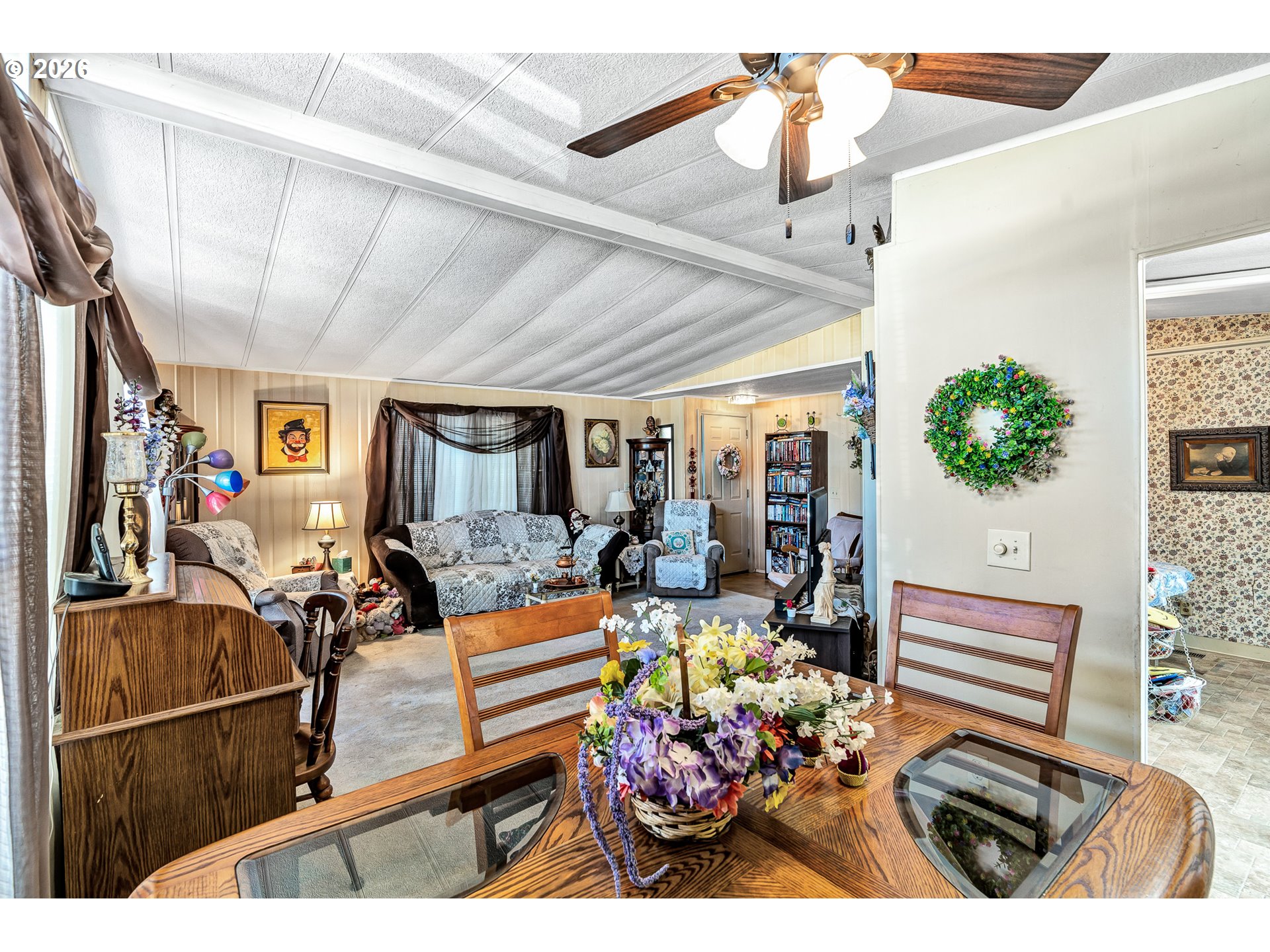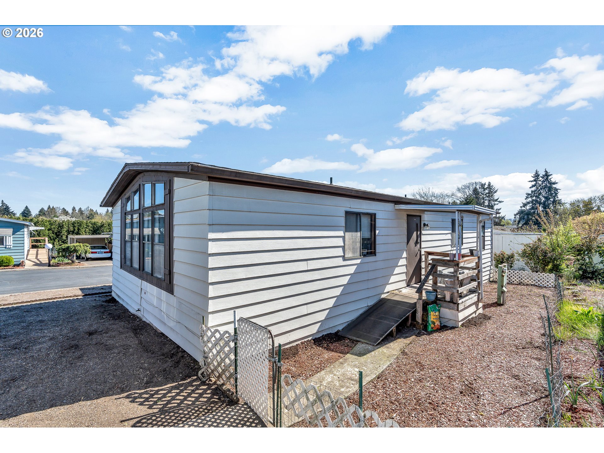 - Welcome to this charming one-level manufactured home in Hillsboro, offering comfort, space, and an abundance of natural light. Featuring 2 bedrooms and 2 bathrooms, this inviting home boasts a bright and airy living room with high vaulted ceilings and oversized windows that fill the space with sunshine, creating an open yet cozy atmosphere.The dining area also enjoys large windows, along with a ceiling fan and built-in features that add both character and functionality. The kitchen is well-equipped with tile flooring, a built-in dishwasher, double sinks, a pantry, and a convenient eating area—perfect for everyday living.Both bedrooms feature wall-to-wall carpet, while the spacious primary suite includes an ensuite bathroom complete with a walk-in shower and a relaxing soaking tub. A dedicated laundry room adds to the home's practicality.Outside, you’ll find two covered carport spaces and a fenced yard area, ideal for outdoor enjoyment. The standout feature is the large, welcoming front porch—perfect for relaxing and taking in the peaceful surroundings.This home offers a wonderful blend of comfort, charm, and functionality in a convenient location.