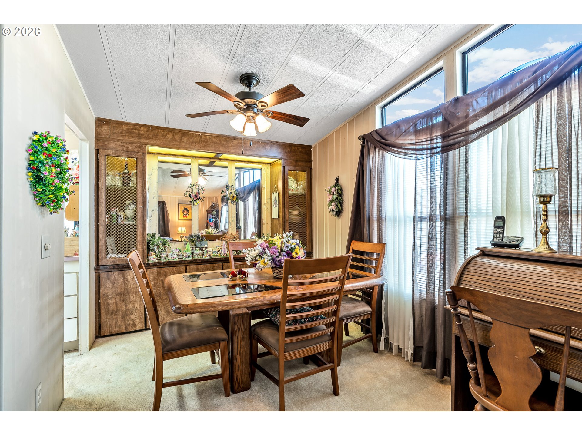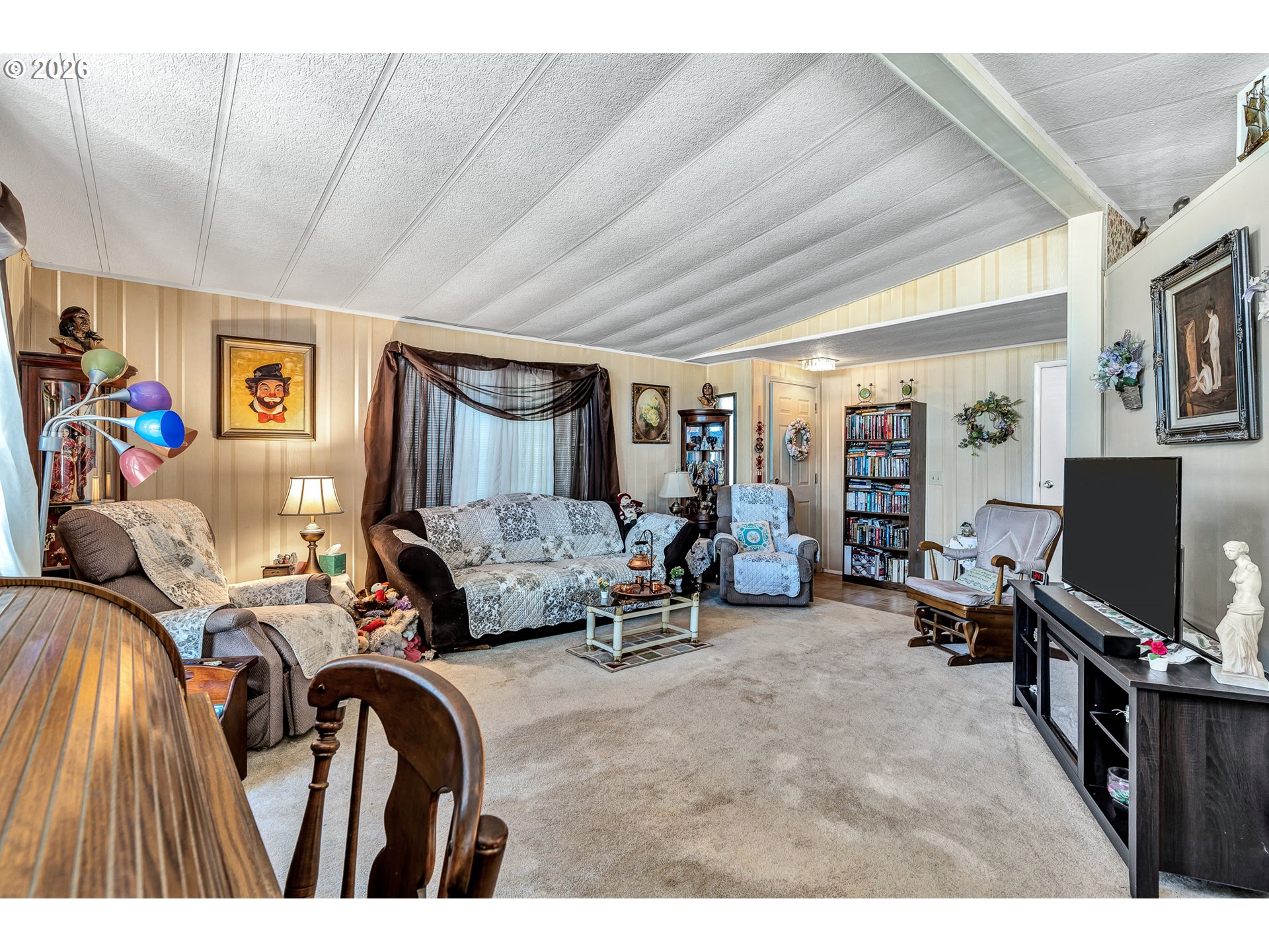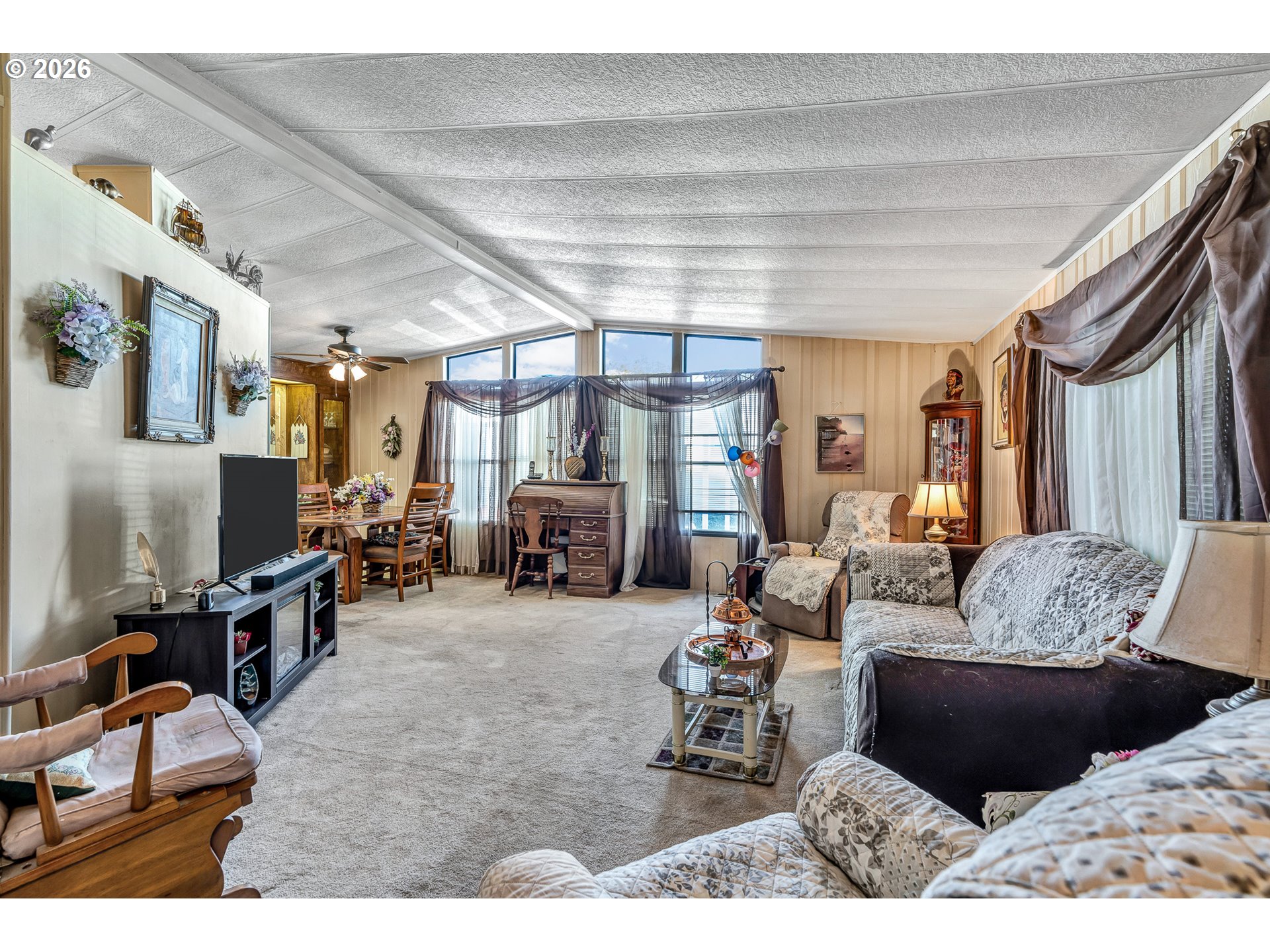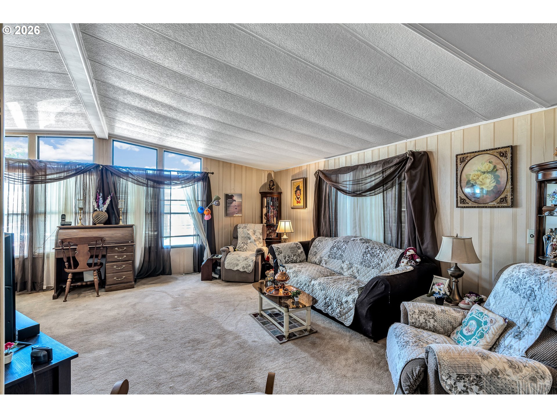 - Welcome to this charming one-level manufactured home in Hillsboro, offering comfort, space, and an abundance of natural light. Featuring 2 bedrooms and 2 bathrooms, this inviting home boasts a bright and airy living room with high vaulted ceilings and oversized windows that fill the space with sunshine, creating an open yet cozy atmosphere.The dining area also enjoys large windows, along with a ceiling fan and built-in features that add both character and functionality. The kitchen is well-equipped with tile flooring, a built-in dishwasher, double sinks, a pantry, and a convenient eating area—perfect for everyday living.Both bedrooms feature wall-to-wall carpet, while the spacious primary suite includes an ensuite bathroom complete with a walk-in shower and a relaxing soaking tub. A dedicated laundry room adds to the home's practicality.Outside, you’ll find two covered carport spaces and a fenced yard area, ideal for outdoor enjoyment. The standout feature is the large, welcoming front porch—perfect for relaxing and taking in the peaceful surroundings.This home offers a wonderful blend of comfort, charm, and functionality in a convenient location.