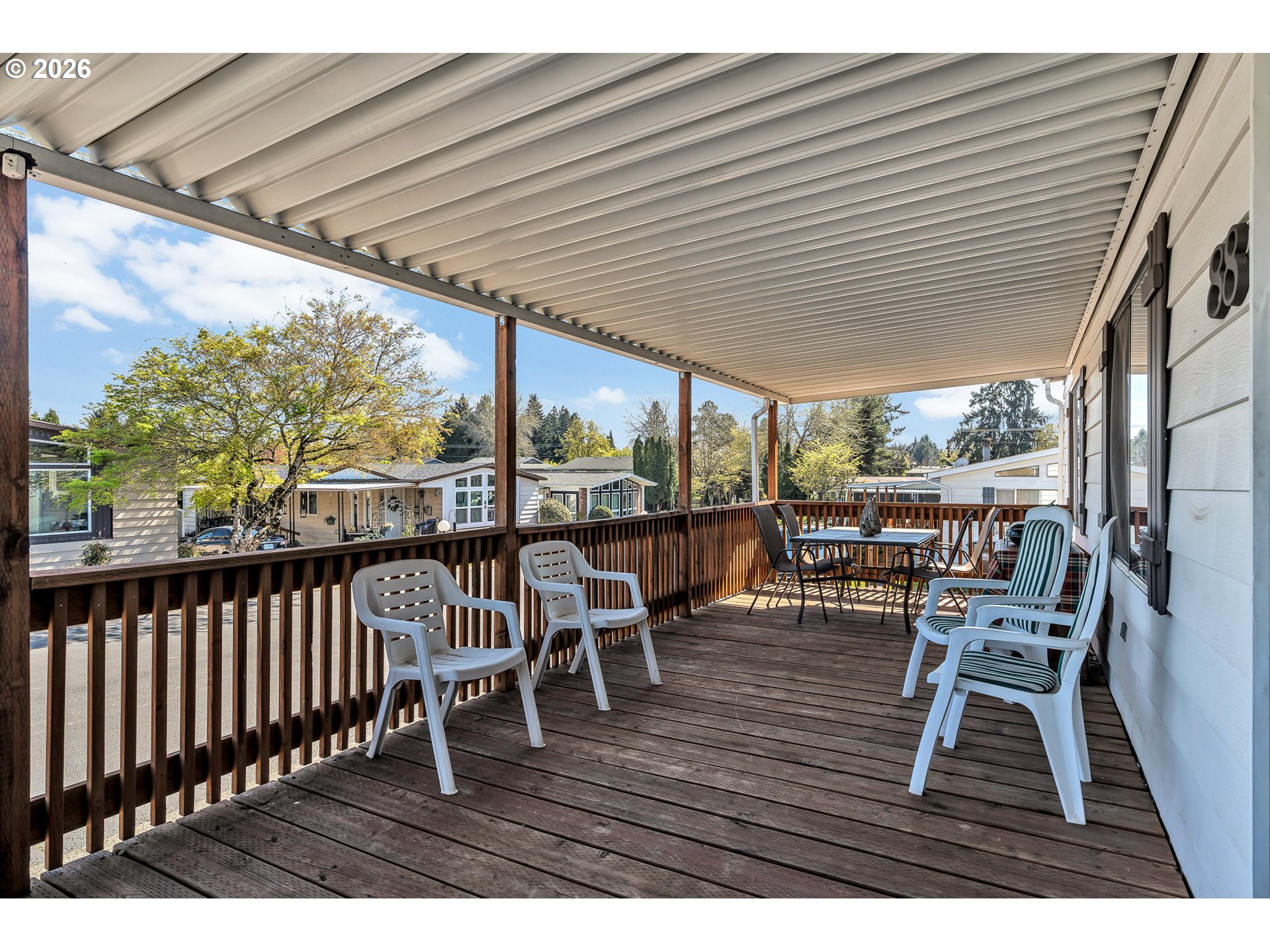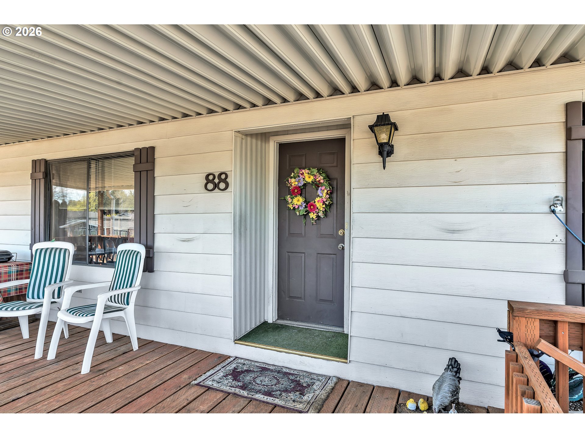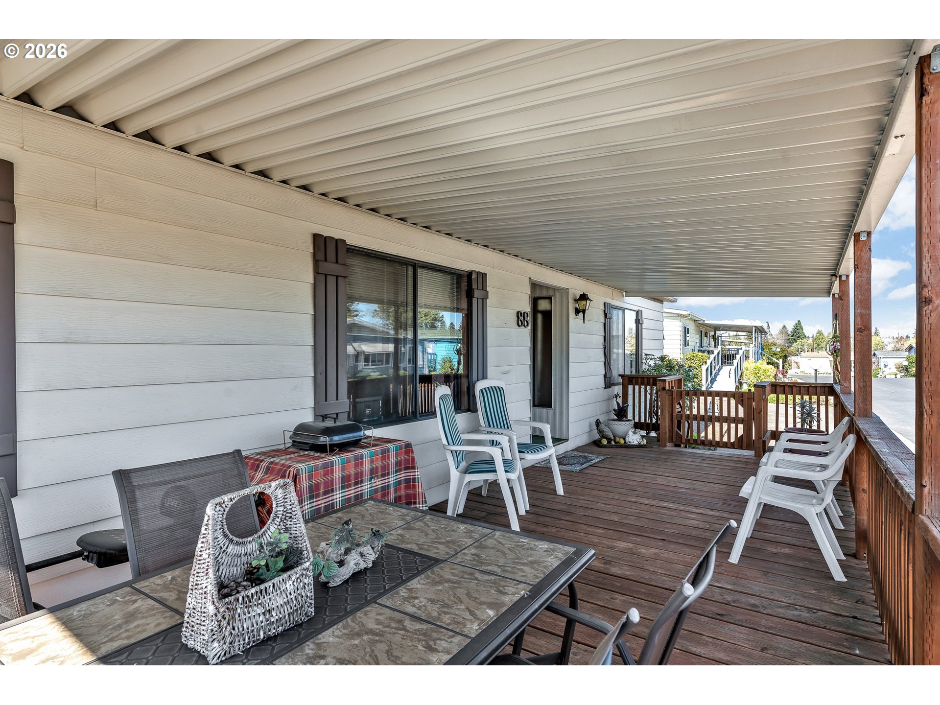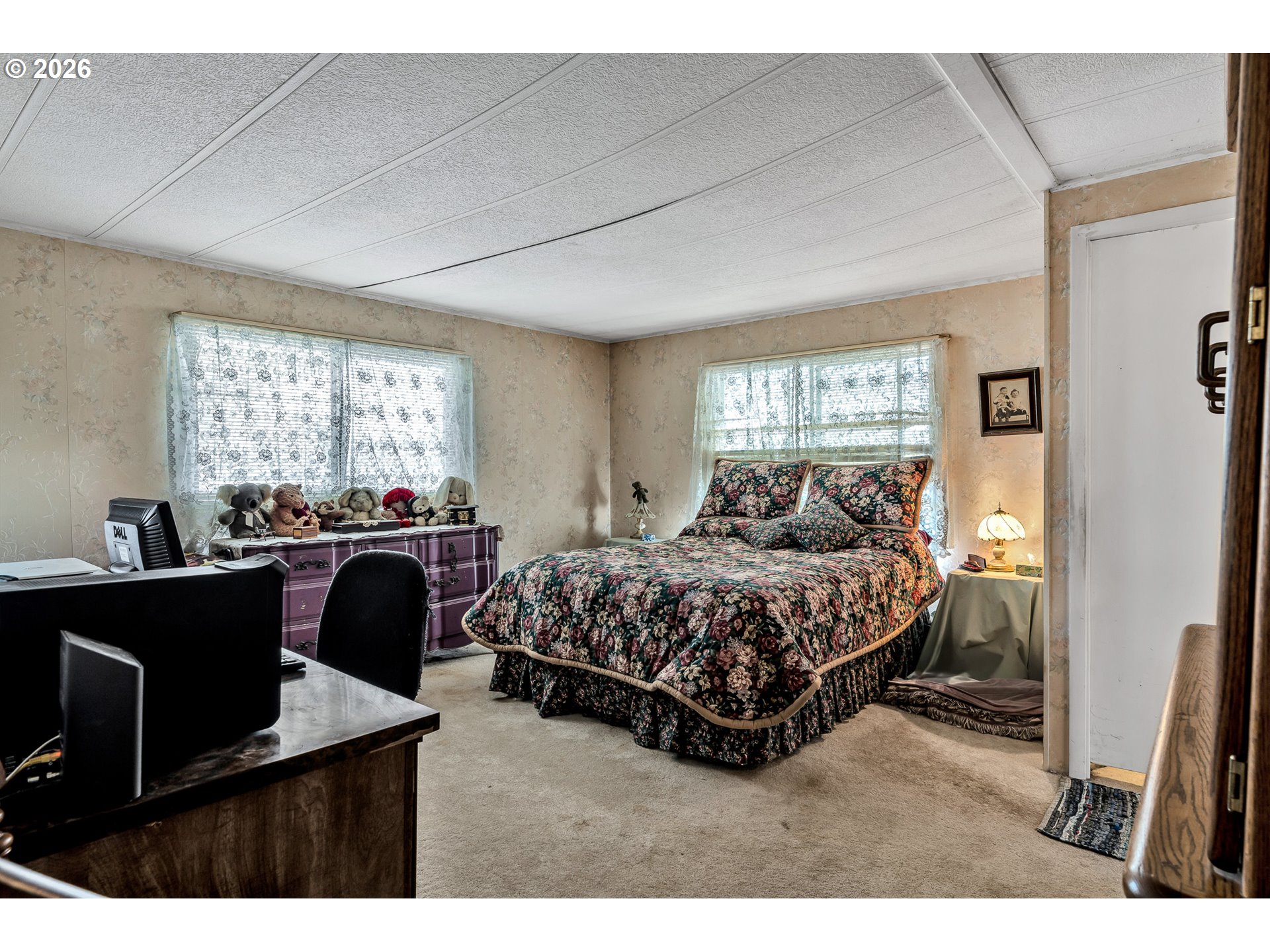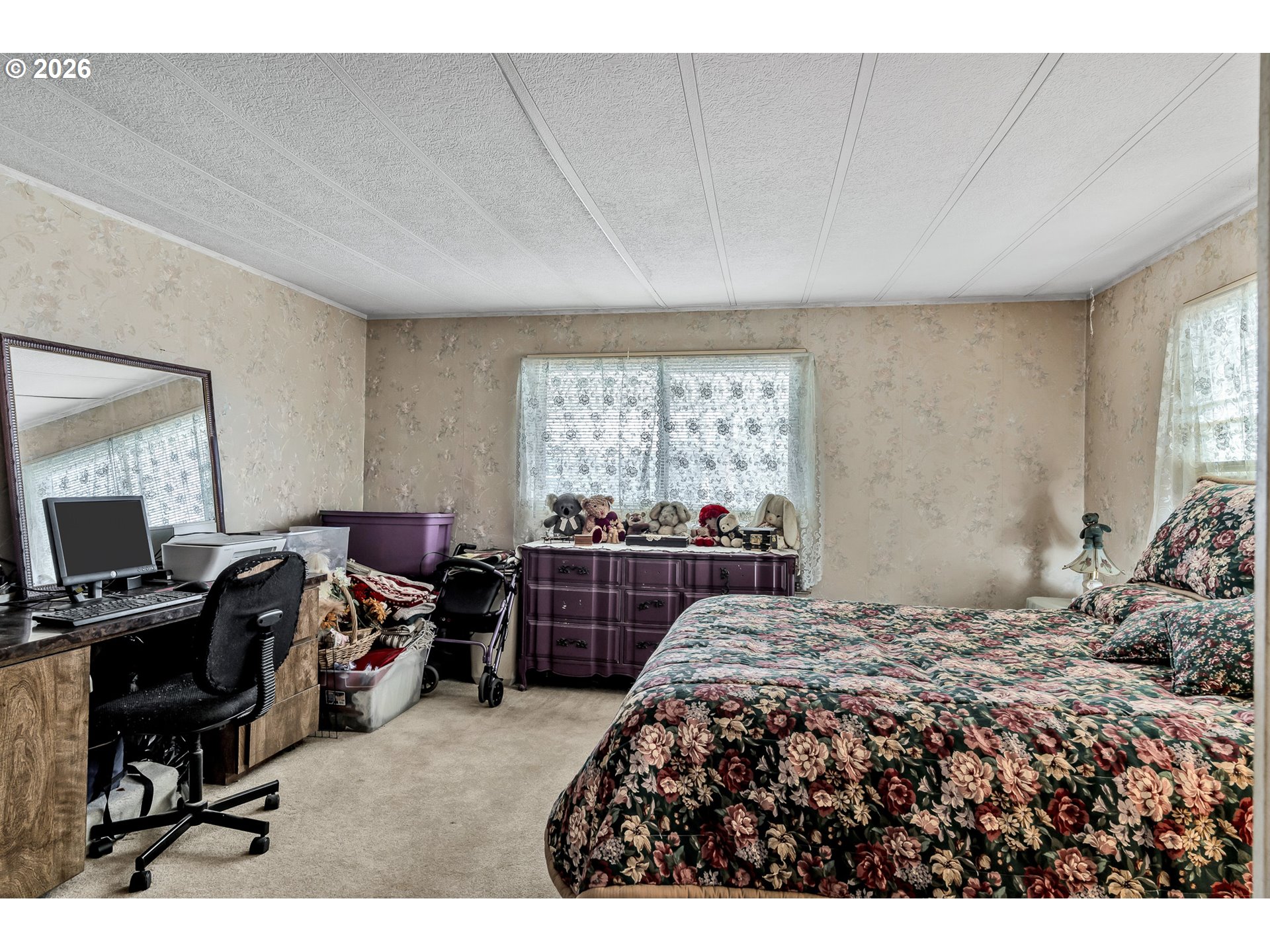 - Welcome to this charming one-level manufactured home in Hillsboro, offering comfort, space, and an abundance of natural light. Featuring 2 bedrooms and 2 bathrooms, this inviting home boasts a bright and airy living room with high vaulted ceilings and oversized windows that fill the space with sunshine, creating an open yet cozy atmosphere.The dining area also enjoys large windows, along with a ceiling fan and built-in features that add both character and functionality. The kitchen is well-equipped with tile flooring, a built-in dishwasher, double sinks, a pantry, and a convenient eating area—perfect for everyday living.Both bedrooms feature wall-to-wall carpet, while the spacious primary suite includes an ensuite bathroom complete with a walk-in shower and a relaxing soaking tub. A dedicated laundry room adds to the home's practicality.Outside, you’ll find two covered carport spaces and a fenced yard area, ideal for outdoor enjoyment. The standout feature is the large, welcoming front porch—perfect for relaxing and taking in the peaceful surroundings.This home offers a wonderful blend of comfort, charm, and functionality in a convenient location.