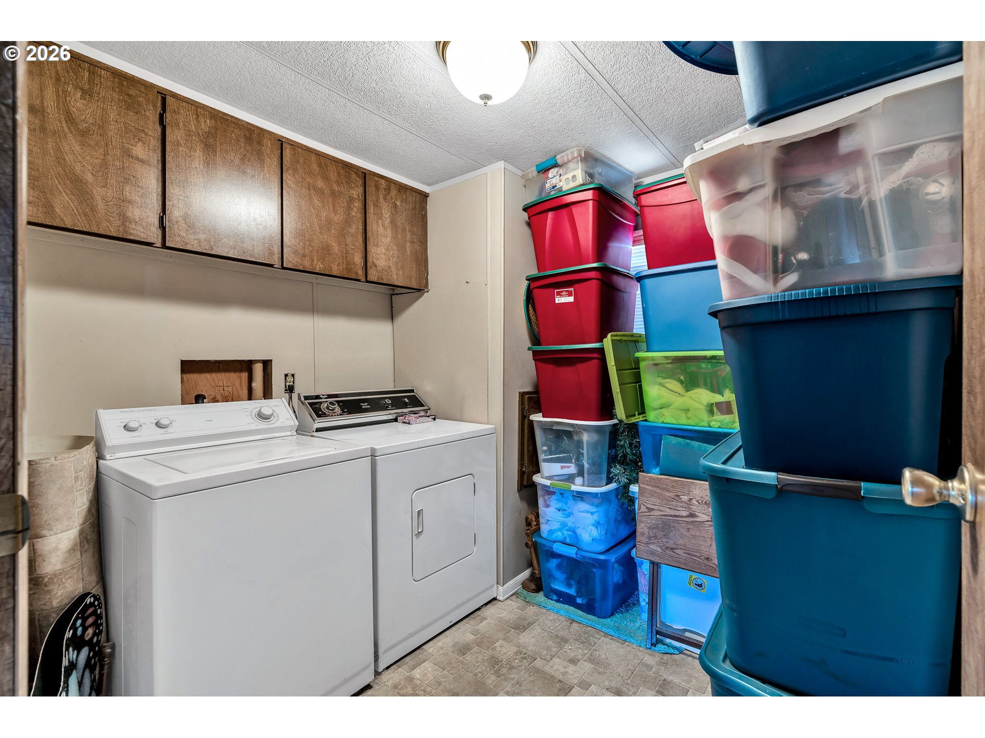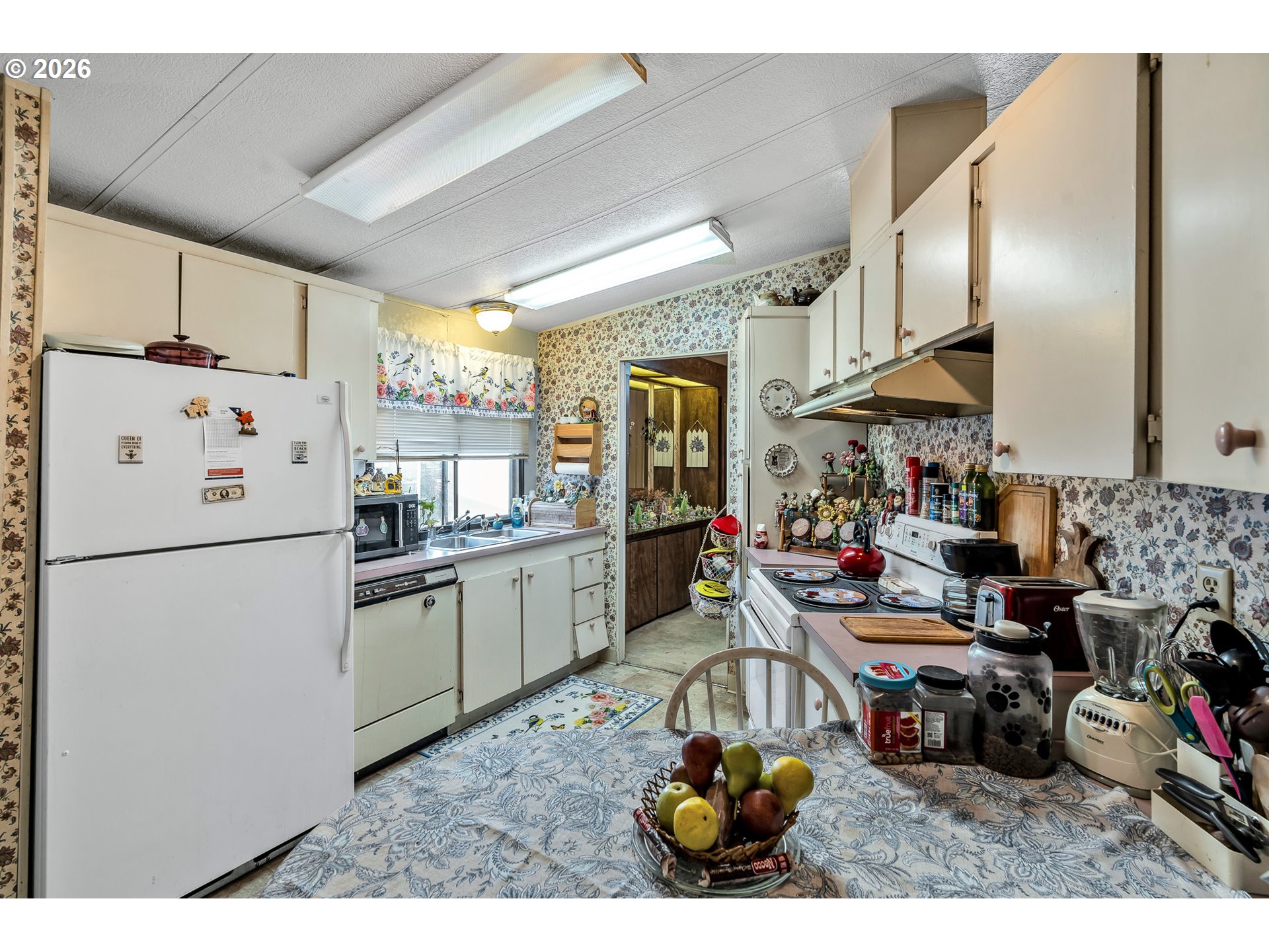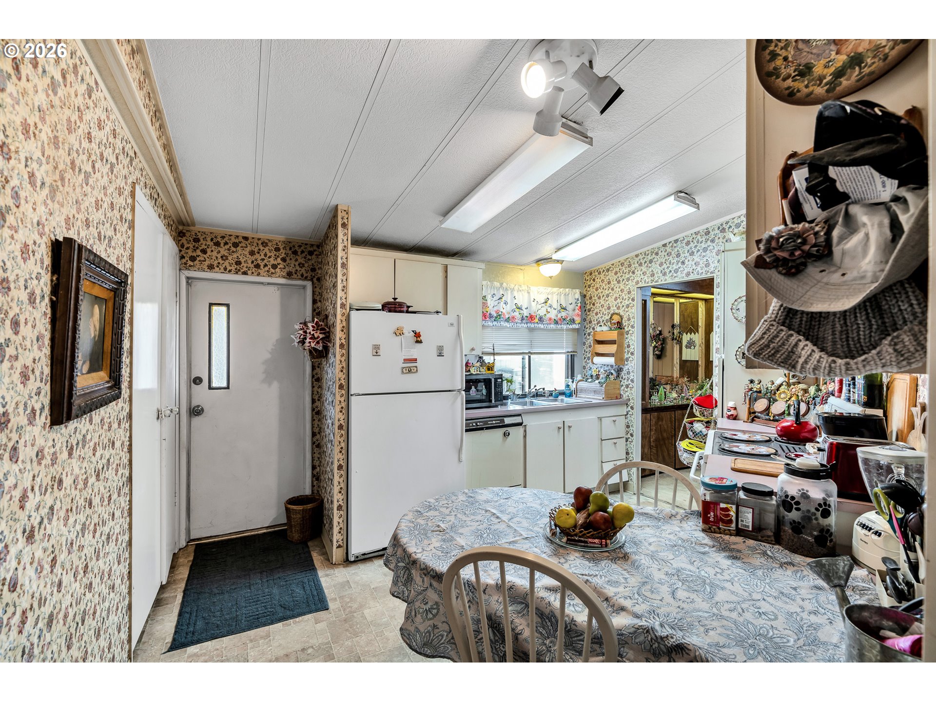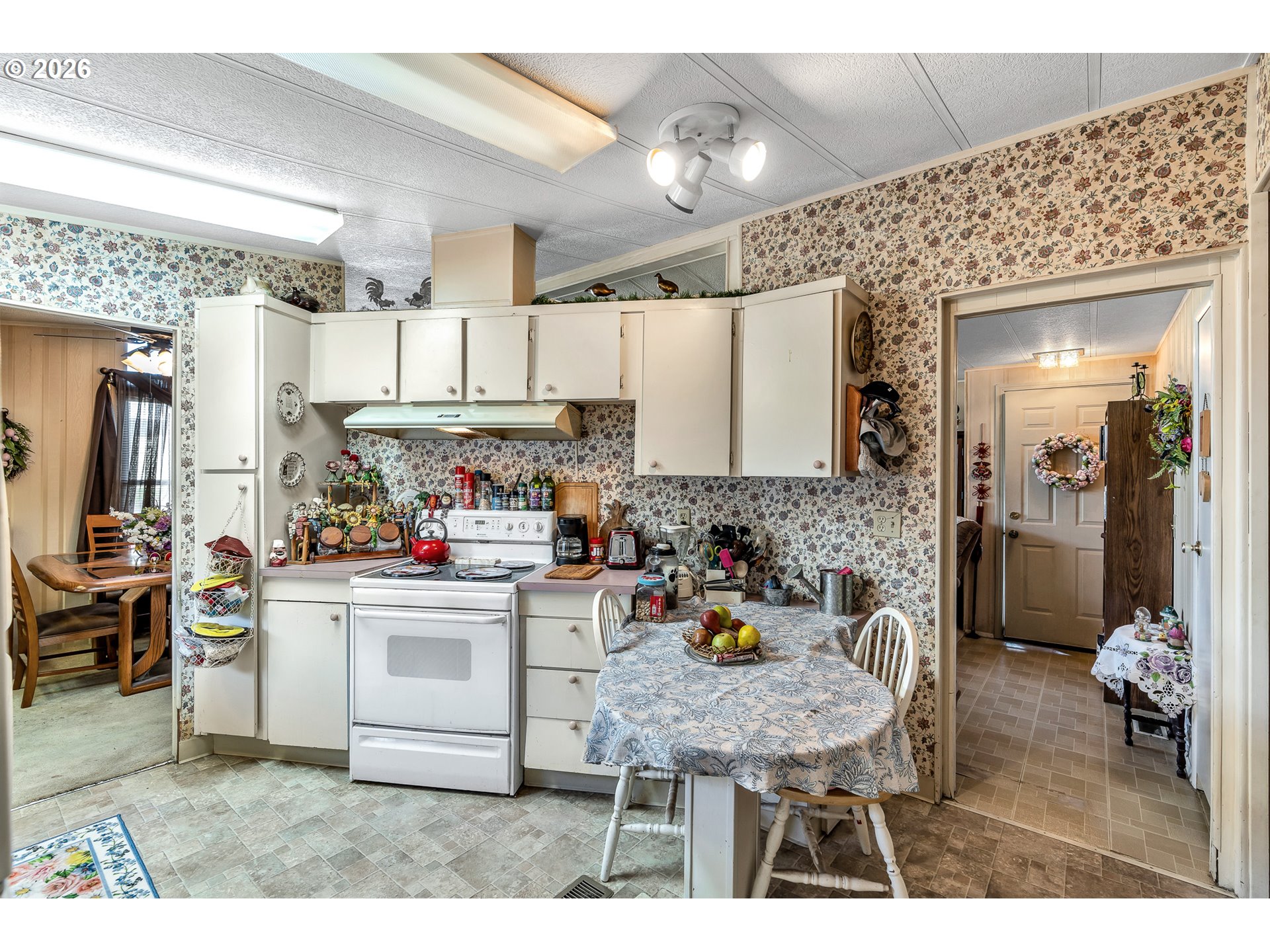 - Welcome to this charming one-level manufactured home in Hillsboro, offering comfort, space, and an abundance of natural light. Featuring 2 bedrooms and 2 bathrooms, this inviting home boasts a bright and airy living room with high vaulted ceilings and oversized windows that fill the space with sunshine, creating an open yet cozy atmosphere.The dining area also enjoys large windows, along with a ceiling fan and built-in features that add both character and functionality. The kitchen is well-equipped with tile flooring, a built-in dishwasher, double sinks, a pantry, and a convenient eating area—perfect for everyday living.Both bedrooms feature wall-to-wall carpet, while the spacious primary suite includes an ensuite bathroom complete with a walk-in shower and a relaxing soaking tub. A dedicated laundry room adds to the home's practicality.Outside, you’ll find two covered carport spaces and a fenced yard area, ideal for outdoor enjoyment. The standout feature is the large, welcoming front porch—perfect for relaxing and taking in the peaceful surroundings.This home offers a wonderful blend of comfort, charm, and functionality in a convenient location.