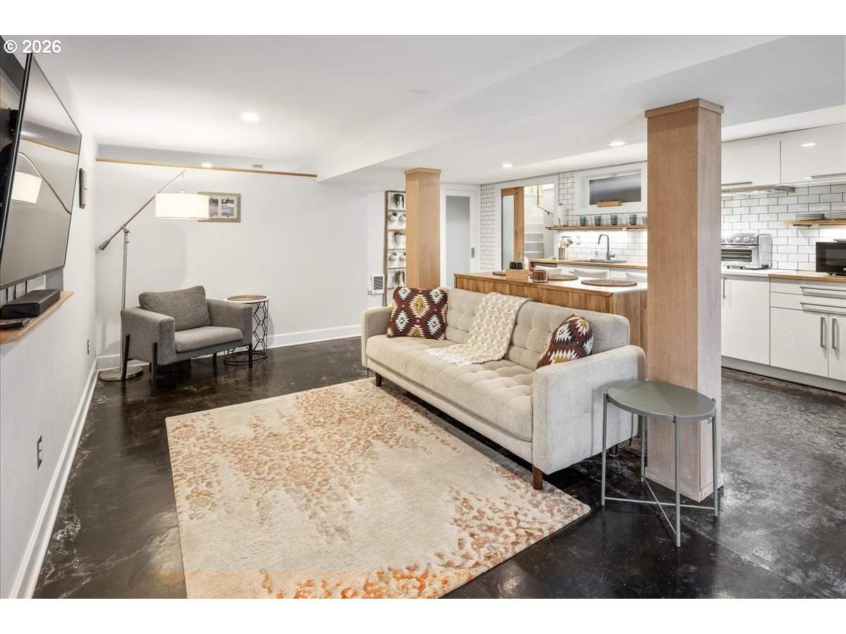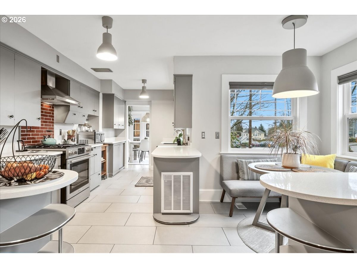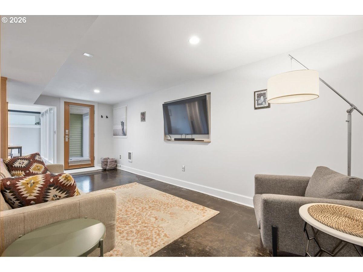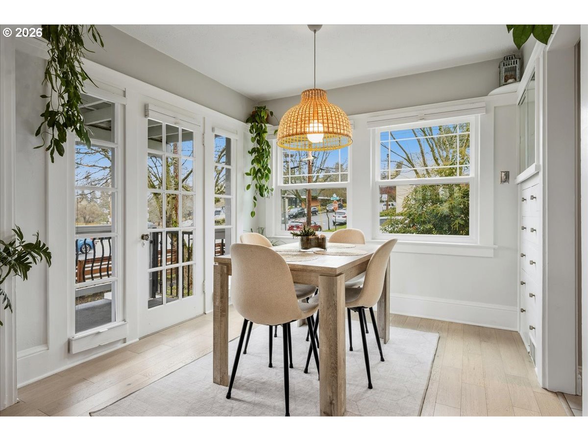- This Lovingly Mt. Tabor home has been transformed over the past two decades, the home blends timeless character with modern comfort and thoughtful sustainability. Bathed in natural light from abundant windows — including an entire front wall of glass — the interior feels bright, open, and welcoming, with an easy connection to the outdoors. The updated kitchen features quartz countertops, upgraded appliances, charming mid-century cabinetry, and a delightful east-facing breakfast nook — perfect for morning coffee. A cute, convenient main-level half bath sits between the kitchen and private backyard, enhancing seamless indoor-outdoor living. Designer flooring, refreshed fireplace tile, fresh paint, and updated lighting elevate the main level. The second bedroom features glass French doors making it a lovely bedroom or a bright home office. The primary suite offers a peaceful retreat with an updated bath, walk-in closet, and tropical hardwood deck. The flexible lower level includes 1 bedroom, family/living room, kitchenette, dining area, laundry, and an awesome bathroom — ideal for guests, extended living, or income potential. Outside, thoughtfully designed landscaping creates a private sanctuary with raised beds, rock walls, flagstone pathways, pergola, and automated greenhouse — supported by comprehensive drainage and rainwater systems. Extensive system upgrades — including roof, siding, plumbing, electrical, windows, high-efficiency heating and cooling, sump pump with backup, earthquake shutoff valve, and smart features — provide lasting confidence. All of this character and peace of mind just minutes from Mt. Tabor Park, neighborhood restaurants, and local shops! [Home Energy Score = 5. HES Report at https://rpt.greenbuildingregistry.com/hes/OR10244702]
