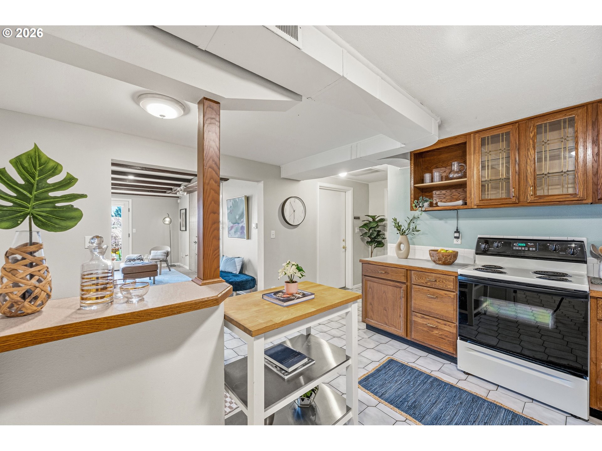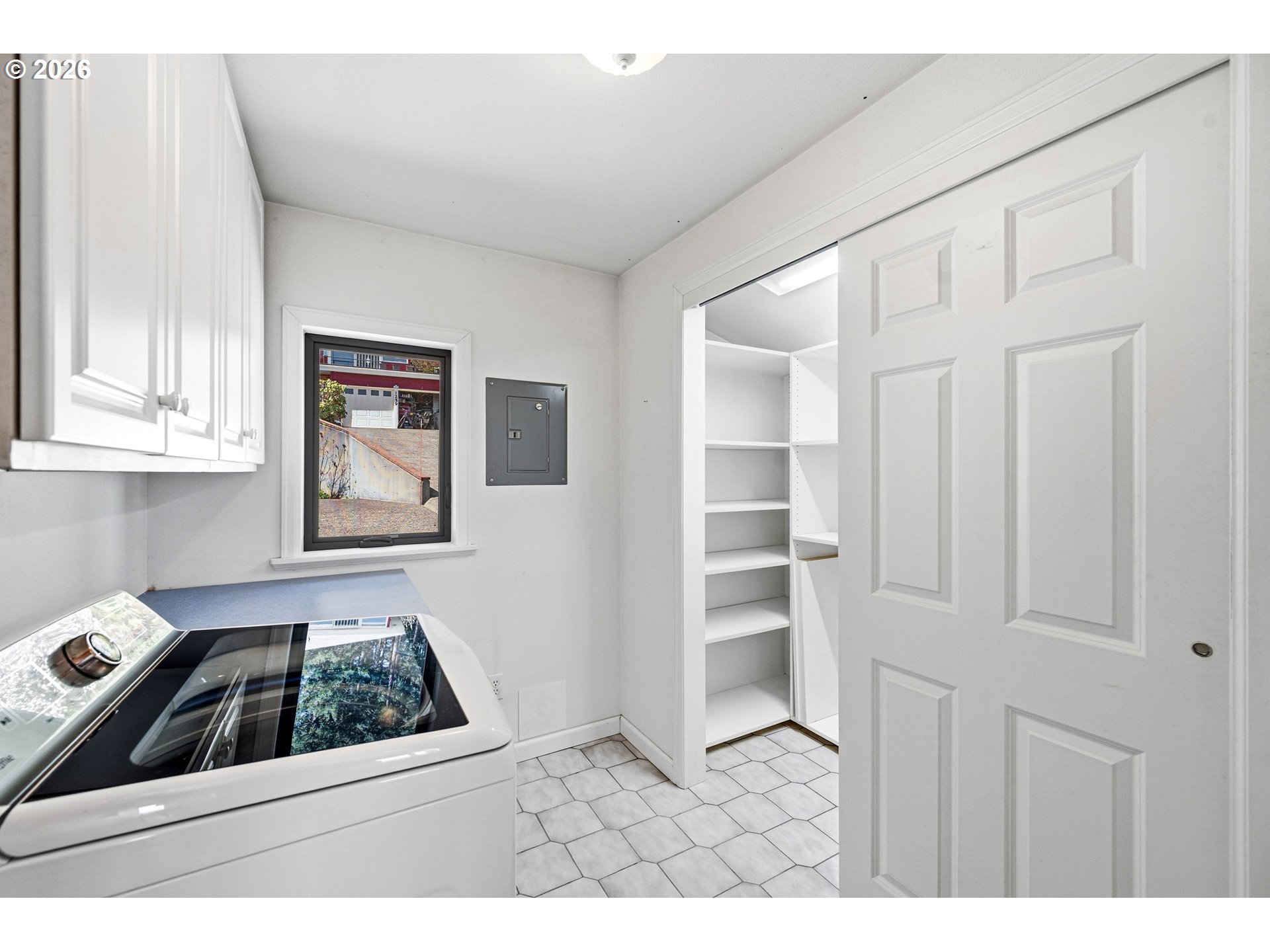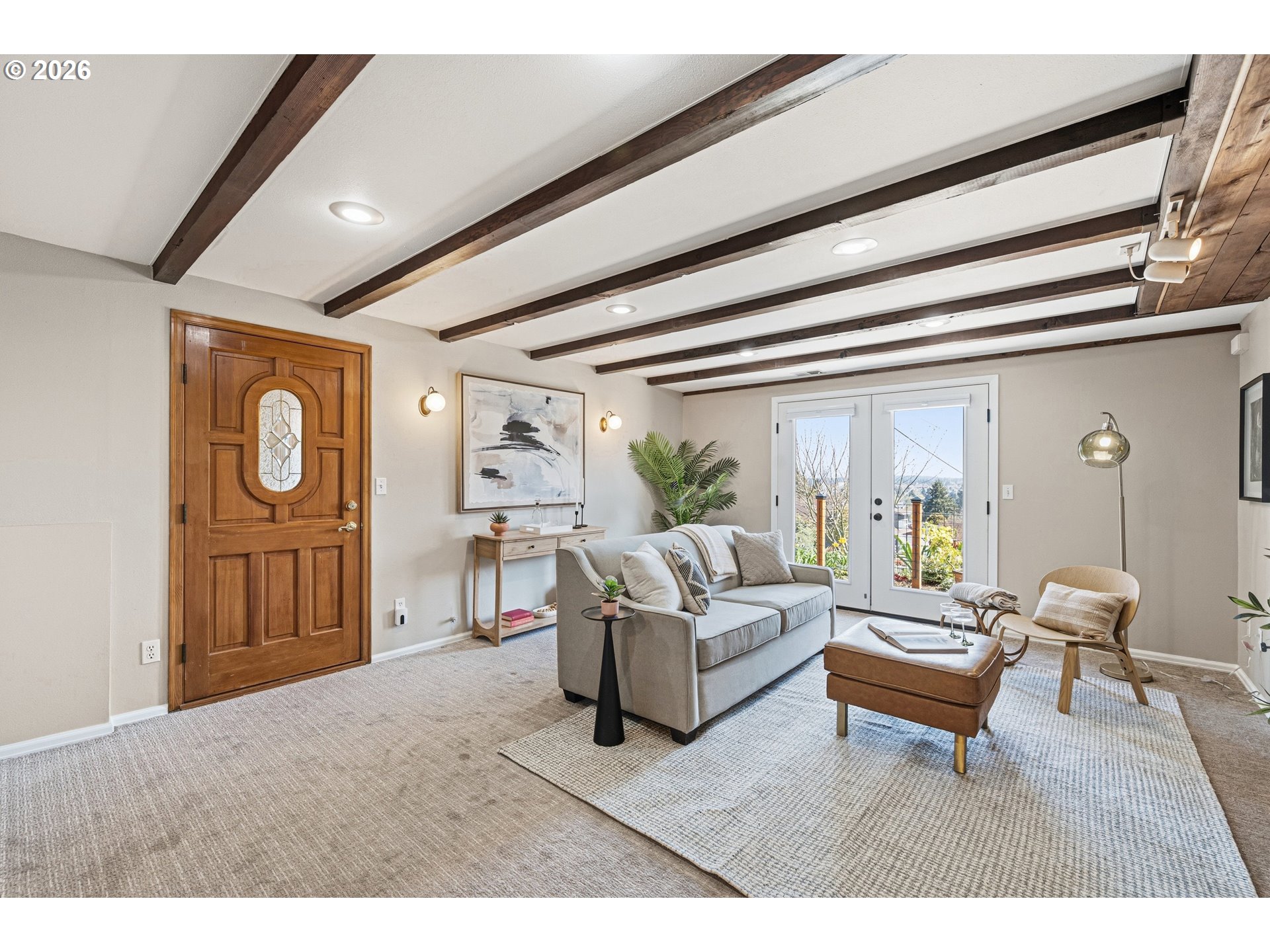 - Stunning Mid-Century Modern perched high on Mt. Tabor with views for days — Mt. Hood, Mt. St. Helens, Prune Hill, and beyond, all visible from the living room, office, primary bedroom, & covered deck. Your morning run (walk, stroll, roll) to the Mt. Tabor summit starts one house away. Open floor plan with gas fireplaces, and a primary on main complete with en suite bathroom. Refreshed kitchen with updated appliances, newer windows, siding, solar panels, and electric water heater. Single-car tuck-under garage, plus a spacious 2+ car detached garage with direct back entry. Daylight basement apartment features its own gas fireplace, French doors, and garden views. Fruitful raspberries along south side of property. Steps to Mt. Tabor Park, Coquine, Montavilla shops and restaurants, transit, and PDX. [Home Energy Score = 4. HES Report at https://rpt.greenbuildingregistry.com/hes/OR10000447]