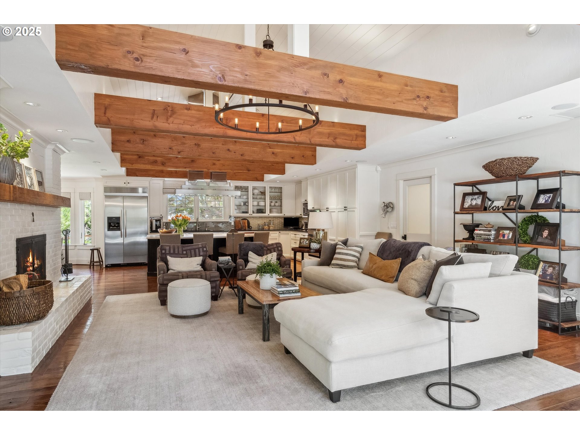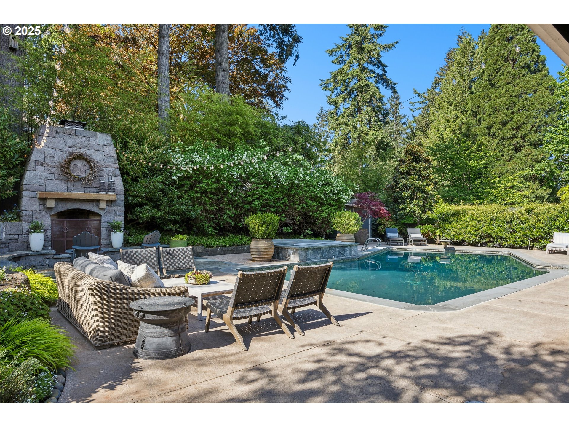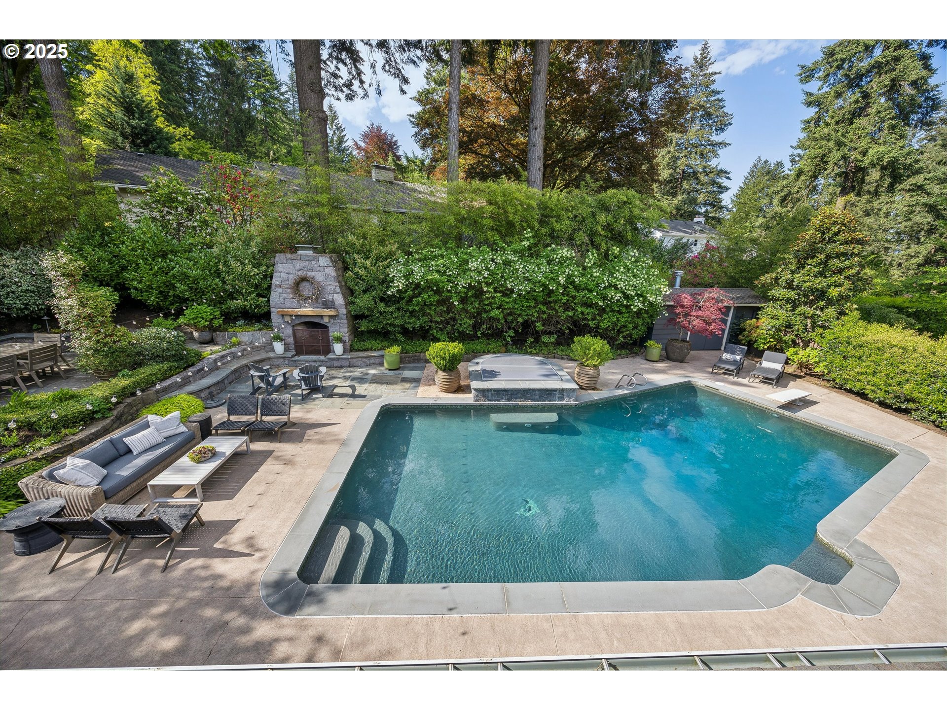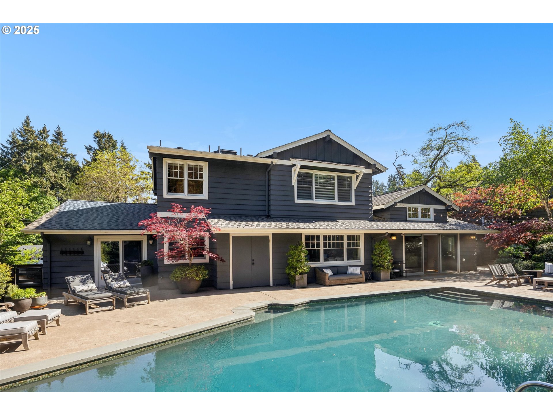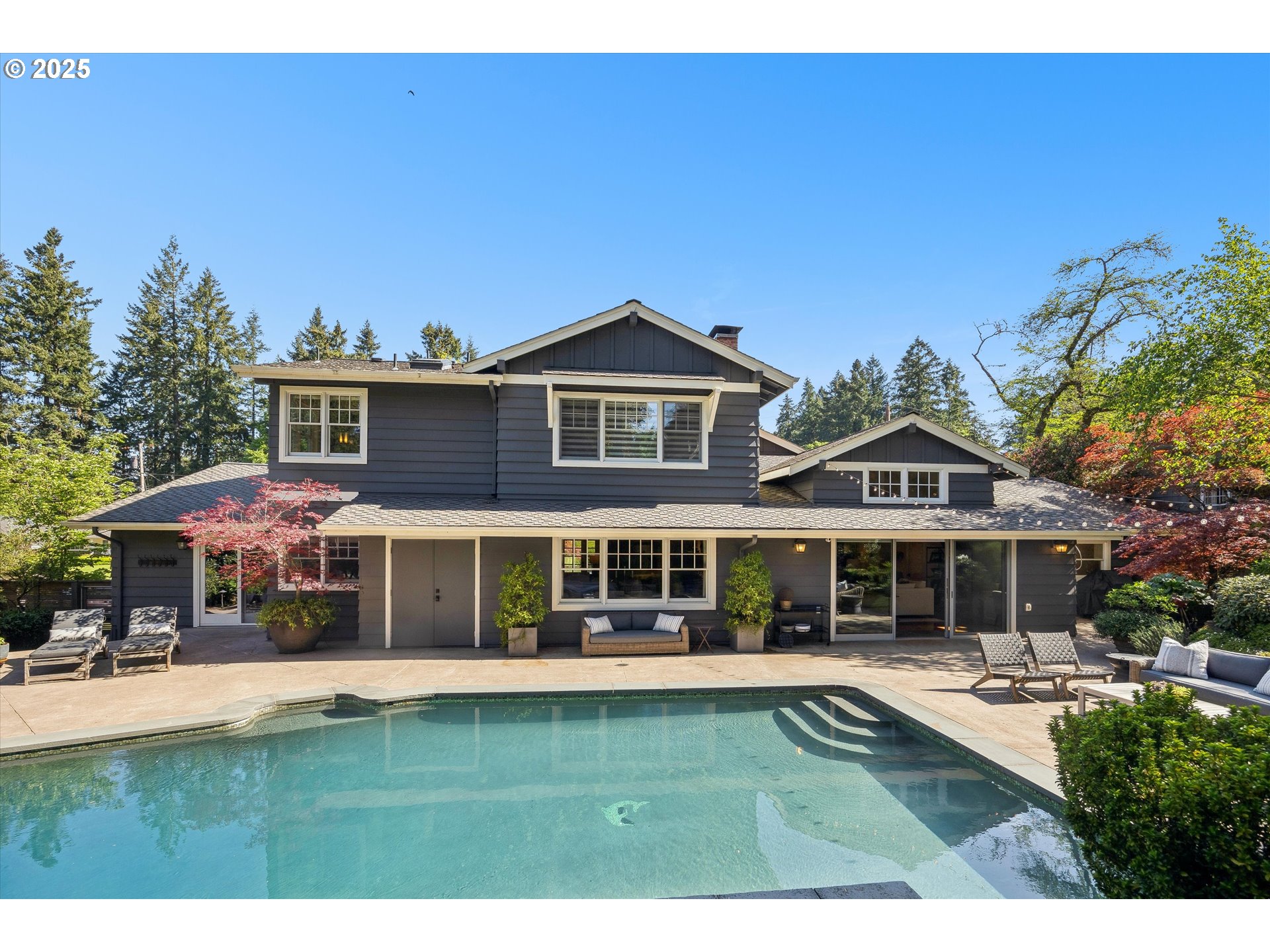 - Exquisite state-of-the-art remodel on desirable Dellwood street with lake easement! This stunning traditional 4-bedroom, 4 bath home blends timeless character with modern updates. Situated on beautifully landscaped grounds complete with a pool and hot tub, outdoor fireplace, and elevated lounge space, this is a true entertainer’s dream! Indoor living mirrors the home’s exceptional outdoor appeal, with vaulted ceilings and exposed wood beams in the family room and kitchen. Quartz countertops, stainless steel appliances, double ovens, a fireplace, and a sunlit breakfast nook framed by bay windows complete the space. The main level also features a living and dining room with fireplace, three bedrooms, including one with a private en-suite and two that share a full bath. Upstairs, the spacious primary suite is a serene retreat with vaulted wood-beamed ceilings, peaceful views of the backyard, and a spa-like bathroom with tub and heated tile floors. A private laundry area and direct access to a separate upstairs office—ideal for remote work or creative pursuits—enhance the suite’s comfort and functionality. Off the garage, a well-designed mudroom, additional full bath, and secondary laundry room add everyday convenience. Don’t miss the wine fridge and extra built-in refrigerators, perfect for effortless entertaining. While the backyard serves as a true outdoor retreat, the home also includes deeded rights to the Palisades easement for lake access. With a covered front porch and lush landscaping, enjoy indoor-outdoor Lake Oswego living at its best!