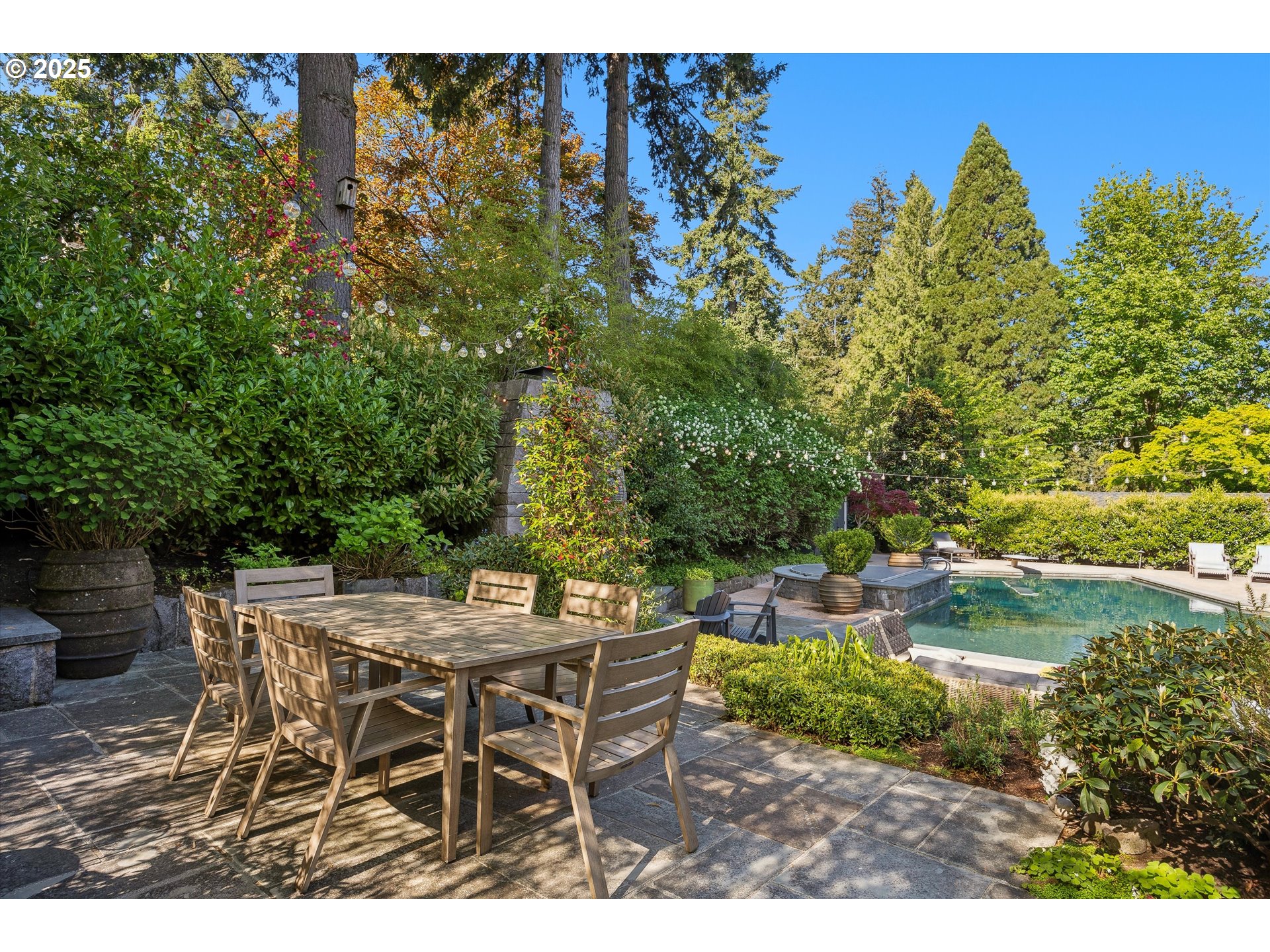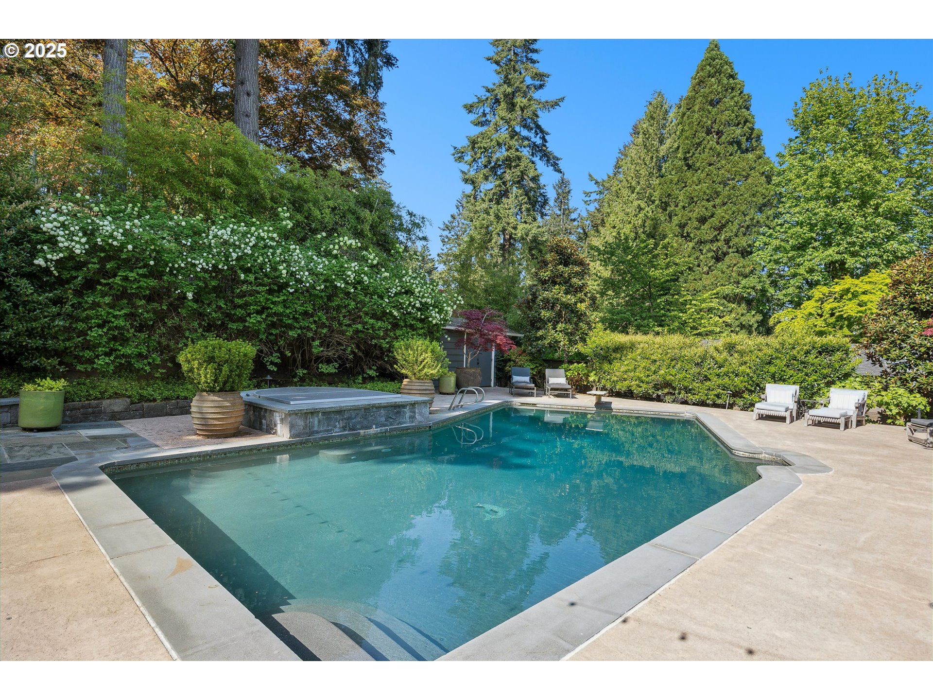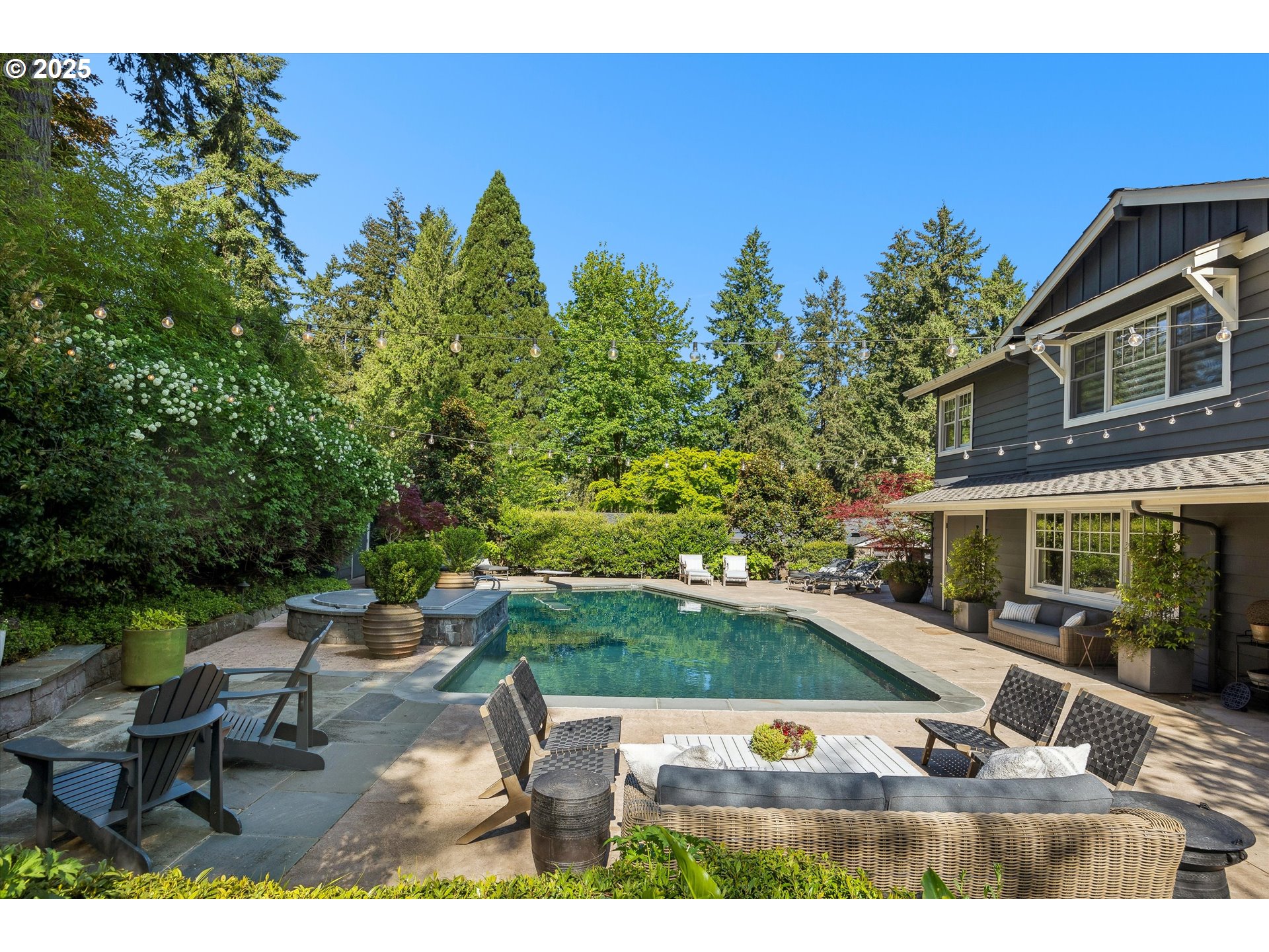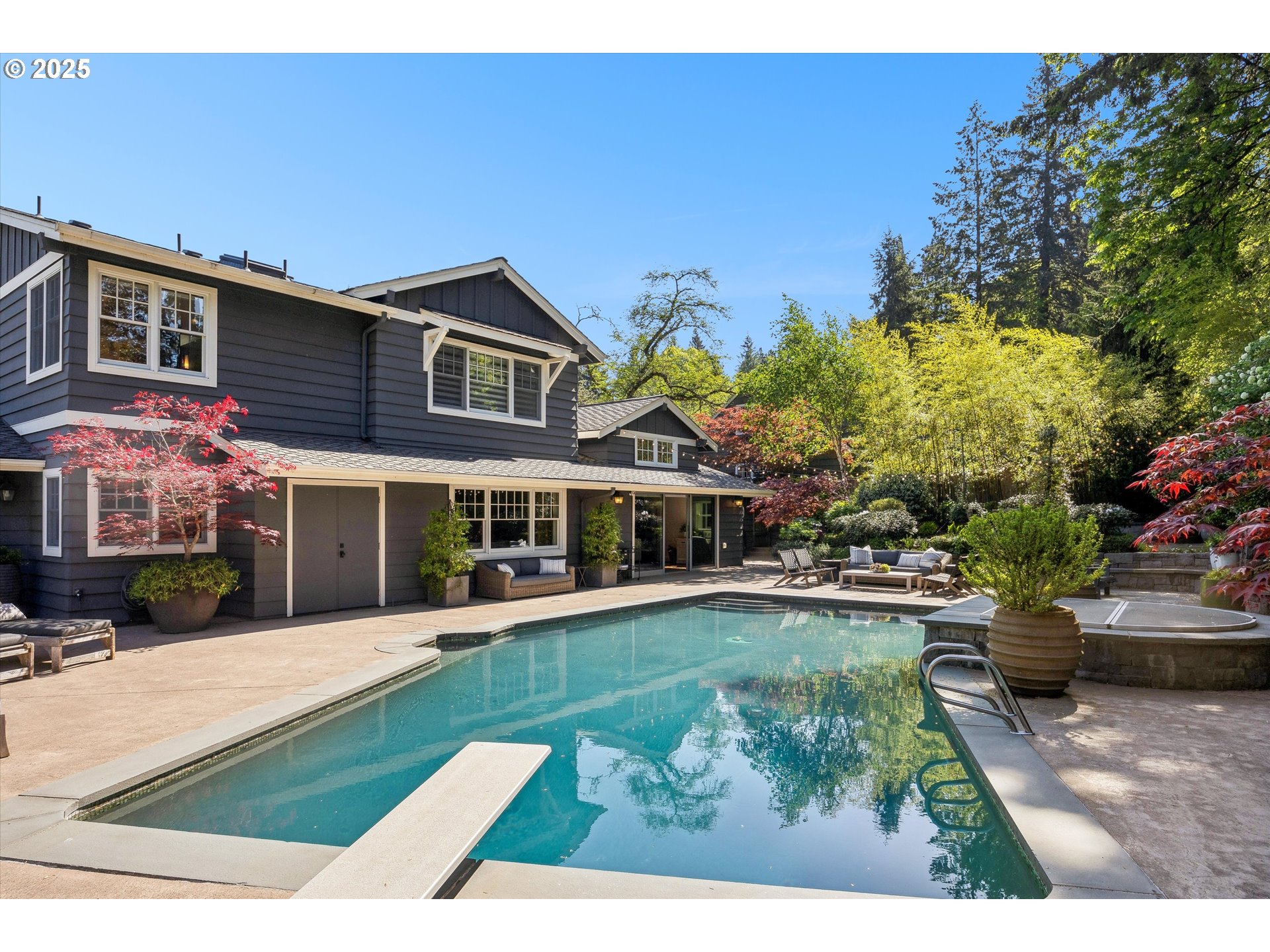 - Exquisite state-of-the-art remodel on desirable Dellwood street with lake easement! This stunning traditional 4-bedroom, 4 bath home blends timeless character with modern updates. Situated on beautifully landscaped grounds complete with a pool and hot tub, outdoor fireplace, and elevated lounge space, this is a true entertainer’s dream! Indoor living mirrors the home’s exceptional outdoor appeal, with vaulted ceilings and exposed wood beams in the family room and kitchen. Quartz countertops, stainless steel appliances, double ovens, a fireplace, and a sunlit breakfast nook framed by bay windows complete the space. The main level also features a living and dining room with fireplace, three bedrooms, including one with a private en-suite and two that share a full bath. Upstairs, the spacious primary suite is a serene retreat with vaulted wood-beamed ceilings, peaceful views of the backyard, and a spa-like bathroom with tub and heated tile floors. A private laundry area and direct access to a separate upstairs office—ideal for remote work or creative pursuits—enhance the suite’s comfort and functionality. Off the garage, a well-designed mudroom, additional full bath, and secondary laundry room add everyday convenience. Don’t miss the wine fridge and extra built-in refrigerators, perfect for effortless entertaining. While the backyard serves as a true outdoor retreat, the home also includes deeded rights to the Palisades easement for lake access. With a covered front porch and lush landscaping, enjoy indoor-outdoor Lake Oswego living at its best!