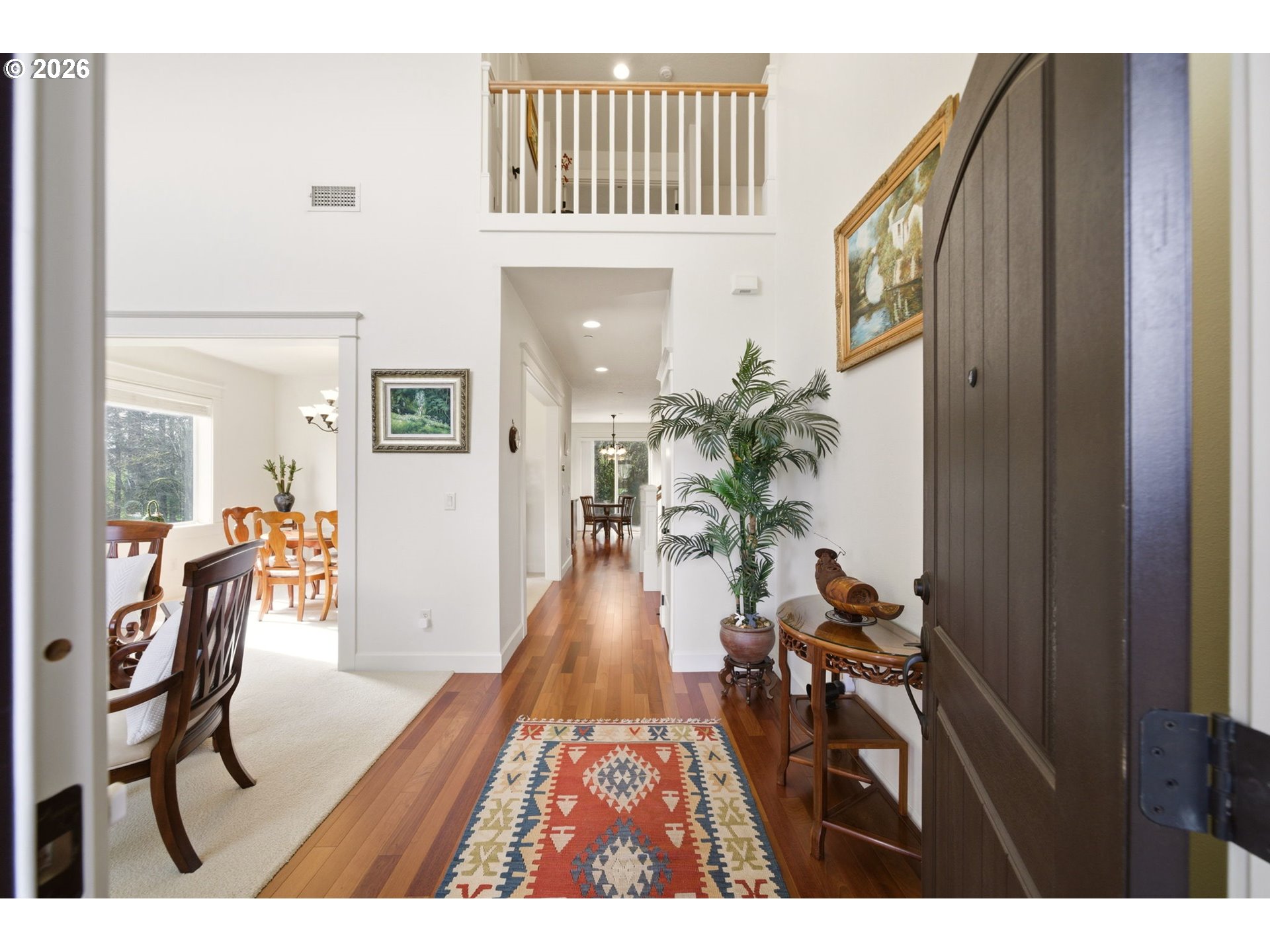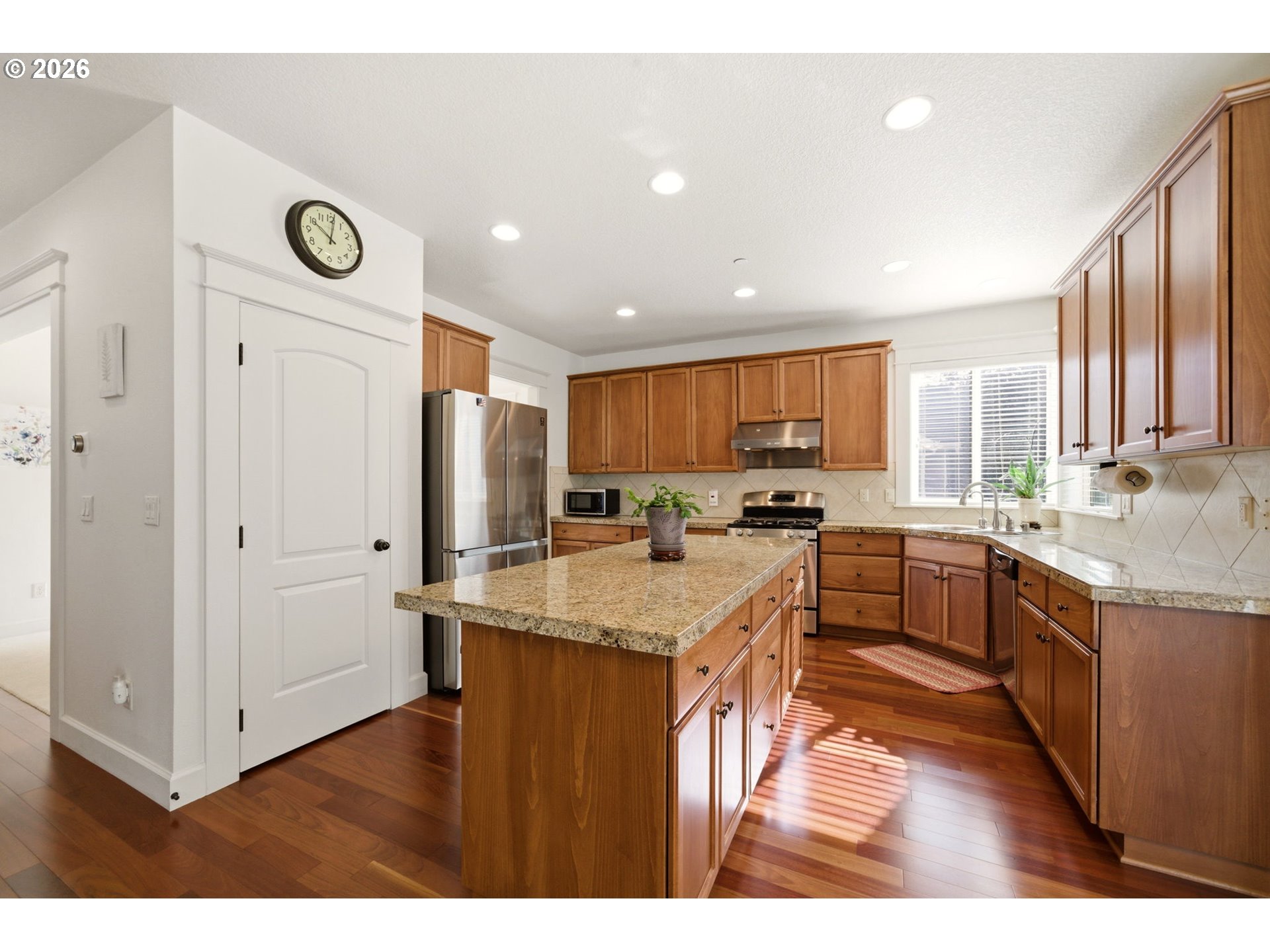 - Welcome to this beautifully maintained 5-bedroom, 3-bath home offering 2,740 square feet of thoughtfully designed living space in the highly sought-after Drewfs Farm neighborhood in Camas. From the moment you enter, you’re greeted by a stunning double-height entry and living room that fills the home with natural light and a sense of openness. Hardwood floors flow seamlessly through the entry into the kitchen and family room, creating a warm and inviting atmosphere. The main level features a convenient bedroom and full bathroom—perfect for guests or multi-generational living. The kitchen is well-appointed with granite countertops, stainless steel appliances, a spacious island, and a pantry, all overlooking the serene backyard and lush greenspace beyond. Step outside to your private, oversized lot, newer composite decking and where custom landscaping, winding walking paths, and vibrant gardens create a peaceful retreat. A gate provides direct access to the adjacent greenspace, enhancing both privacy and connection to nature. From the front of the home, enjoy beautiful mountain and territorial views. Additional highlights include a garage with built-in storage and a utility sink, as well as a full unfinished basement offering abundant storage or the opportunity to create your dream finished space. This exceptional home combines comfort, functionality, and natural beauty—an opportunity you won’t want to miss.