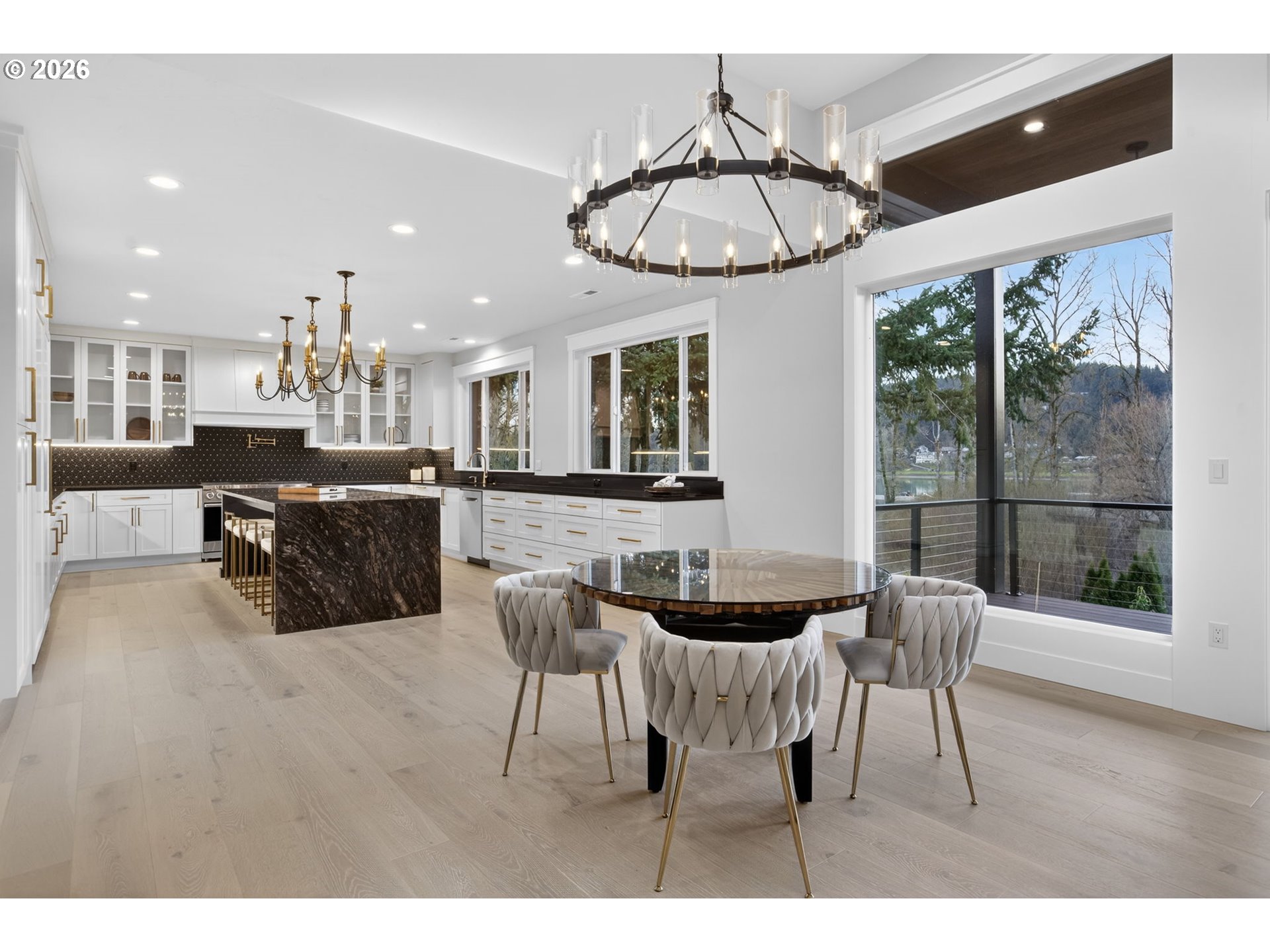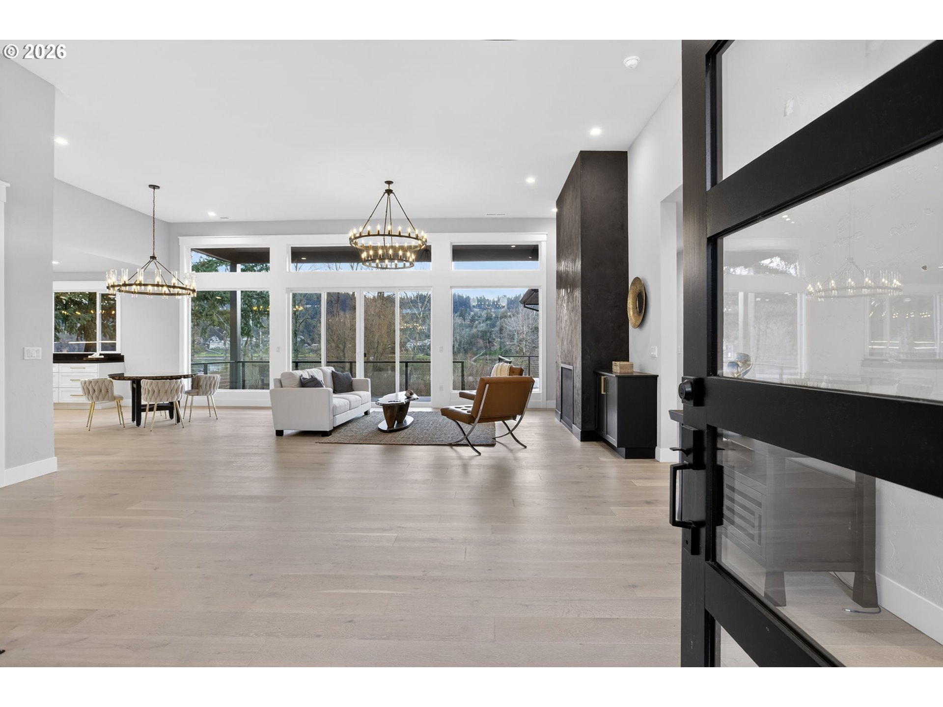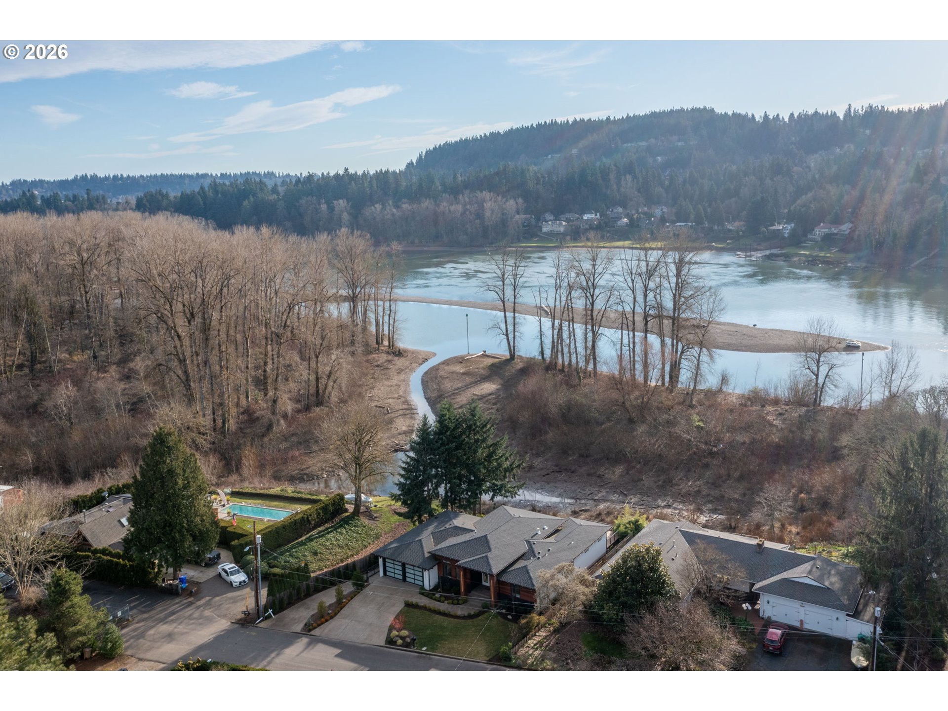 - Prepare to fall in LOVE!! This exceptional riverfront home lives and feels like new construction, blending modern design with the natural beauty of the Willamette River. Privately set on a generous lot, the residence is thoughtfully designed to maximize light, flow, and connection to its surroundings.Expansive windows flood the main level with natural light while framing serene river views. The open living space is anchored by a striking gas fireplace with custom built-ins and flows seamlessly to a large deck ideal for entertaining, sunset gatherings, or quiet moments overlooking the water.The kitchen is both refined and functional, featuring a dramatic granite waterfall island, designer under cabinet lighting, high end appliances, and a spacious walk in pantry.The main level primary suite is a true retreat with sweeping river views, a private fireplace, and a spa inspired bath offering marble floors, a freestanding soaking tub, walk in shower, and oversized primary closet.The lower daylight level is perfectly suited for entertaining or multigenerational living, featuring a spacious family room with gas fireplace and wet bar complete with wine fridge and additional dishwasher. Double sliders open to a covered patio and backyard. Four additional bedrooms, a laundry room, and ample storage complete the level.Two attached garages including an oversized lower garage add convenience and flexibility. Enjoy private access from the backyard directly down to the river, offering a rare opportunity to connect with the water just steps from home. A public boat ramp located just minutes away provides easy access for boating and extended river recreation. With stunning finishes throughout and a setting that feels both private and connected, this is modern riverfront living at its finest.