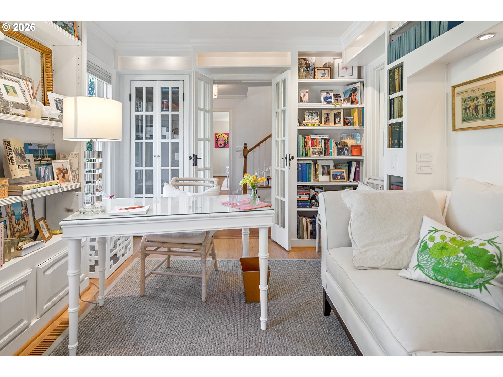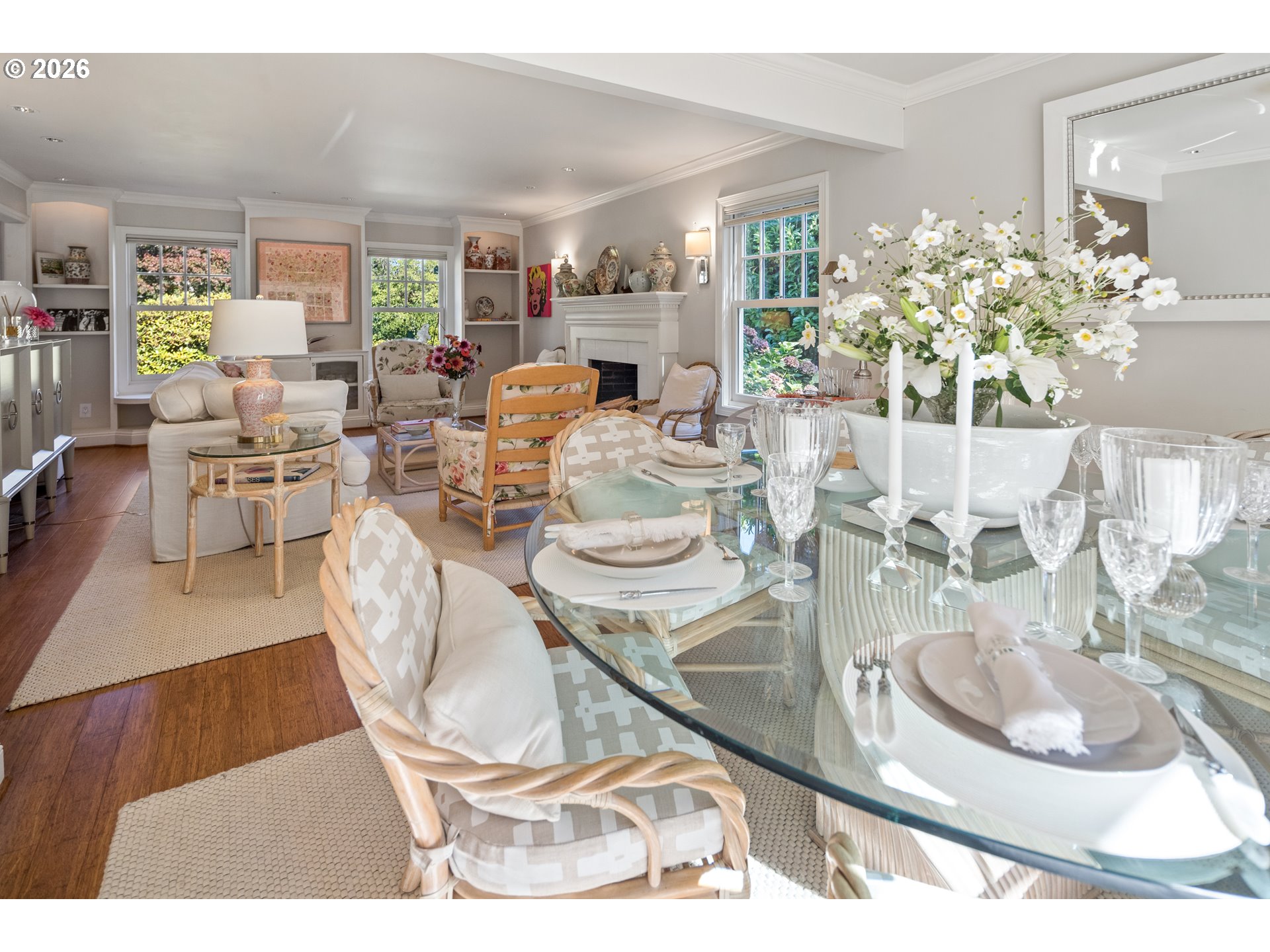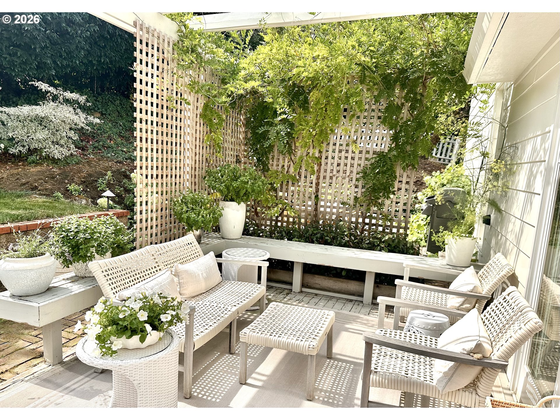 - Discover elevated style and timeless charm in this beautifully updated Cape Cod, nestled on a quiet, tree-lined street in coveted Dunthorpe. Surrounded by lush gardens and natural privacy, this light-filled home offers a serene neutral palette and thoughtfully designed living spaces throughout. Bamboo floors, abundant built-ins, and carefully curated updates enhance both function and character. This home is a seamless blend of classic architecture and refined modern living.The private backyard is a true oasis, featuring a welcoming deck and an enchanting Italian-inspired garden framed by multiple trellises draped in climbing wisteria and clematis. A white picket fence and flowering gardens create exceptional curb appeal. Located in the sought after Dunthorpe neighborhood in unincorporated S Portland, this quiet enclave offers both privacy and convenience — just 15 minutes to downtown Portland and five minutes to Lake Oswego, with premier dining and shopping nearby. The Lewis & Clark trails are just a short stroll away.French doors in the exquisite dining room open gracefully to an expansive brick terrace, creating a seamless flow for refined indoor–outdoor entertaining. The elegant formal living room—anchored by a wood-burning fireplace and custom built-ins—adjoins the dining room. Just off the kitchen, the family room features a new gas fireplace and direct access to the terrace, blending comfort with livability. One of the highlights of the home is a spectacular main level office or 4th bedroom with floor to ceiling bookshelves and built-ins. Upstairs, the spacious primary suite serves as a serene retreat, complete with a fully renovated bath and beautifully customized closets featuring dedicated jewelry drawers and thoughtfully designed shoe storage. A generous, light filled bonus room provides space for guests, work, or recreation. Each bathroom has been tastefully remodeled to reflect modern comfort while honoring the home’s enduring architectural character.