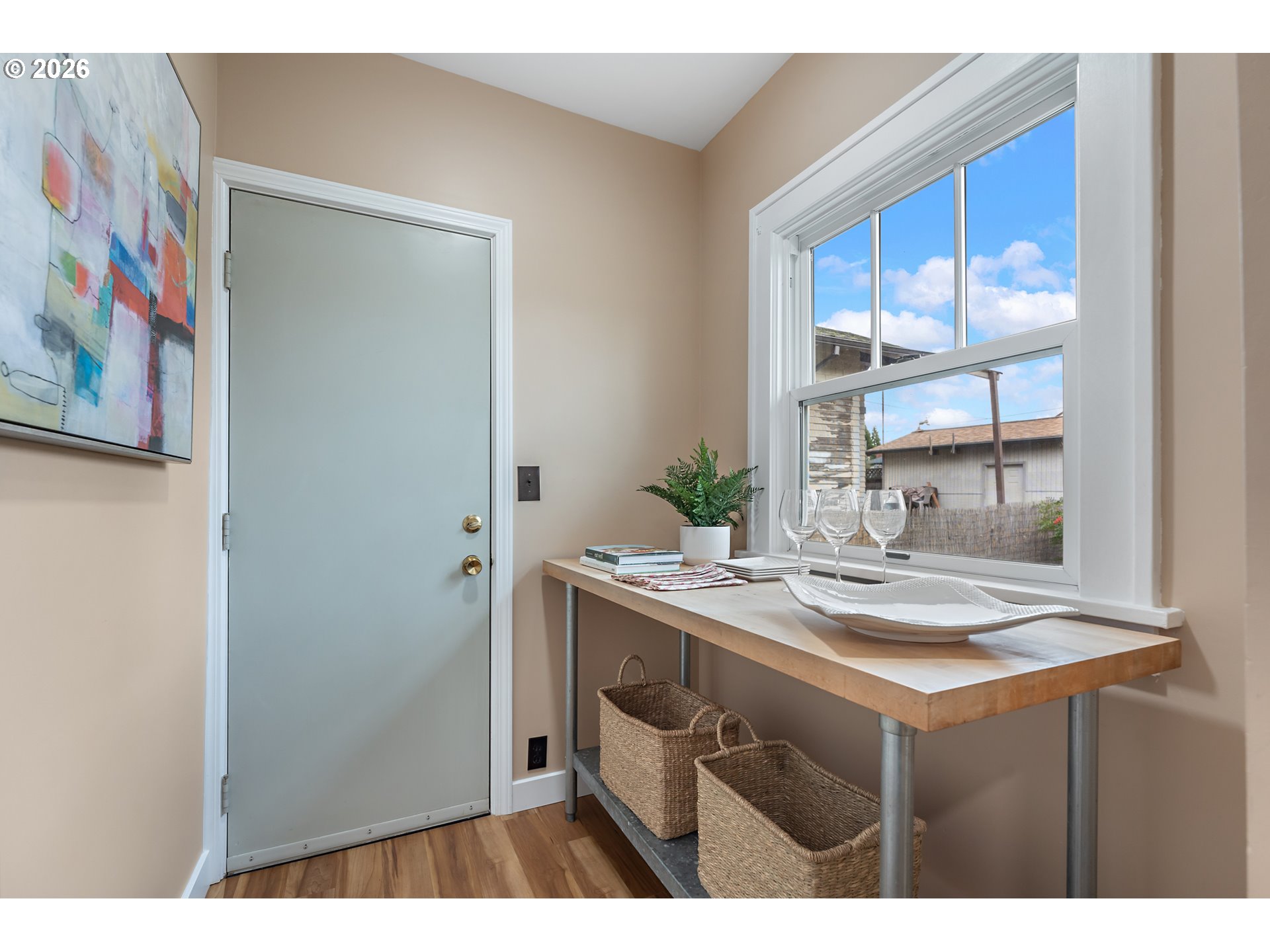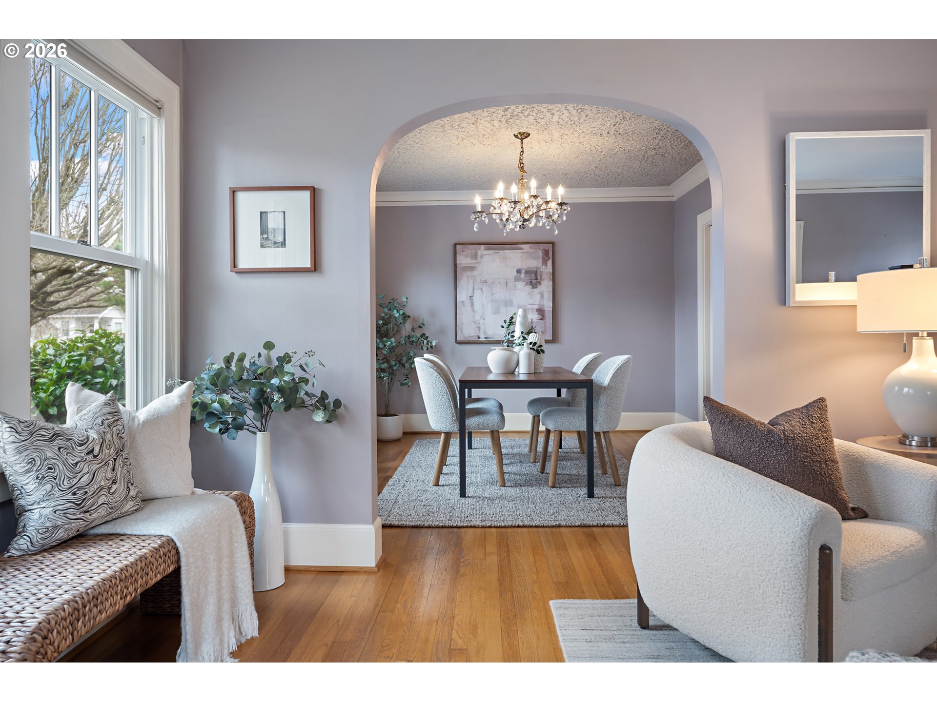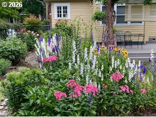 - Charming and full of character, this petite Colonial-style home offers timeless appeal and a warm, inviting layout. Beautiful hardwood floors flow throughout the main level, enhancing the home’s classic charm.The main floor features a cozy living room anchored by a fireplace — perfect for relaxing evenings — along with a dedicated dining room ideal for gatherings and entertaining. The generously sized kitchen offers ample space for cooking and storage, plus a sunny eating nook that’s perfect for casual meals or morning coffee.Upstairs, you’ll find two comfortable bedrooms and a full bathroom, creating a private and peaceful retreat away from the main living areas. Step outside to a truly special setting — the yard and gardens are beautifully maintained, offering a serene outdoor escape with plenty of space to enjoy nature, entertain, or simply unwind. A delightful blend of character, comfort, and curb appeal — this charming Colonial is ready to welcome you home. [Home Energy Score = 5. HES Report at https://rpt.greenbuildingregistry.com/hes/OR10241921]
