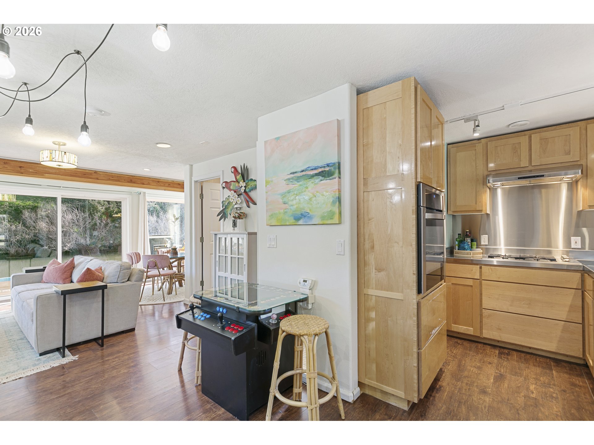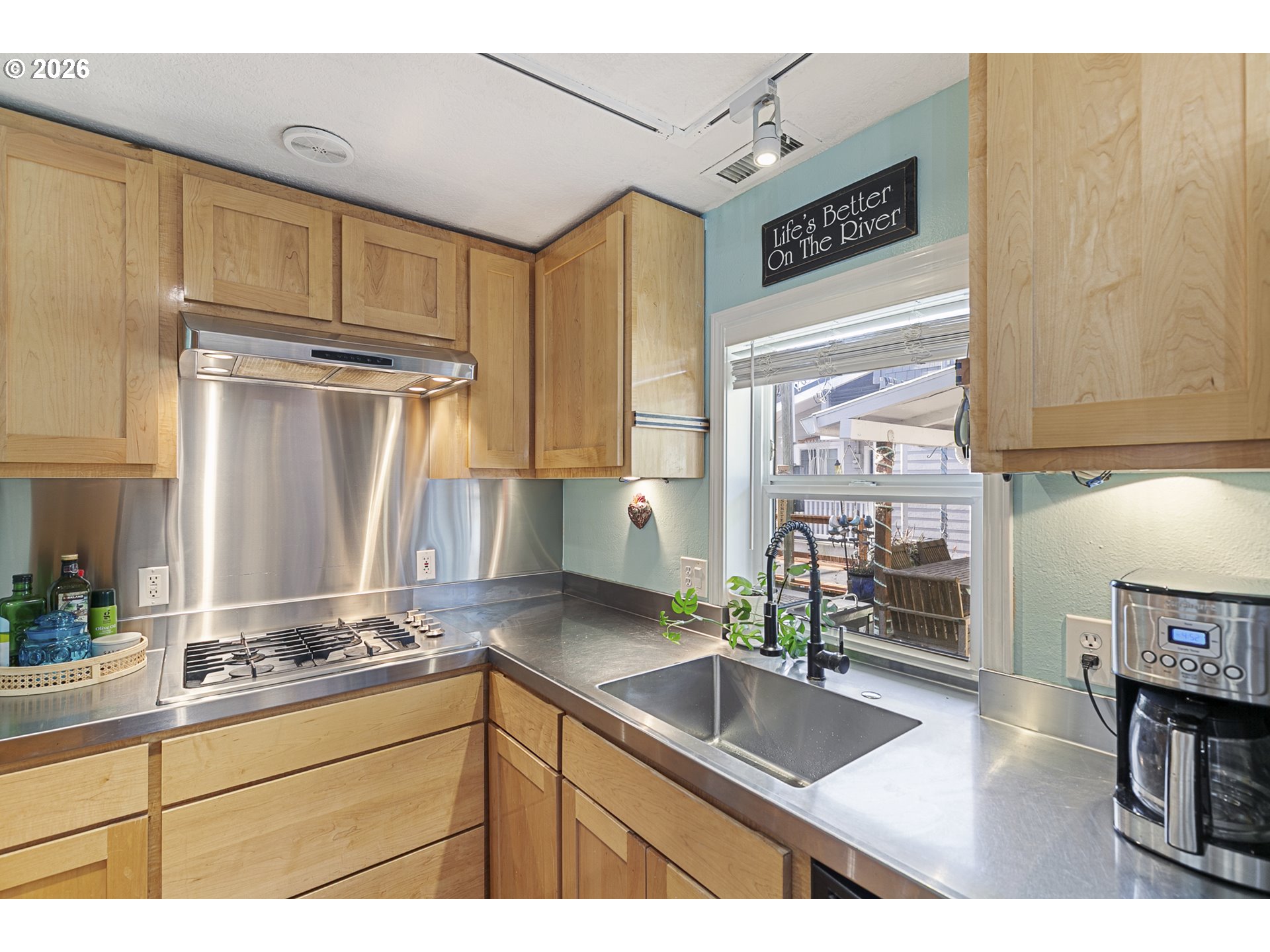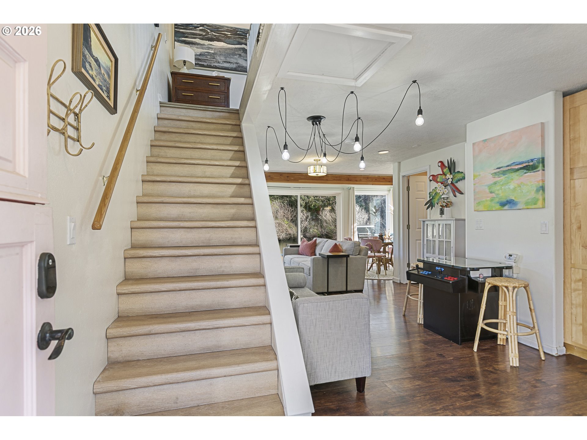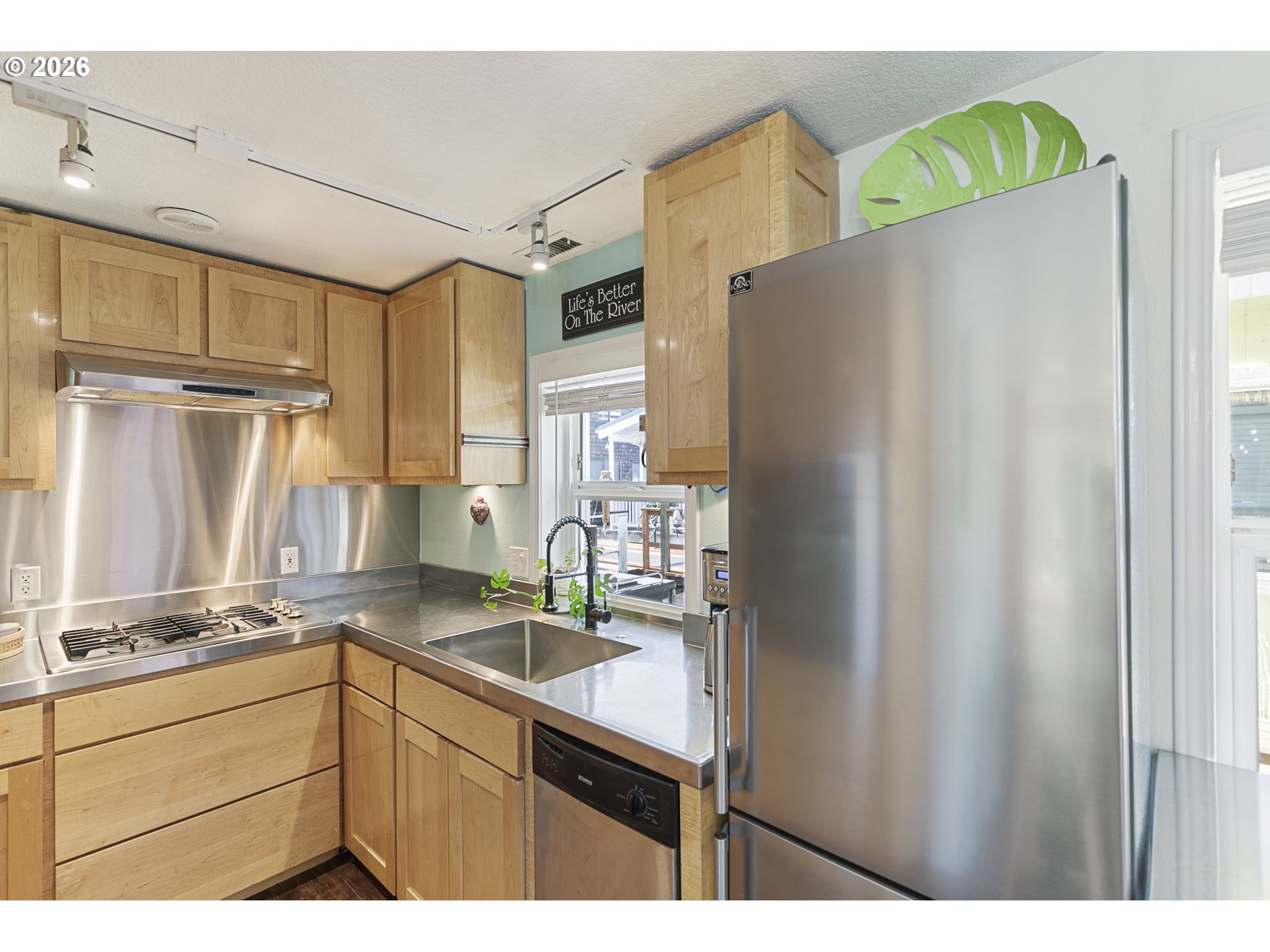 - Rare opportunity to own a home with slip included in the tight-knit Tomahawk Island Floating Home community—one of only ~3,500 floating homes in all of Oregon, making this a truly unique lifestyle. Just 10 minutes from downtown Portland, yet a world away.Wake up to water just outside your door in a home so cheerful it feels like you’re on vacation every day—starting with the charming Dutch front door that instantly sets the tone. Floor-to-ceiling windows along the back create a light-filled, immersive living experience where you feel fully connected to the water—watch kayakers drift by, wildlife pass through, and the light change throughout the day.Extensively updated with major systems completed in the last 4 years: newer roof, siding, gutters, exterior paint, two mini-split HVAC systems, and refreshed balcony railings—offering true turnkey confidence. Strong float rating of 4 in 2021 (20+ years life expectancy) with log float and steel-beam stringers.Inside, the home blends comfort with personality. Interior upgrades include newer refrigerator, all-in-one washer/dryer, new LVT flooring upstairs, and designer wallpaper that adds a whimsical, elevated touch.Approx. 920 SF main home + 110 SF finished tender house, styled as a tiki-inspired retreat—ideal for an office, studio, or guest space, with additional ceiling storage. One of only two homes in the moorage with a detached tender house.1 bedroom, 2 bathrooms, plus an upstairs bonus area with potential to easily create a second bedroom. Two private balconies offer peaceful views of North Portland Harbor and the Columbia River.Slip approx. 33’9”W x 65’L with room to moor your boat right outside your back door..Low HOA dues of $430/month in a pet-friendly, socially active marina. Certified yacht club with reciprocal access to yacht clubs worldwide.A scenic walk down the dock becomes part of the daily rhythm—quiet, peaceful, and uniquely yours.Not just a home—a lifestyle!