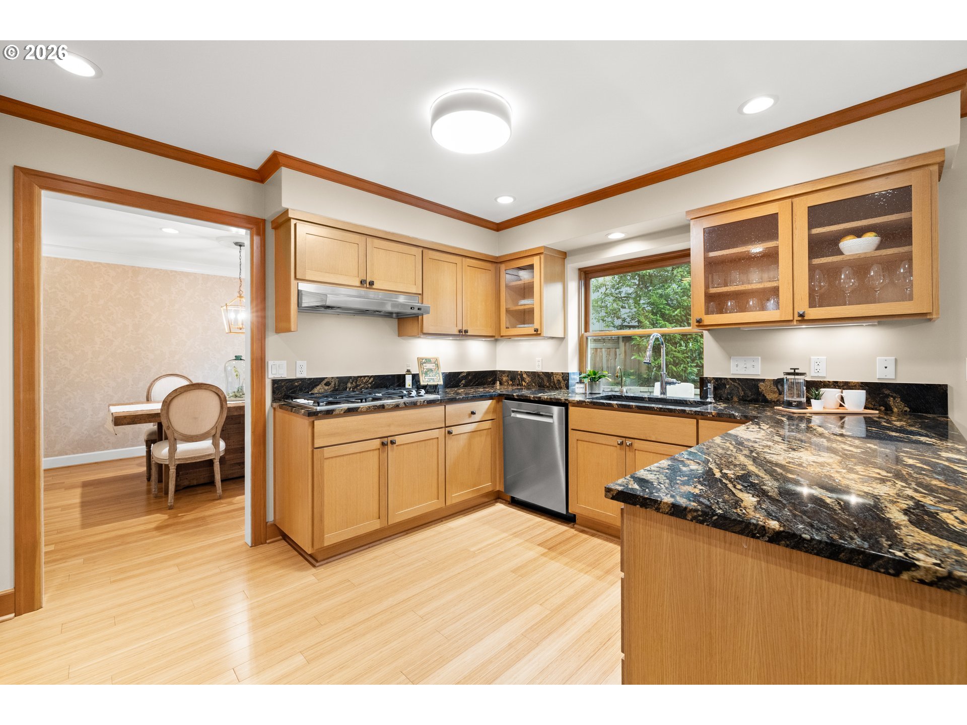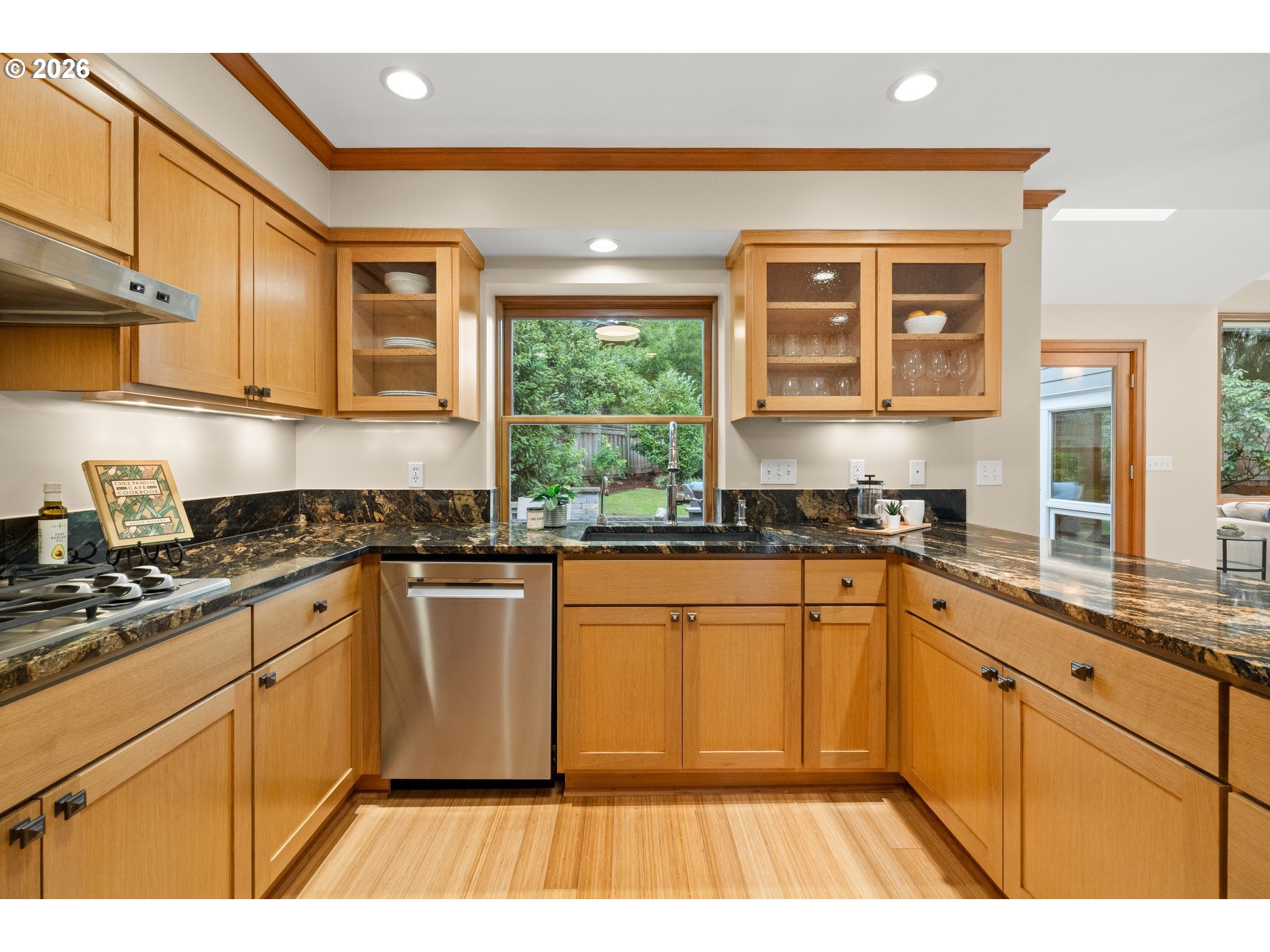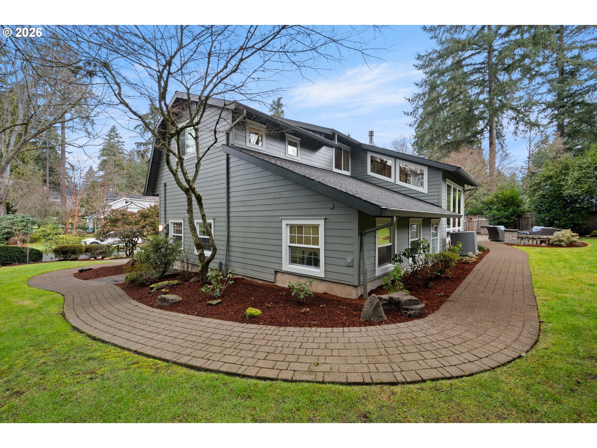 - Welcome home to this tastefully updated 5-bedroom, 3.5-bathroom residence on Bayberry Road, enhanced by a 2021 remodel that transformed the upper level and elevated the home’s design and functionality. Traditional charm blends with modern updates, offering an exceptional lifestyle in one of Lake Oswego’s most sought-after neighborhoods, complete with access to Forest Hills Lake and Boat easement with a newly built dock completed in 2023. A welcoming front porch invites you into a light-filled interior with a classic floorplan and expansive windows. Designed for comfort and entertaining, the kitchen features granite countertops, stainless steel appliances, custom cabinetry, and thoughtfully placed lighting. Just beyond, the family room centers around a cozy gas fireplace and opens to a park-like backyard with a paver patio and beautifully manicured landscaping. Whether you’re cozied up reading your favorite book or entertaining guests, the backyard is a peaceful retreat. Upstairs, a spacious landing offers flexible living space ideal for a media area, homework zone, or play space. Skylights brighten the upper level and are outfitted with automated blackout shades for effortless light control. A dedicated home office with rich dark wood built-ins and a wet bar provides a polished workspace. The home is wired for a surround sound stereo system throughout the main living areas and back patio. The expansive 4-car garage is a rare find, offering abundant storage, built-in organization, RV or boat parking, and a dedicated workspace for hobbies or projects. Just one block from Forest Hills Elementary and adjacent to Tryon Creek Park trails, the location offers exceptional convenience. Downtown Lake Oswego is nearby, with easy access to the library, boutique shopping, dining, wine tasting rooms, the beloved Lake Oswego Farmers Market, summer concerts, and the annual Fourth of July parade. Here, tranquility, community, and everyday convenience come together seamlessly.