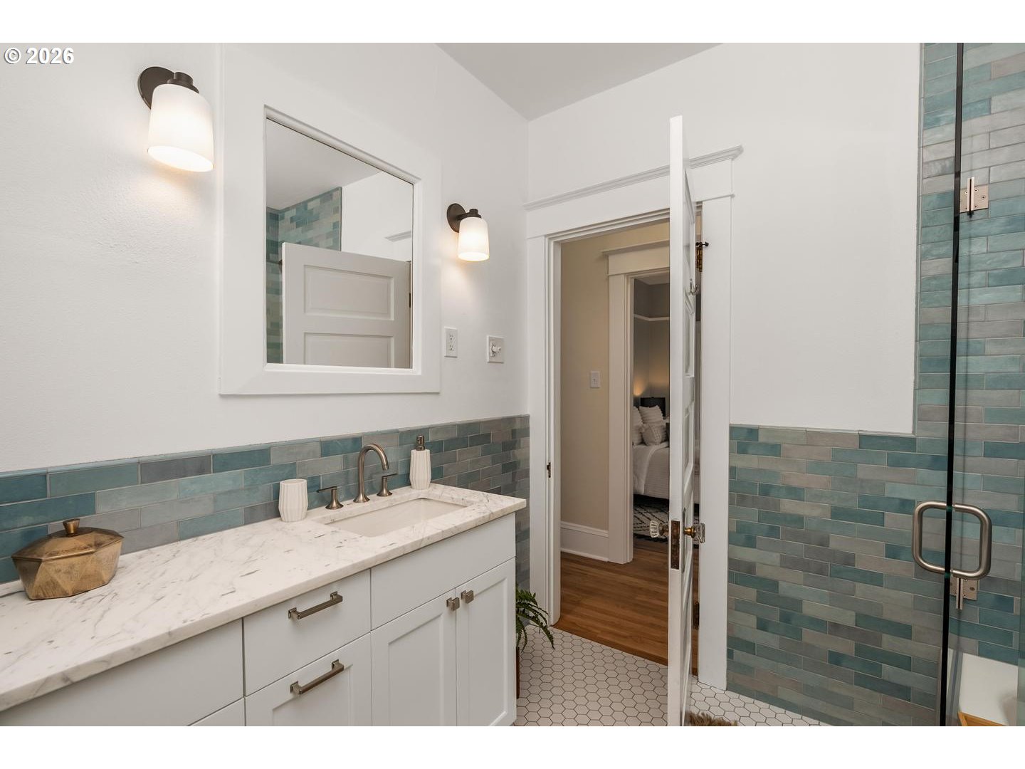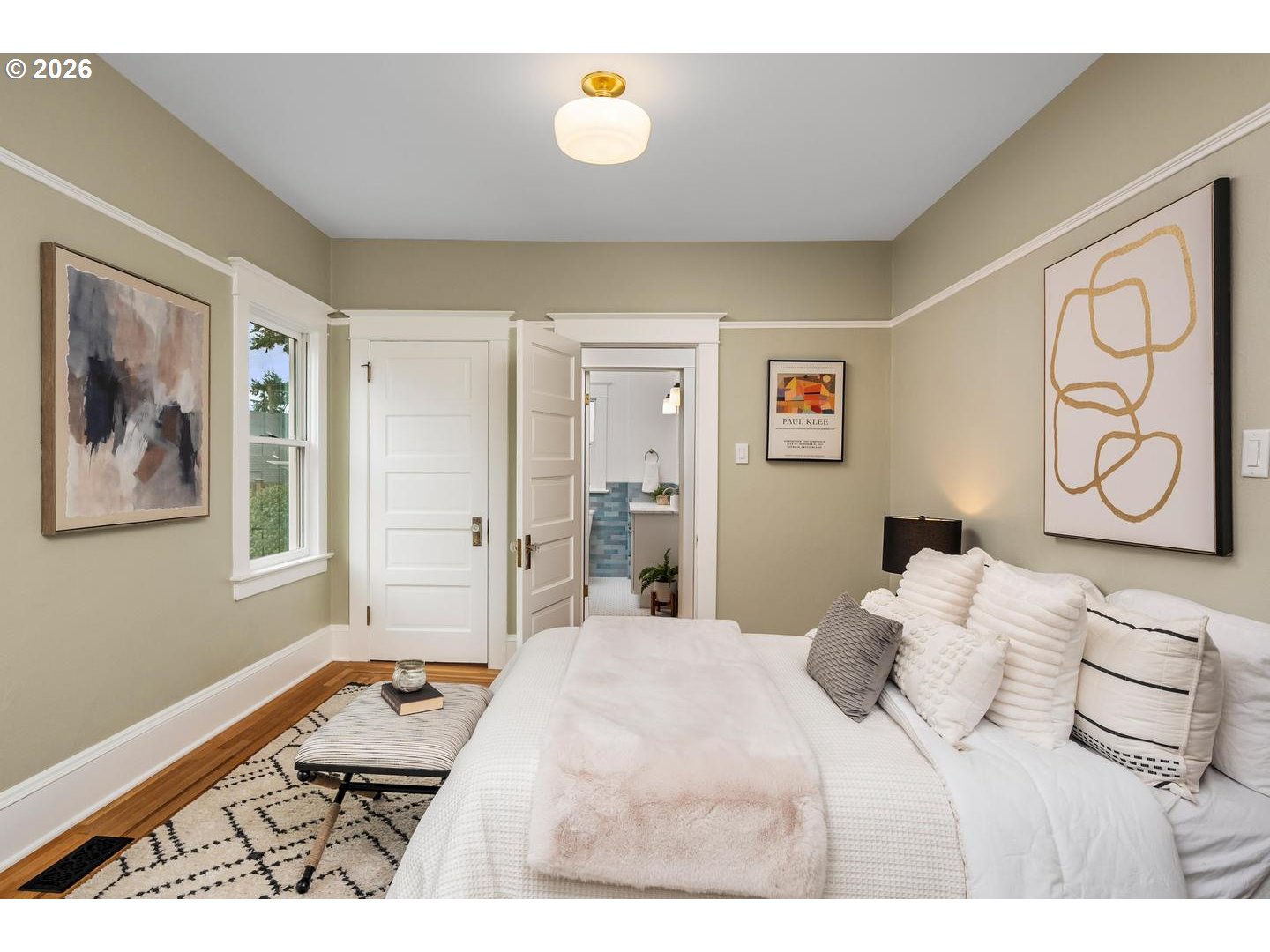 - Craftsman style home with three spacious bedrooms plus an office in great location within the Alberta Arts community. This property sits on a corner lot with a small park behind it and has a feeling of space & privacy unusual for the neighborhood. Accessed from the front porch is a sun room that is original to the home and used as an entryway & a space to enjoy in the warmer months. The uniqueness of this home is the flexibility it offers in its floor plan. It has a large bedroom on the main floor that can be used as a master bedroom, family room, shared office or guest room for aging family members. There is a completely updated full bathroom steps from this bedroom. The upper floor has two large bedrooms plus a den or a nursery and a fully remodeled bathroom. The basement has room for storage, a laundry area, full bath and a large room that will make a great zone for teenagers, a music studio or an exercise room. The kitchen has been remodeled with new hardwood floors, cabinetry, countertops, back-splash & appliances. Behind the kitchen is a mudroom with additional storage and leads to the backyard and a new patio. The dining room can easily accommodate a large family & has abundant natural light and period built-ins. There is a detached garage with an opener & space for a car. Home has been thoughtfully remodeled & features quality details throughout. Please see attached floorplan and features list. Bike Score 100/Walk score 90. Must see home. [Home Energy Score = 1. HES Report at https://rpt.greenbuildingregistry.com/hes/OR10244320]