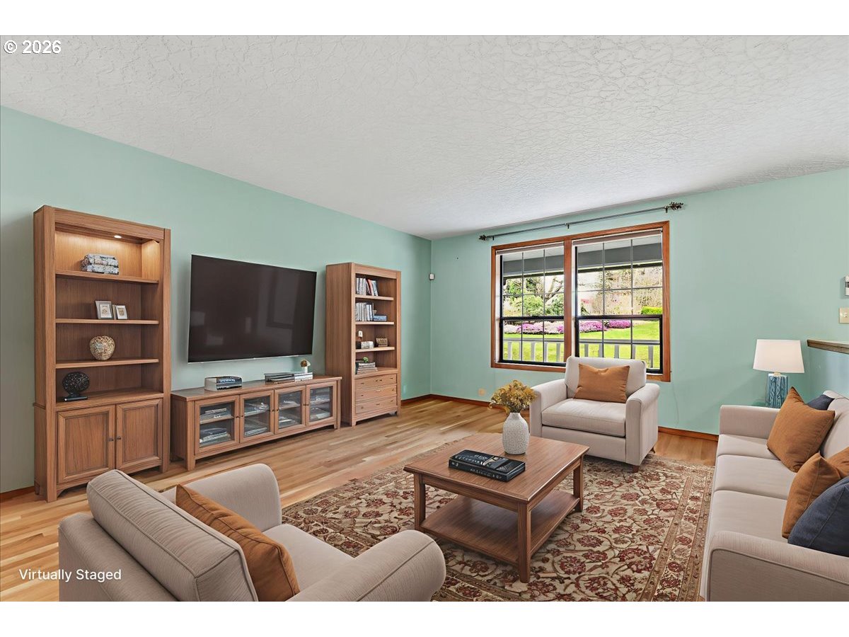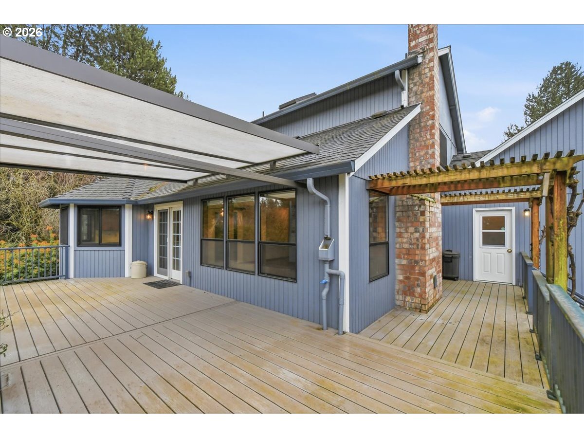 - **Gardener’s Paradise with Solar Serenity on 1 Acre** Discover this delightful 2485 sq ft, 4 bedroom, 2.2 bath home set on a peaceful 1-acre lot in Harmony Ridge. Outside you can enjoy your morning coffee while rocking in a chair on the covered front porch, or enjoy picturesque views of the backyard landscape while sheltered from the rain on the covered deck. Inside you’ll find gleaming hardwood floors, a kitchen that overlooks the backyard, plus and family room with a cozy wood stove perfect for warming up during chilly winters. A bonus room with its own half bath can be found tucked up in its own wing, making it a great work/live flex space, or perhaps the perfect movie room or guest room. Each upstairs bedroom features walk-in closets too. Versatility and comfort abound! The 3-car garage and two toolsheds offer ample storage space for yard games, garden supplies and tools. With gated access on both sides of the fenced backyard, the expansive yard is truly perfect for recreation, gardening and gatherings! Don’t miss the fig and apple trees as well as blueberries & roses. What else makes this house truly unique? It’s equipped with fully owned solar panels, a unique rainwater bladder system (under the deck) along with a compost area, so you can rest assured that your home has a reduced energy footprint and offers eco-friendly gardening. Plus, this home has many updated windows and the water line to the house was replaced in 2022, ensuring a reliable infrastructure for years to come. Not only is it located on a dead-end road in an established, quiet residential neighborhood with no HOA, but it’s also situated in the desirable Union High School district and is within close proximity to parks, Emerald Elementary, restaurants, and other conveniences. This home truly offers abundant space for both living & storage, along with an ideal blend of in-city conveniences. Hurry, this move-in ready home includes all appliances & is a true gem in a prime location!