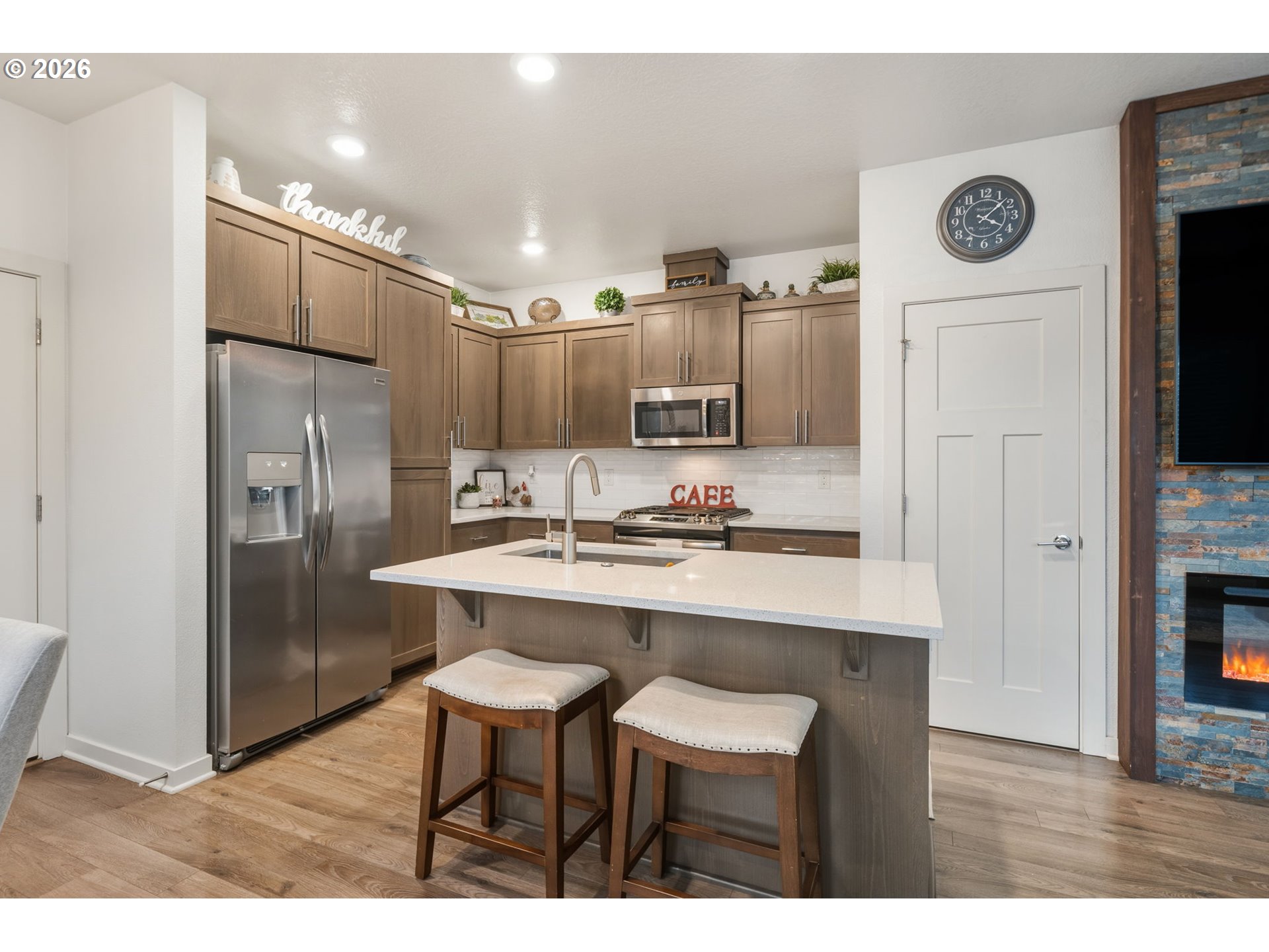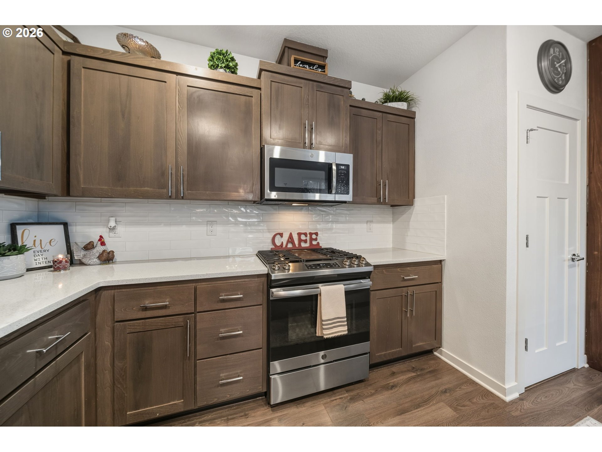 - Open House 4/11 1-3pm. Nestled in Rosedale Parks, this end-unit townhome offers the perfect blend of comfort and convenience, with easy access to nearby amenities. Featuring 3 bedrooms and 2.5 bathrooms, the open-concept floorplan is perfect for both everyday living and easy entertaining. Large windows bring in plenty of natural light, highlighting the spacious kitchen and living area, complete with a cozy gas fireplace. Luxury vinyl flooring runs throughout the main level, adding both style and durability. Just outside, the fenced yard with low-maintenance turf and a 16x12 Trex deck creates a flexible outdoor space to suit your needs. Upstairs, you’ll find all three bedrooms, including a generous primary suite with blackout blinds, a walk-in closet, and an ensuite bathroom. The upper-level also includes a convenient laundry room, an additional full bathroom, and a versatile bonus space that can adapt to a variety of uses—whether it’s a home office, playroom, or media area. Additional highlights include a rear-entry two-car garage, newer carpet, ample storage, and AC. A well-designed layout and plenty of natural light give this home a spacious, inviting feel. HOA amenities include a pool, fitness room, clubhouse, and outdoor fire pit—perfect for enjoying the community and easy living. Conveniently located by movie theater, golf course, parks, shopping, and dining - this home truly has it all! [Home Energy Score = 9. HES Report at https://rpt.greenbuildingregistry.com/hes/OR10245381]