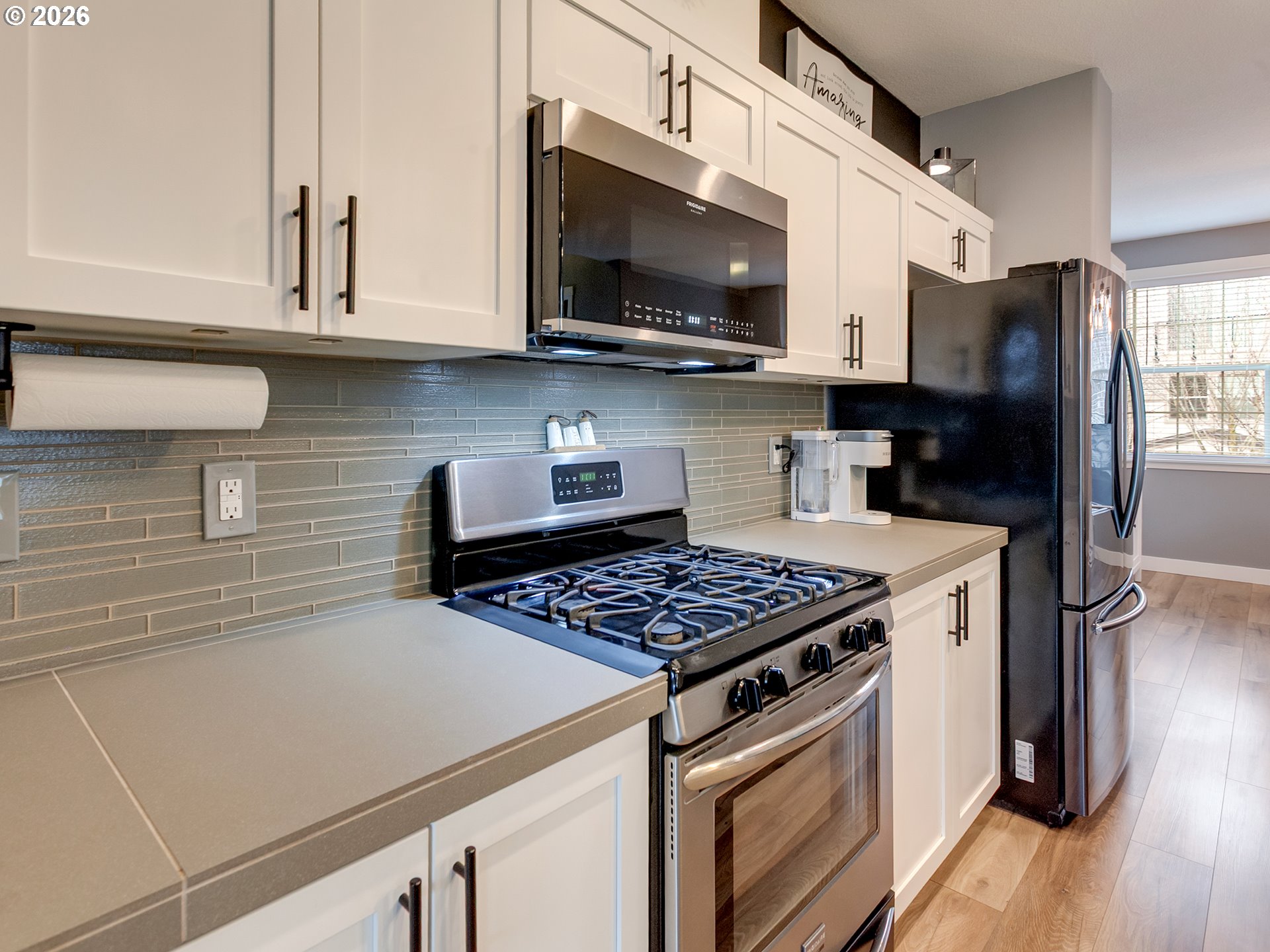 - Refined modern farmhouse living awaits in Wilsonville’s sought after Villebois community. Beautifully updated and maintained, you'll appreciate the thoughtful design across all three well appointed levels. The floor plan boasts two private suites, including a highly desirable main level suite with full bath, ideal for guests, multigenerational living, or flexible workspace.The expansive kitchen anchors the home with an oversized island designed for gathering and connection, complemented by timeless finishes, warm neutral tones, and durable hard surface flooring. The living room showcases a statement fireplace framed by built ins and shiplap, while sliding glass doors open to a private balcony that fills the space with natural light. Upstairs, the primary suite features tray ceilings, a generous closet, and a beautifully appointed bath. A versatile loft provides an ideal work from home setting, study space, or library retreat.Set within the master planned Villebois community, residents enjoy scenic walking and biking paths, a variety of parks, great schools, neighborhood markets, and year round events that define an active and connected Wilsonville lifestyle. You will love living here.