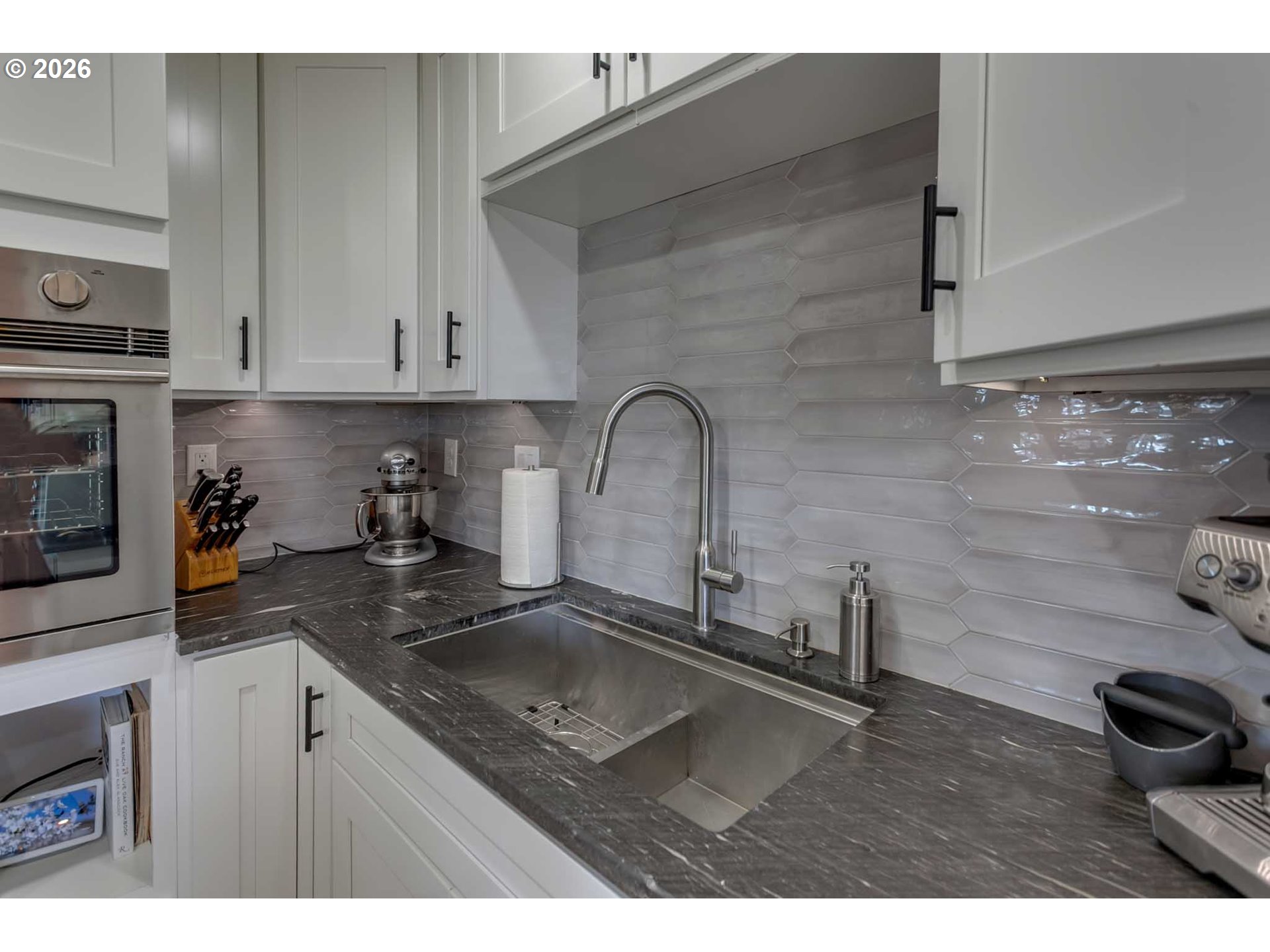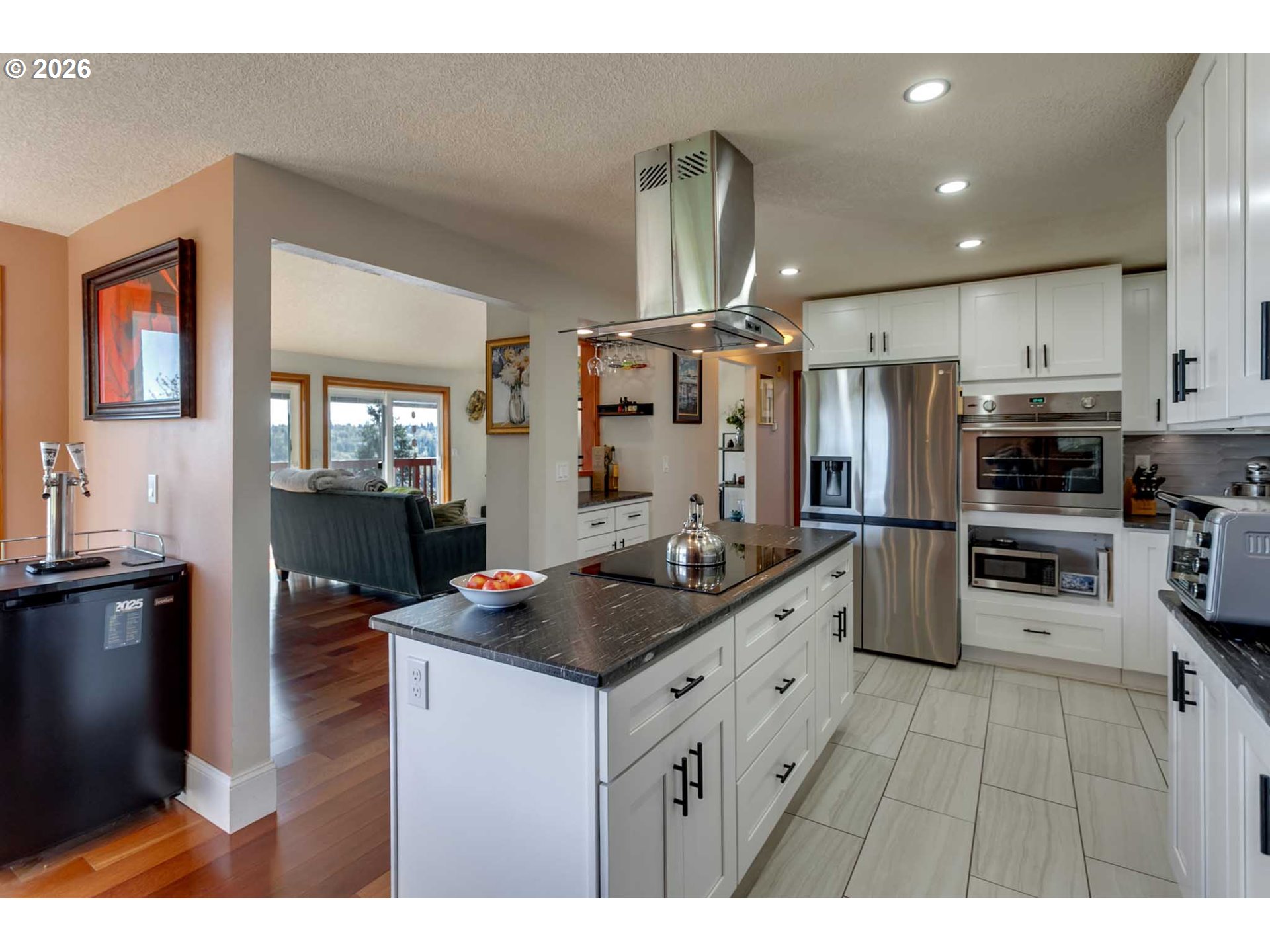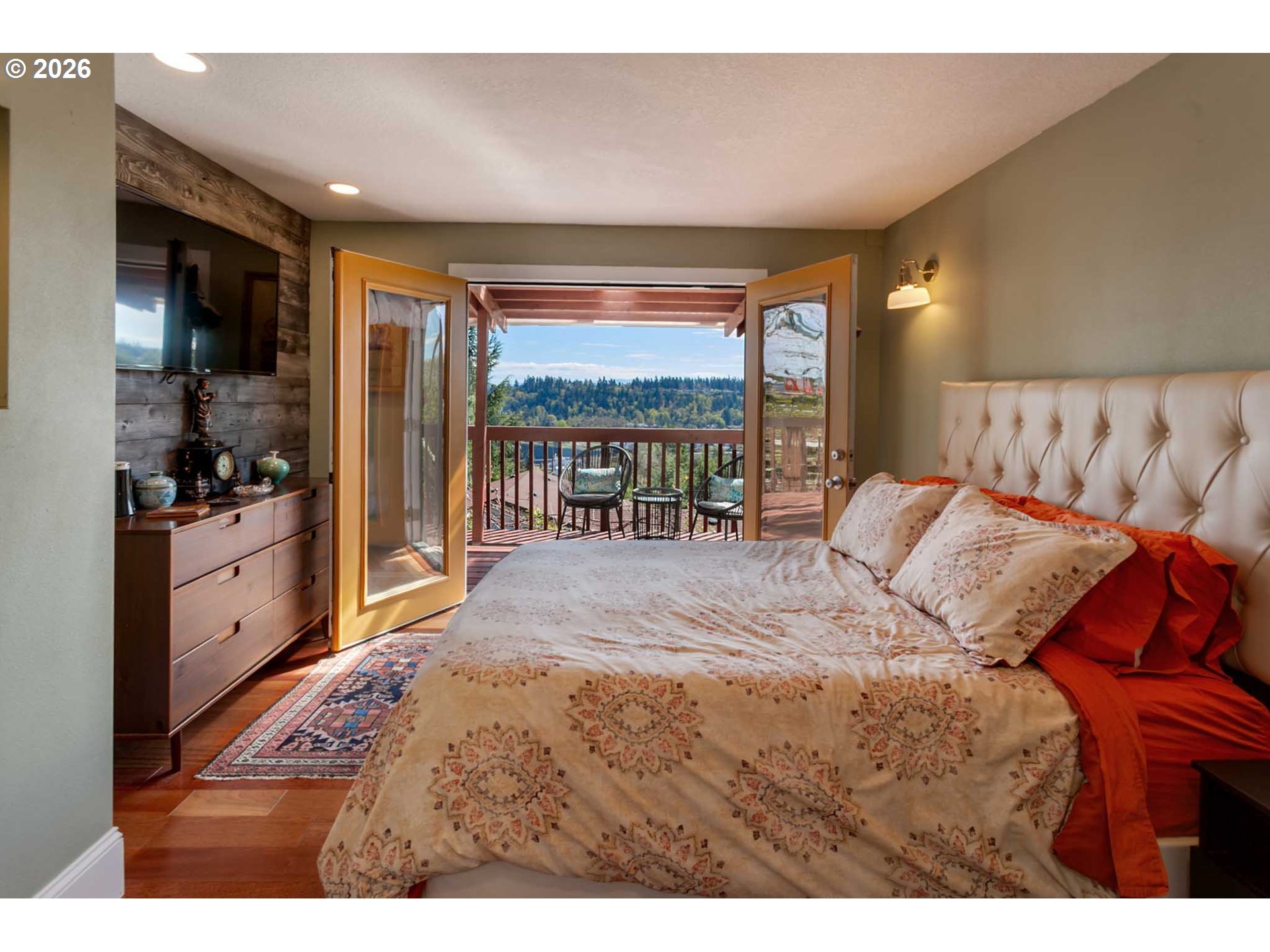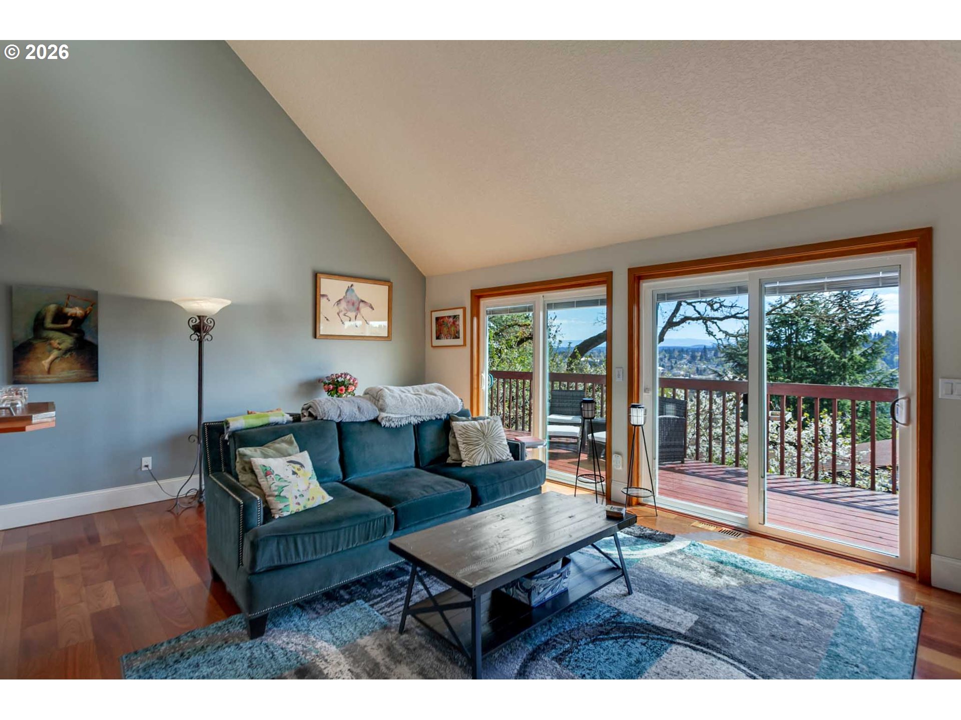 - Architect-designed by Carmen Associates (Granby, MA), this one-of-a-kind West Linn contemporary is oriented around its expansive territorial views over the Willamette River valley and hillside beyond — and every level delivers. Main level deck is accessed from three points: two new glass sliding doors w/internal Levolor blinds from the living room, the kitchen/dining area, and the primary bedroom — the entire main floor opens to the outdoors. Upper level has its own private view deck. Lower walkout opens directly to a terraced patio, hot tub w/projector & sound system, self-sustaining fish pond, and beautifully terraced, barked gardens with producing Riesling & Concord grapevines. Not a cookie-cutter home — designed for a buyer who wants character, views, and something truly different. Two full kitchens + dual laundry + dedicated workshop + self-contained lower level — ideal for multi-generational living or rental income. Vaulted ceilings, cherry hardwood, 2022 quartzite kitchen remodel, three distinctive full baths. Solar (~2,000W) w/PGE buyback. 220V EV charging. Furnace 2019, heat pump 2022, gas H2O 2023. All furniture negotiable. Right buyer wins big here.