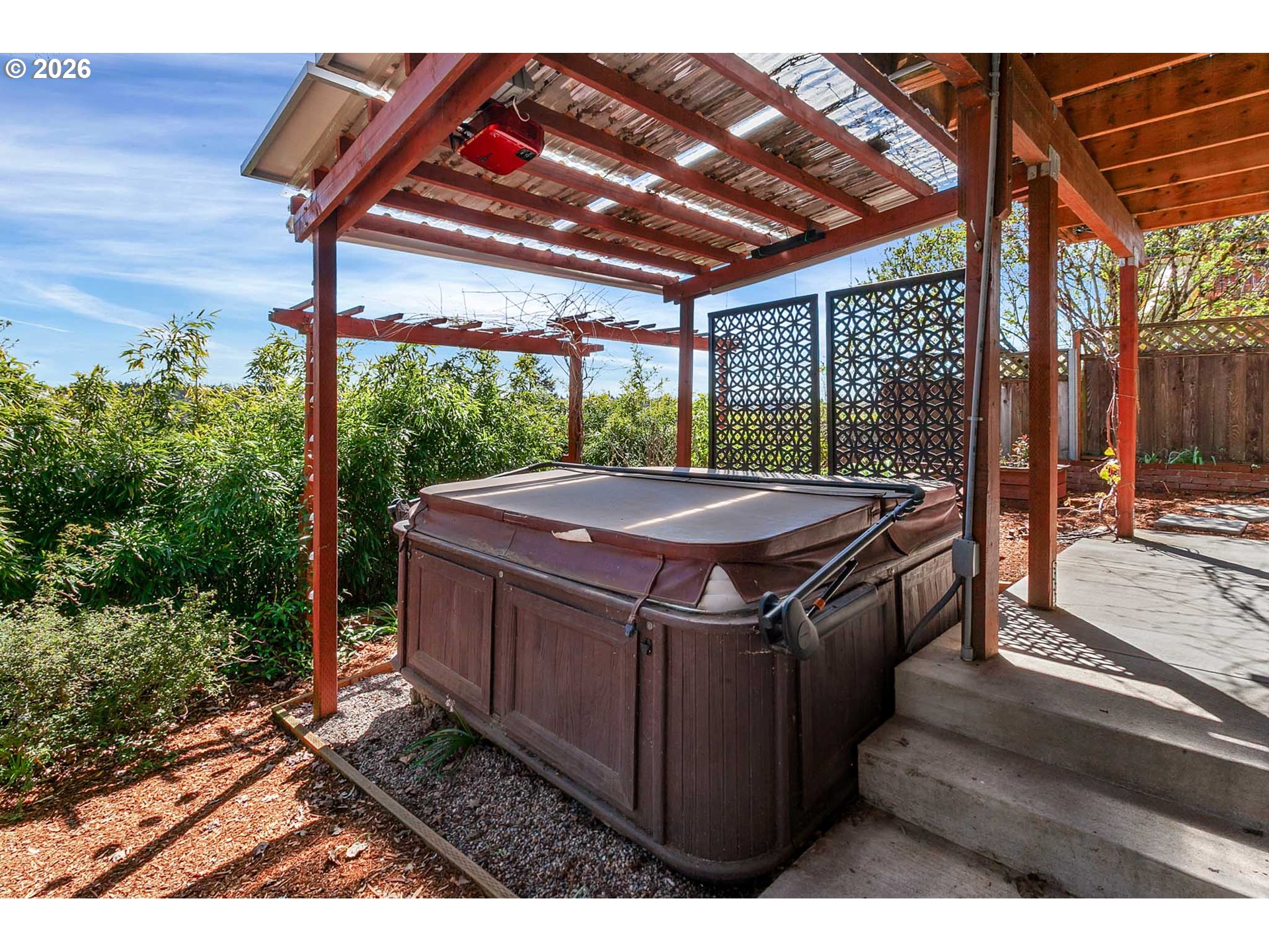 - Covered Deck, Covered Patio, Deck, Fire Pit, Free-Standing Hot Tub, Garden, Patio, Porch, Rain Barrel/Cistern(s), Raised Beds, RV/Boat Storage, Security Lights, Water Feature