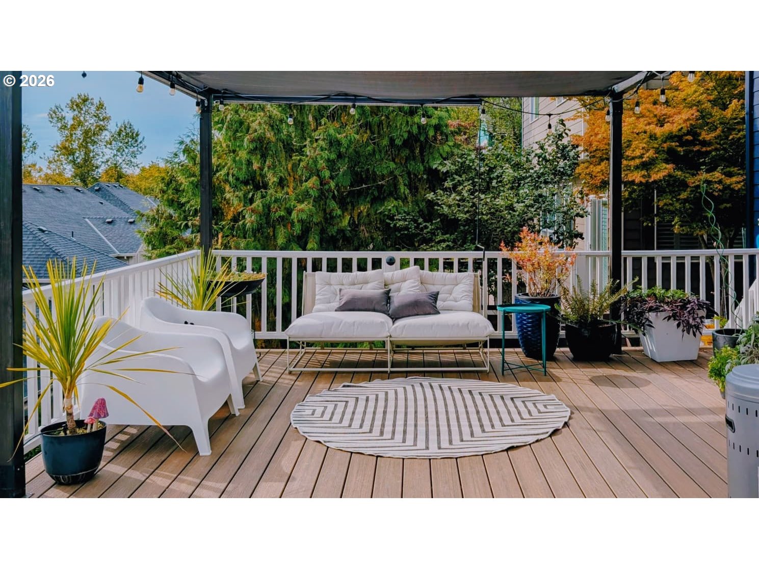 - Major system upgrades and thoughtful design updates make this home a standout. Most notably, the roof has been recently replaced, offering significant long-term value and peace of mind — one of the most important investments a homeowner can make.Inside, the stunning 2022 kitchen remodel anchors the home with a reconfigured open-concept layout centered around a dramatic dual-surface island — waterfall black granite on one side and warm butcher block on the other. Granite countertops extend throughout, complemented by a Blanco Diamond 33½" granite composite sink with touch-activated faucet. Custom soft-close cabinetry with integrated lighting, dual pantries, and a premium appliance suite — including a Samsung BESPOKE 29 cu. ft. 4-door smart refrigerator with beverage center, panel-ready dishwasher, steam double oven, induction cooktop, and professional-grade hood — create a kitchen that is both striking and highly functional.The main level features bamboo flooring, updated baseboards and trim, fresh interior paint, and modern lighting with smart switches. The powder room includes an updated vanity and lighting, and the fireplace has been redesigned with Shou Sugi Ban wood for a modern architectural focal point. The bonus room or fifth bedroom offers durable luxury vinyl plank flooring, providing flexible living options.Outdoor improvements enhance usability and comfort. Two retaining walls create a defined bark-chipped play area. The deck has been refreshed with newly replaced deck boards, and the pergola — positioned directly on the deck — includes adjustable shade panels and an integrated misting system for enjoyable outdoor living.Additional efficiency upgrades include a 97% efficiency furnace, Nest thermostats, Renewal by Andersen windows (2020) on the south side, Rachio smart irrigation, Flume leak detection, and a 2022 exterior repaint.With a brand-new roof, meaningful system updates, and curated interior finishes, this home offers both style and substance