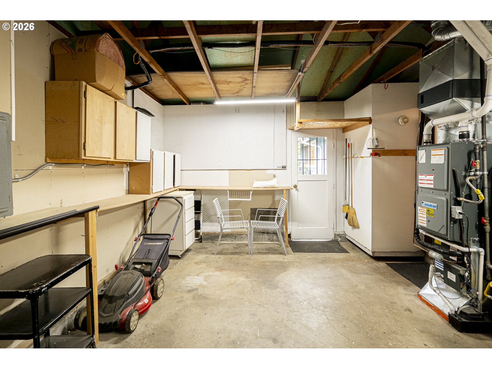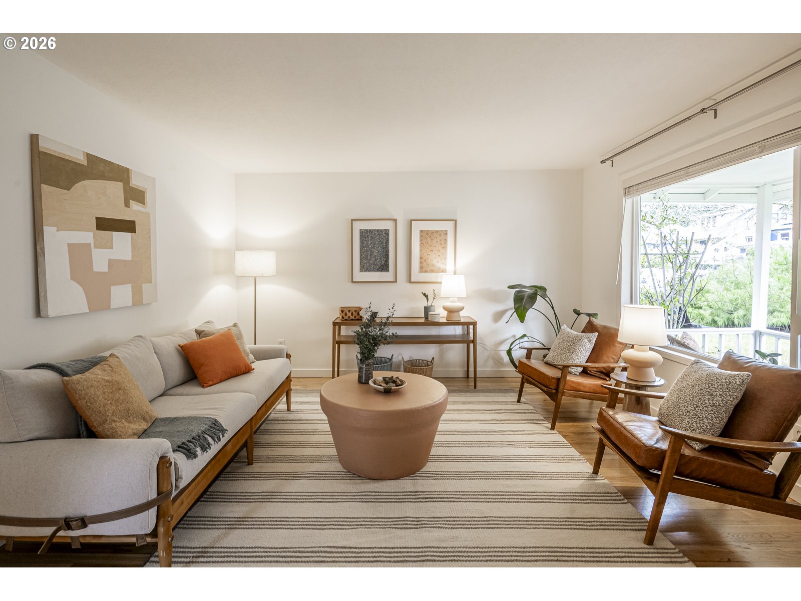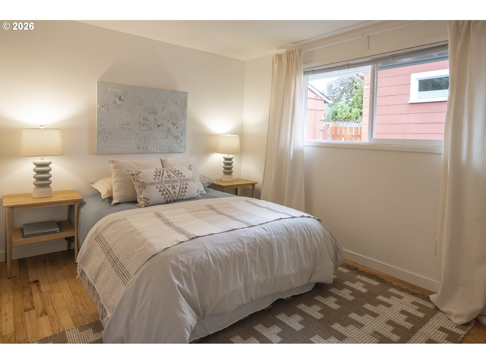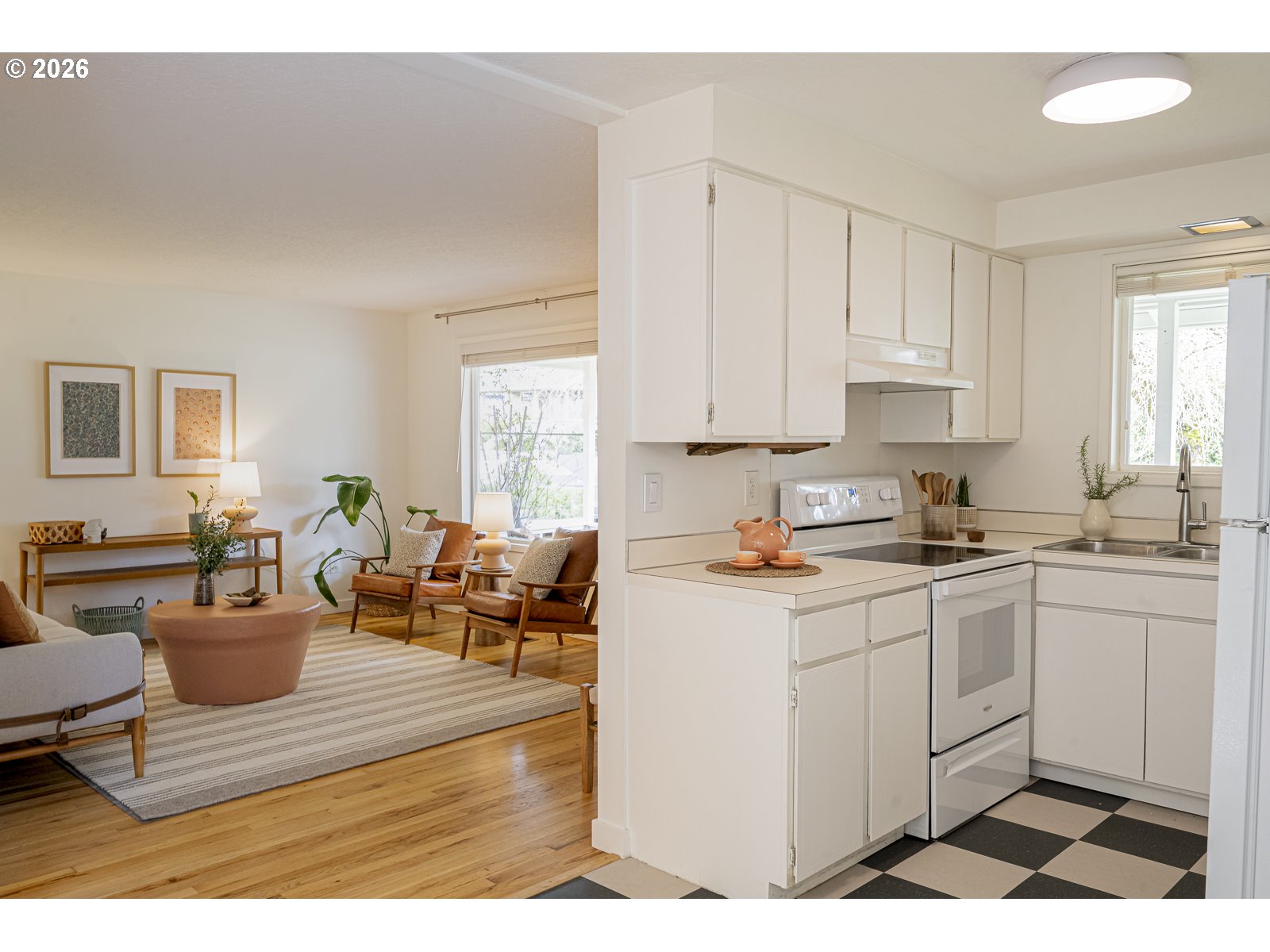 - Come fall in love with this bright and breezy 60's ranch in South Tabor! One level living, with three bedrooms, ample storage in the oversized closets and kitchen pantry, and attached garage with laundry. This is classic mid century design in that every space is well utilized and accounted for. The covered front porch area extends the usable space for all seasons, and is perfect for morning coffee next to the Japanese Maple and apple tree blossoms in the spring. The south facing patio off the sunlit and cheery dining room is begging for summer hangouts next to your kitchen garden beds and the Star Magnolia tree. Newer vinyl windows, furnace and heat pump in 2024, roof in 2016, beautiful refinished original oak floors, and fresh checkerboard marmoleum in the kitchen and dining room. Home Energy Score of 8! Located within a mile of the original Stumptown location as well as Rain or Shine coffee, Clinton City Park, Hinterland bar and food carts, and Mount Tabor park. Equidistant between Franklin High and Powell Blvd for enjoying a quiet residential feel, while still being close to all the action on Hawthorne and Division. [Home Energy Score = 8. HES Report at https://rpt.greenbuildingregistry.com/hes/OR10243391]