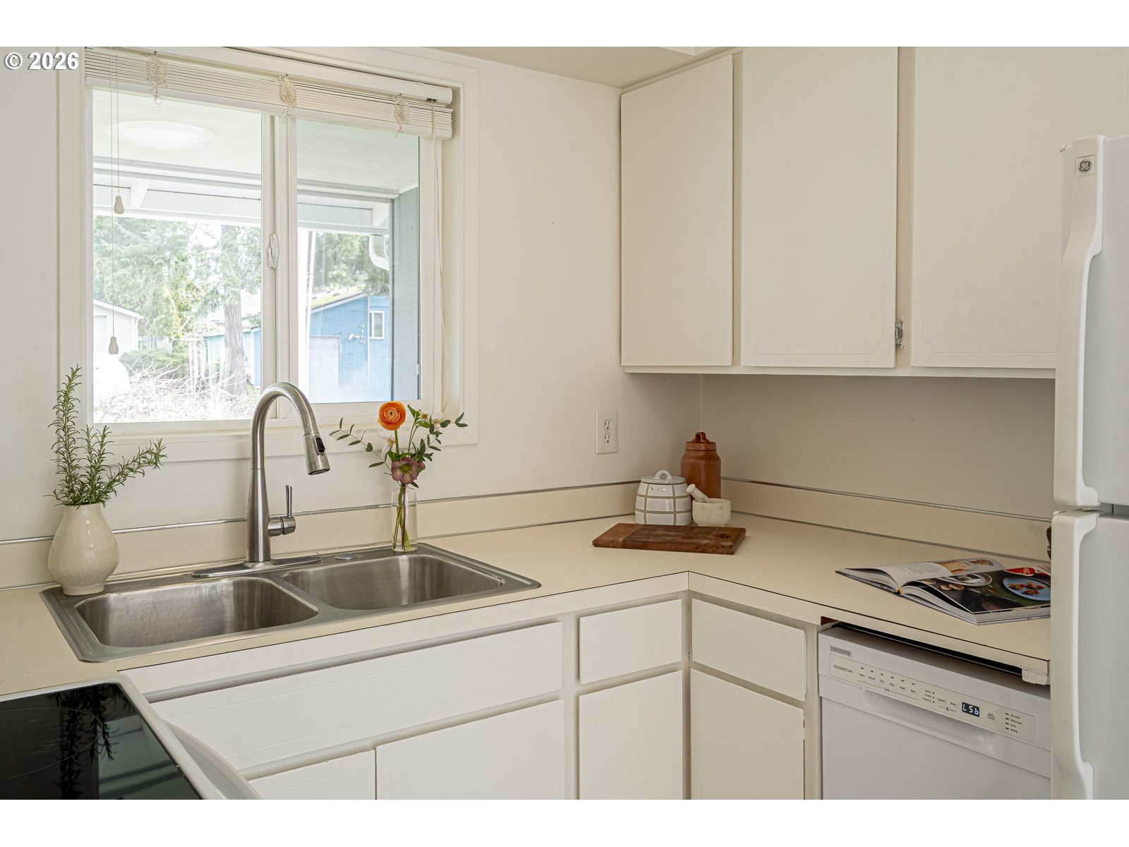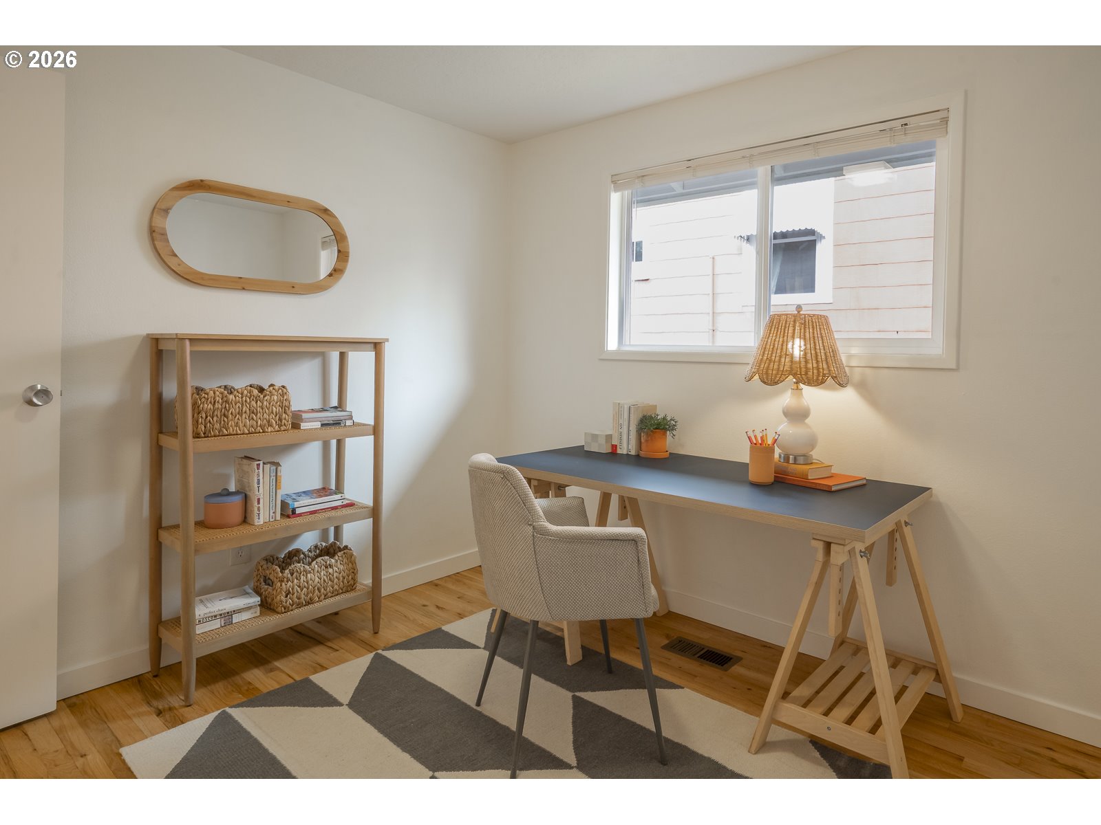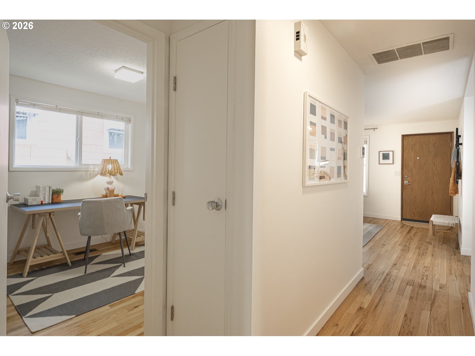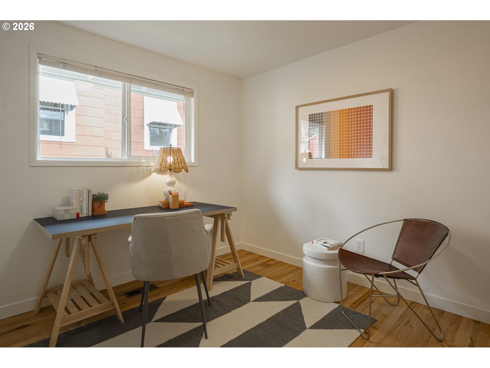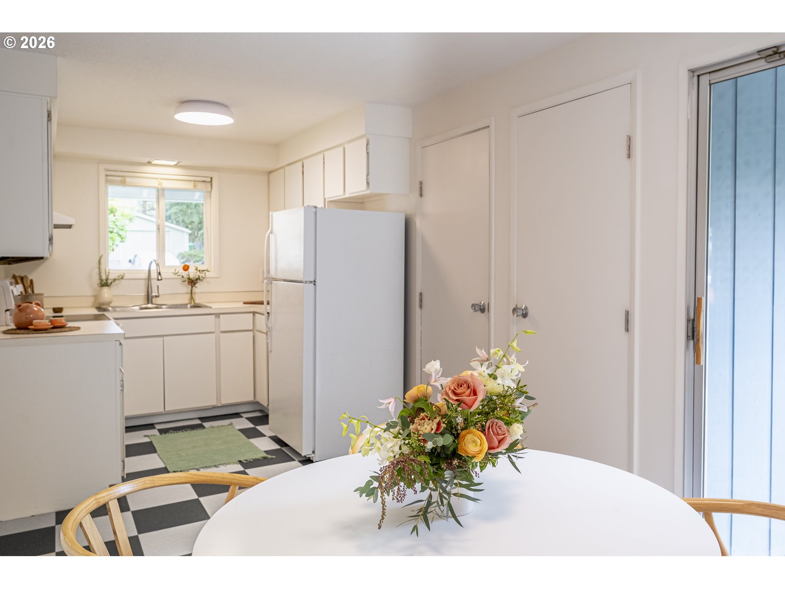 - Come fall in love with this bright and breezy 60's ranch in South Tabor! One level living, with three bedrooms, ample storage in the oversized closets and kitchen pantry, and attached garage with laundry. This is classic mid century design in that every space is well utilized and accounted for. The covered front porch area extends the usable space for all seasons, and is perfect for morning coffee next to the Japanese Maple and apple tree blossoms in the spring. The south facing patio off the sunlit and cheery dining room is begging for summer hangouts next to your kitchen garden beds and the Star Magnolia tree. Newer vinyl windows, furnace and heat pump in 2024, roof in 2016, beautiful refinished original oak floors, and fresh checkerboard marmoleum in the kitchen and dining room. Home Energy Score of 8! Located within a mile of the original Stumptown location as well as Rain or Shine coffee, Clinton City Park, Hinterland bar and food carts, and Mount Tabor park. Equidistant between Franklin High and Powell Blvd for enjoying a quiet residential feel, while still being close to all the action on Hawthorne and Division. [Home Energy Score = 8. HES Report at https://rpt.greenbuildingregistry.com/hes/OR10243391]