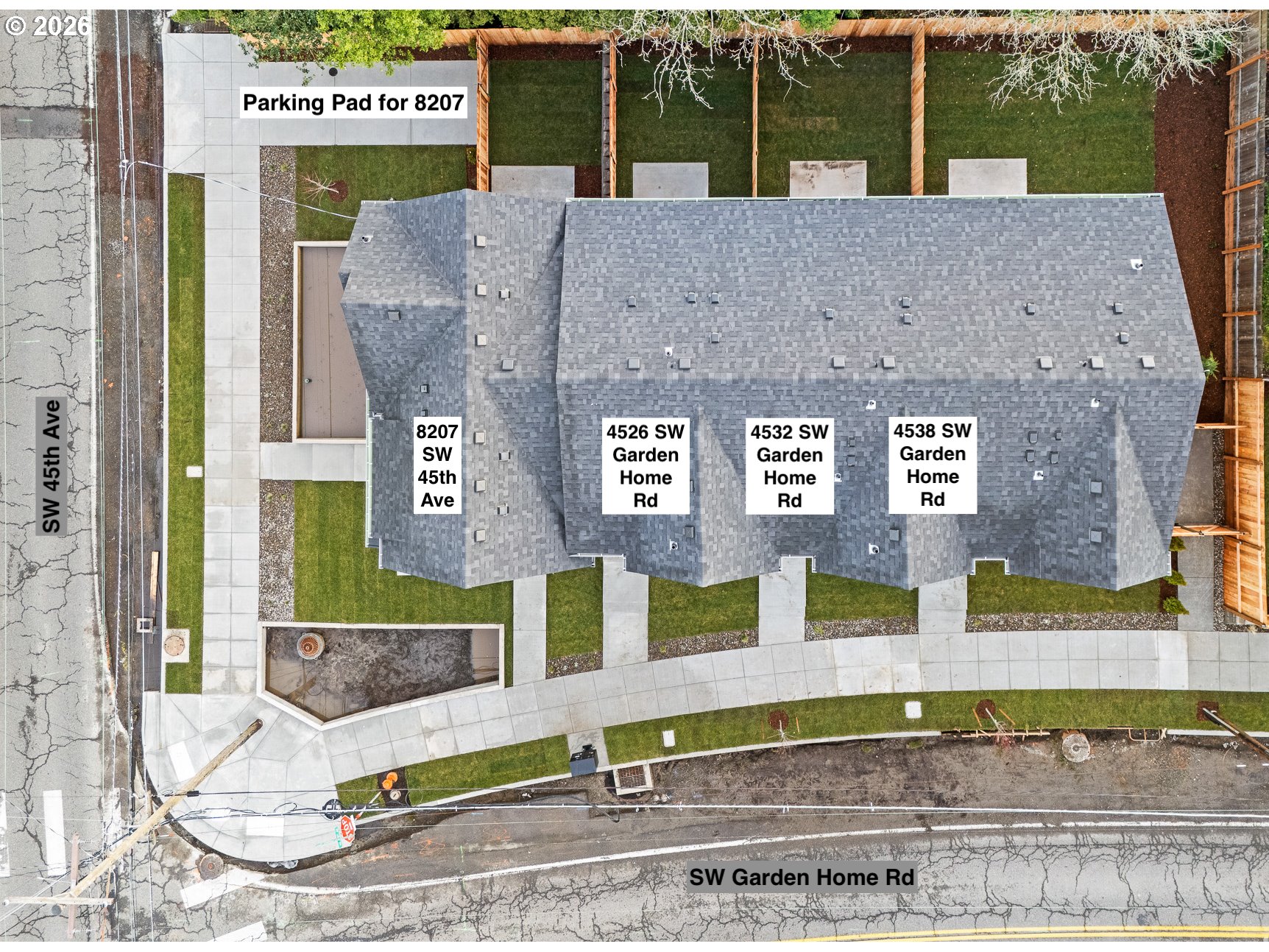 - Investor opportunity in the heart of Garden Home offering four newly constructed 2 bedroom, 2 bathroom residences designed for durability, efficiency, and long term rental appeal. Each unit offers ~921 square feet with modern open concept layouts, solid surface countertops, stainless steel appliances, energy efficient mini splits for year round comfort, and private yard space with lawn areas that are highly attractive to today’s tenants. Designed and developed by a respected local boutique builder known for high end finishes, efficient use of space, and attention to detail, these homes reflect thoughtful planning and strong construction standards. The front residence includes a dedicated parking pad, while the rear residence features a substantially larger lawn area that supports premium rental positioning and enhanced privacy. From a tenant demand perspective, the location performs exceptionally well. The property sits ~0.3 miles to Garden Home Recreation Center, ~0.4 miles to Garden Home Park, ~0.5 miles to Trader Joe’s, Starbucks, and neighborhood dining options, and ~1 mile to Washington Square with its major retail, restaurants, and employment draw. Quick access to SW Multnomah Blvd and Hwy 217 supports easy commuting to downtown Portland, Beaverton tech corridors, and OHSU. New construction reduces deferred maintenance risk, energy efficient systems help control utility expenses, and private yard spaces create strong differentiation compared to typical attached rental product. With lifestyle driven amenities, commuter convenience, and long term structural integrity, this fourplex presents a compelling opportunity for both investor hold strategies and owner occupied investment models in a consistently desirable Southwest Portland submarket.